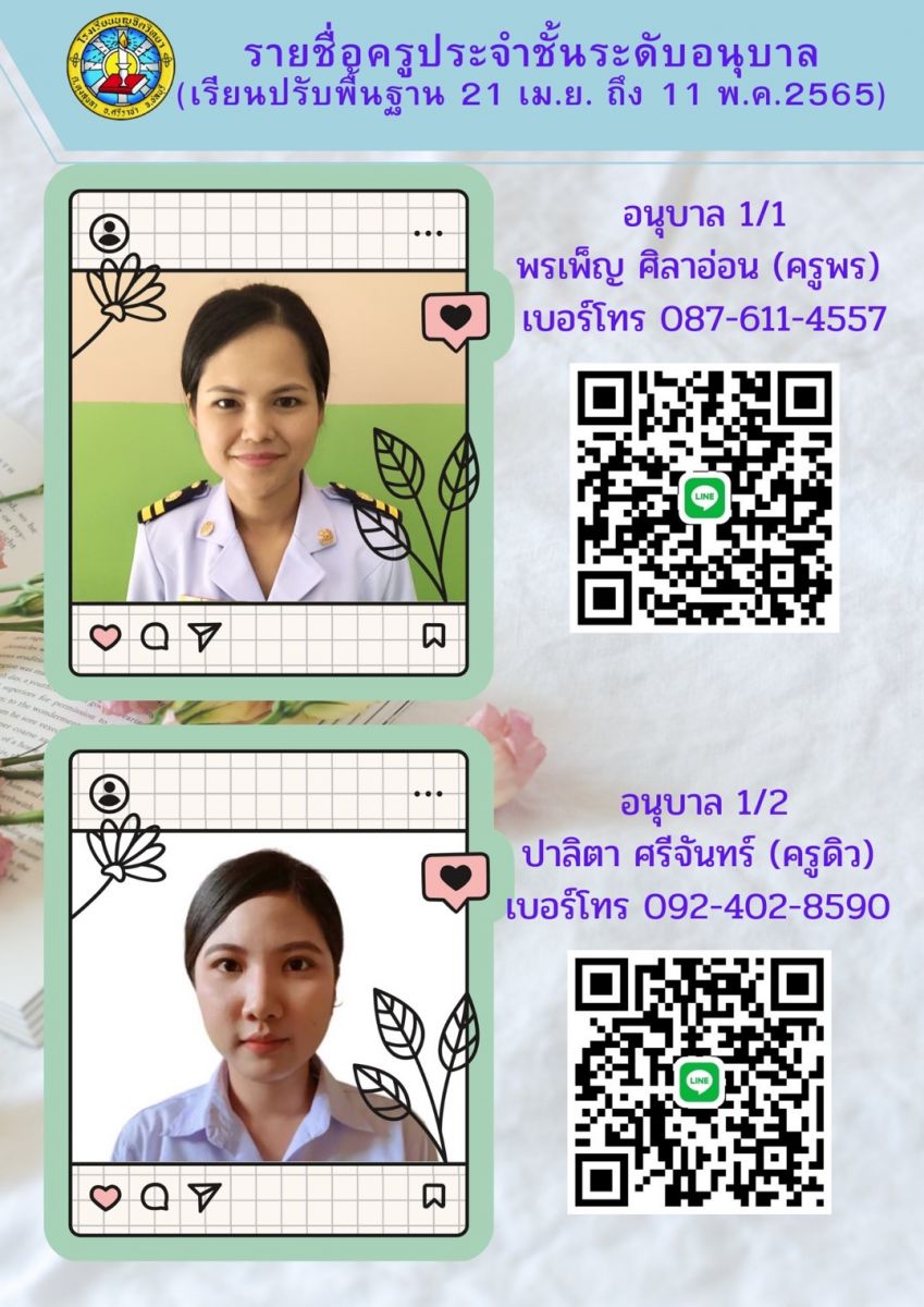 รายชื่อนักเรียน เรียนปรับพื้นฐานระดับอนุบาล