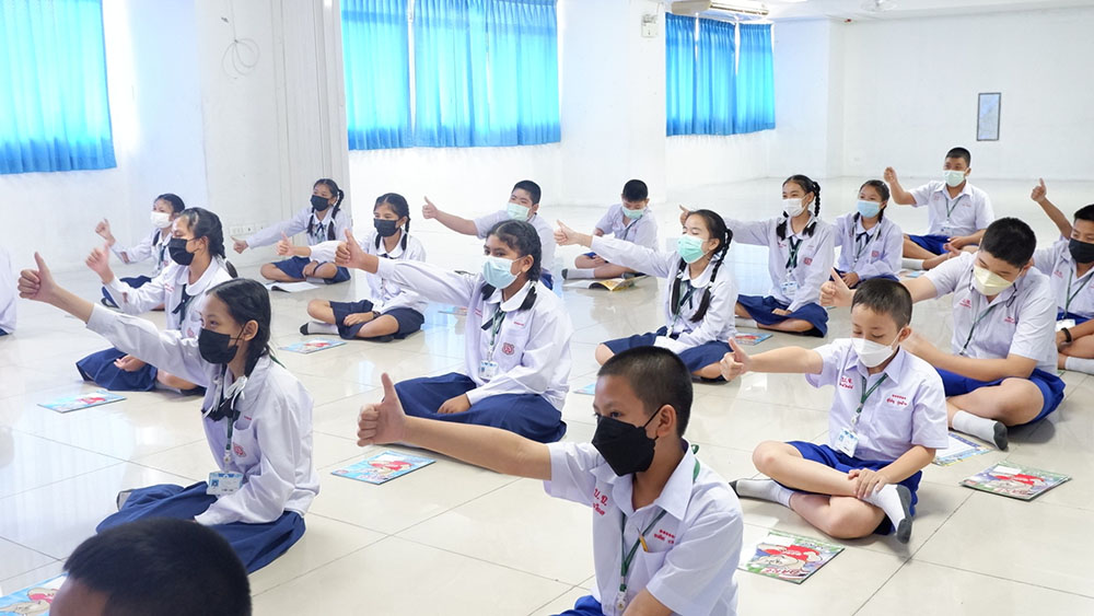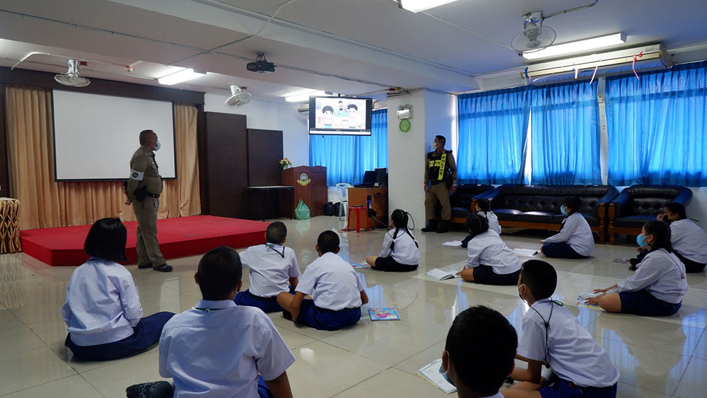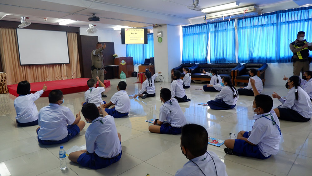 นักเรียนระดับชั้นประถมศึกษาเข้าร่วมโครงการ D.A.R.E ครูแดร์ โดยเจ้าหน้าที่ ร้อยตำรวจตรี ศักดิ์ชายอุดมนอกและคณะ รองสารวัตรจราจรสถานนีตำรวจภูธรแหลมฉบัง เป็นวิทยากรให้ความรู้เกี่ยวกับ โทษของบุหรี่ วันงดสุบบุหรี่โลก และ จัดกิจกรรมรณรงค์วันงดสูบบุหรี่