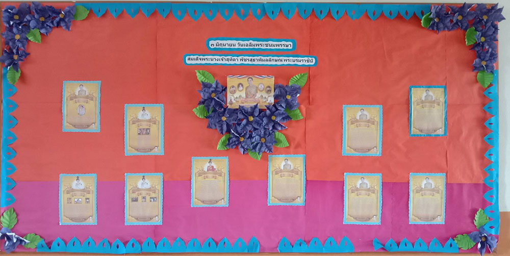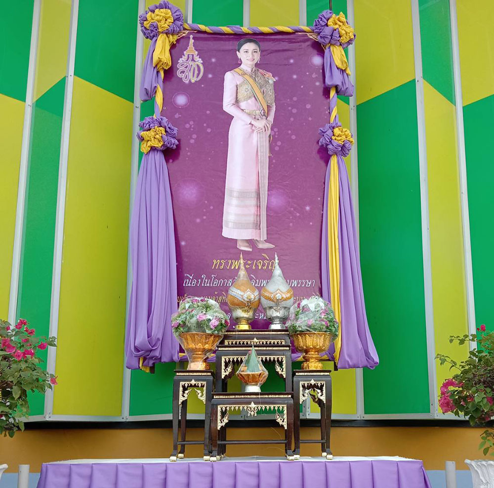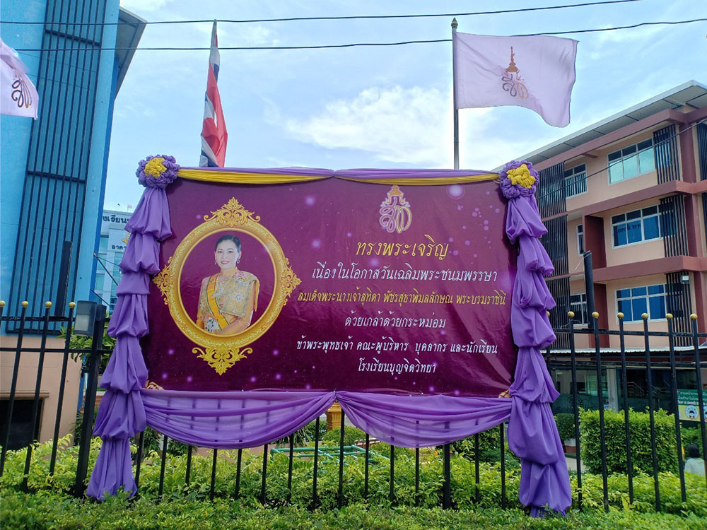 และจัดตั้งพระบรมฉายาสาทิสลักษณ์สมเด็จพระนางเจ้าสุทิดาพัชรสุธาพิมลลักษณพระบรมราชินีบริเวณหน้าโรงเรียนและหน้าอาคาร 50 ปี และ ติดธงเฉลิมพระเกียรติ เนื่องในวันเฉลิมพระชนมพรรษาสมเด็จพระราชินี
