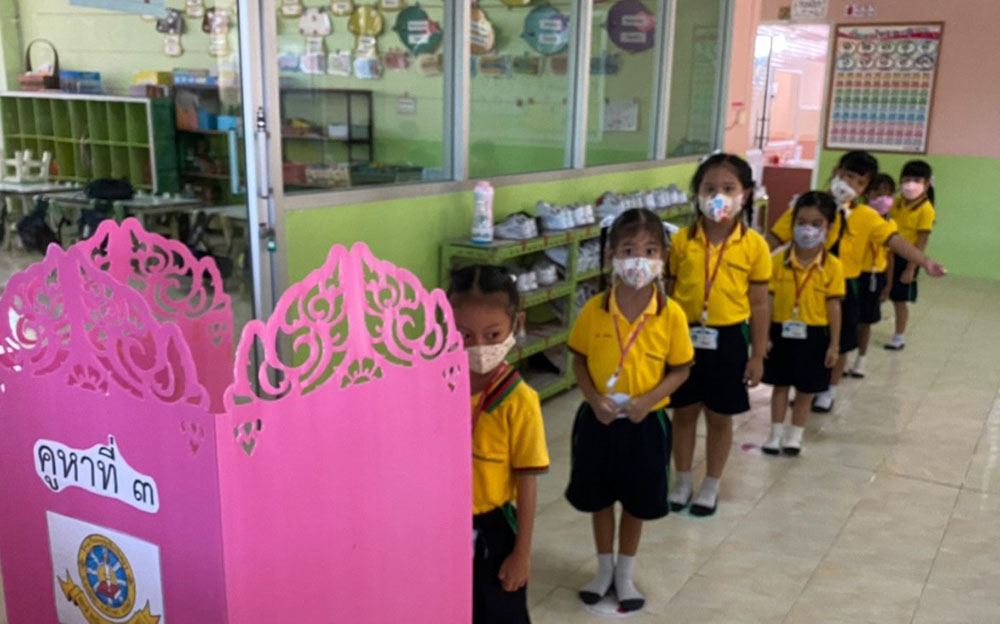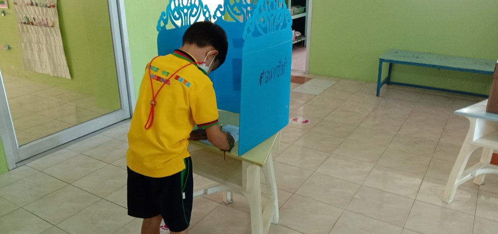 วันศุกร์ที่ 10 มิถุนายน พ.ศ.2565 นักเรียนระดับชั้นปฐมวัย เลือกตั้งสภานักเรียน ประจำปีการศึกษา 2565 นักเรียน แผนกปฐมวัย เตรียมอนุบาล - ระดับชั้นอนุบาลปีที่1- 3 ได้เข้าร่วมกิจกรรม Junior Leader Ship เลือกตั้งสภานักเรียน ประจำปีการศึกษา 2565