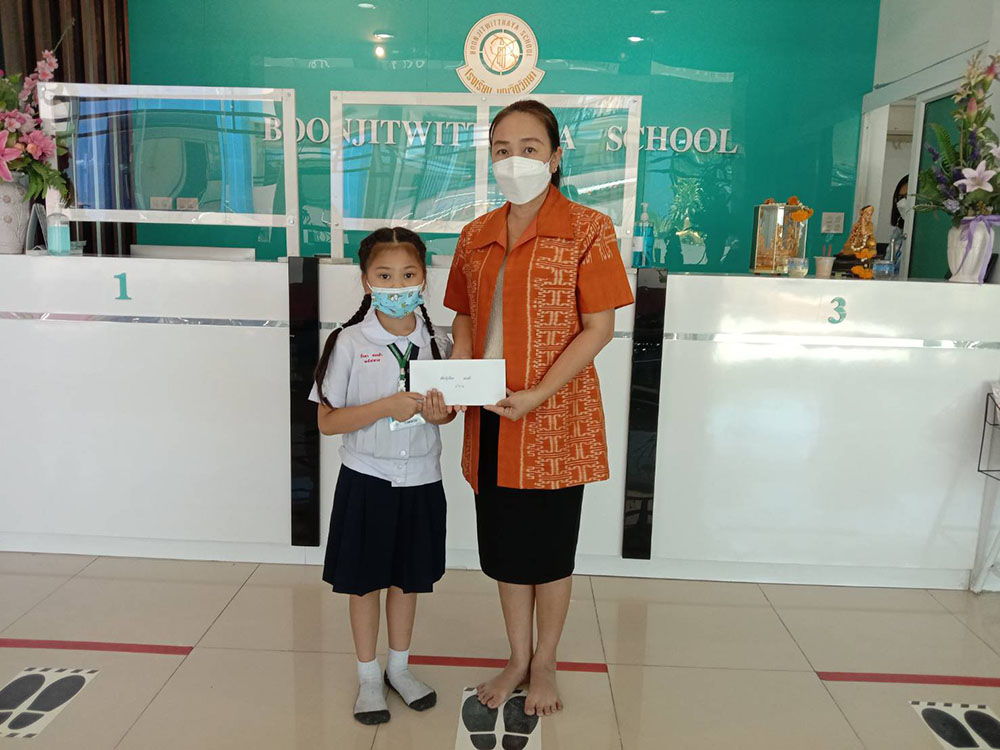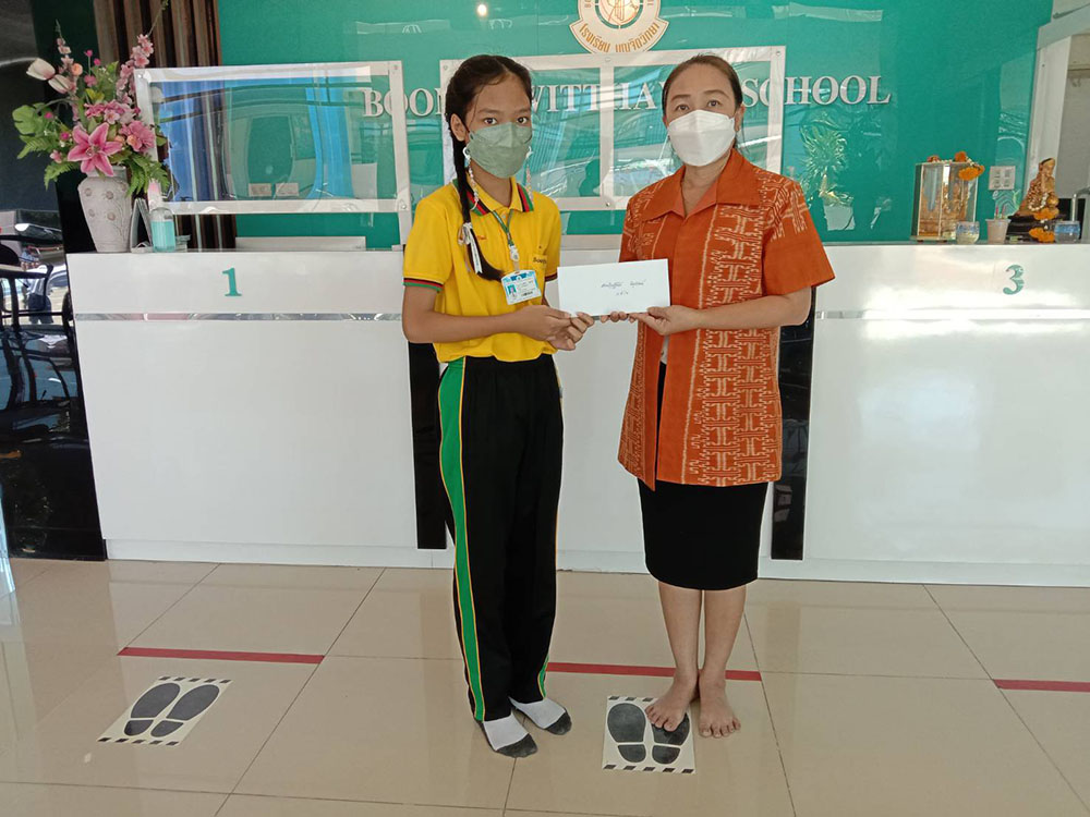 วันจันทร์ที่ 15 สิงหาคม 2565 นางชวาลา กันทอง ผู้อำนวยการโรงเรียนบุญจิตวิทยา มอบทุนสงเคราะห์จากพระครูอาทรพัฒนาภิรม เจ้าอาวาสวัดมโนรม ให้นักเรียนเรียนดี