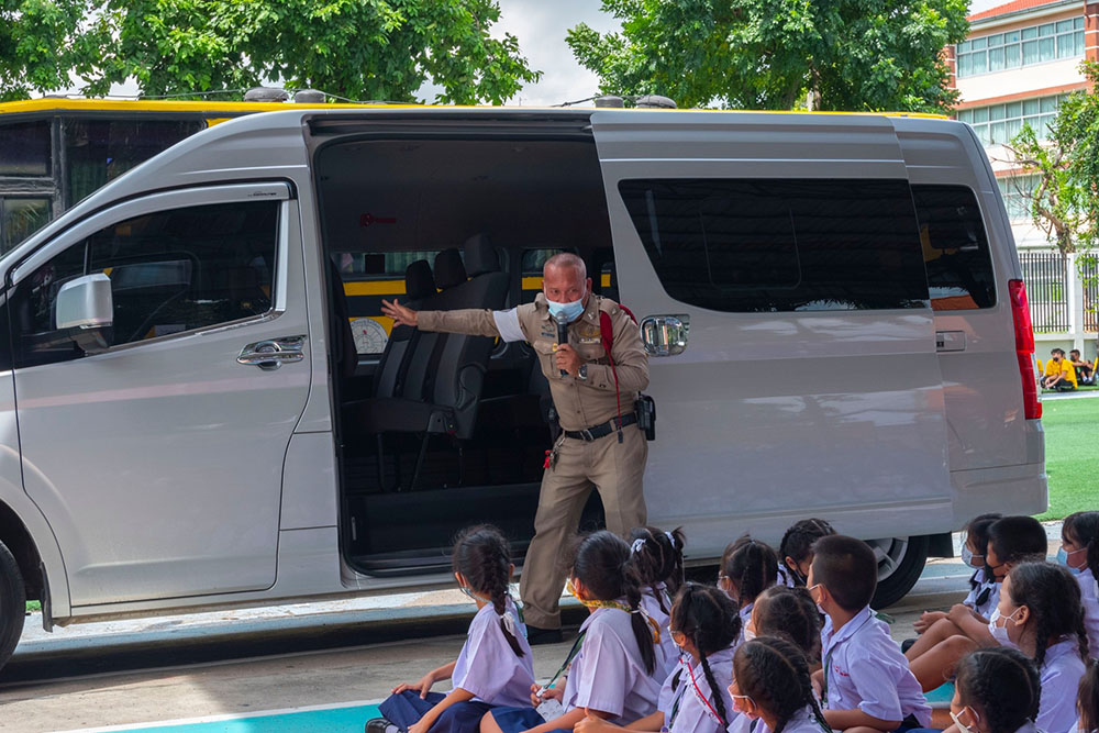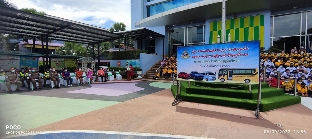 โรงเรียนบุญจิตวิทยา ได้รับเกียรติจาก พ.ต.อ.จิราวัฒน์ ศักดิ์ศรีวัฒนา ผกก.สภ.แหลมฉบัง ได้นำคณะเจ้าหน้าที่ตำรวจมาให้ความรู้แก่นักเรียนระดับชั้นอนุบาล ถึงชั้นมัธยมศึกษาปีที่ 3 เรื่อง การปฏิบัติตนเมื่อโดยสารในรถรับ-ส่ง นักเรียน/รถยนต์ส่วนตัว และมีการซักซ้อมเมื่อนักเรียนติดอยู่ในรถจริง และได้ให้นักเรียนได้ฝึกปฏิบัติจริง ทางโรงเรียนขอขอบคุณเจ้าหน้าที่ตำรวจสภ.แหลมฉบัง ที่ได้มาให้ความรู้แก่นักเรียนด้วยนะคะ