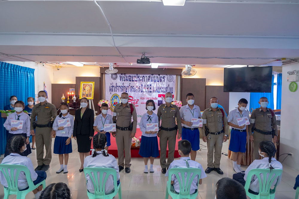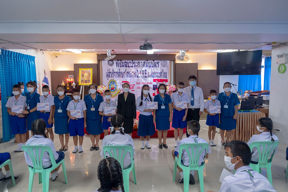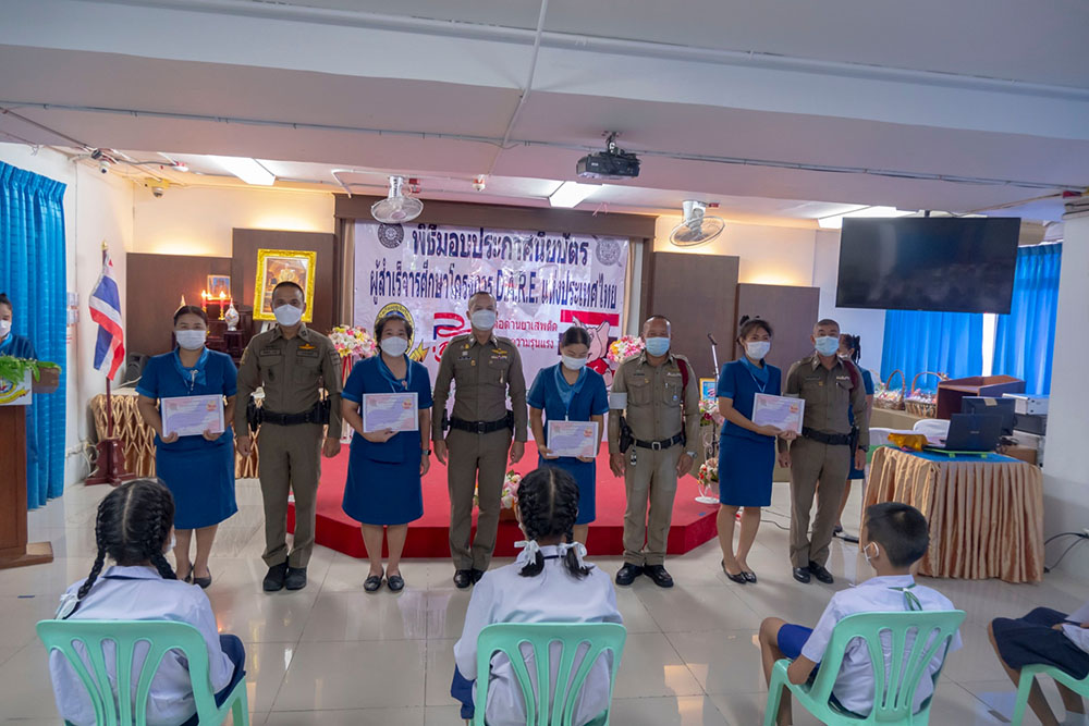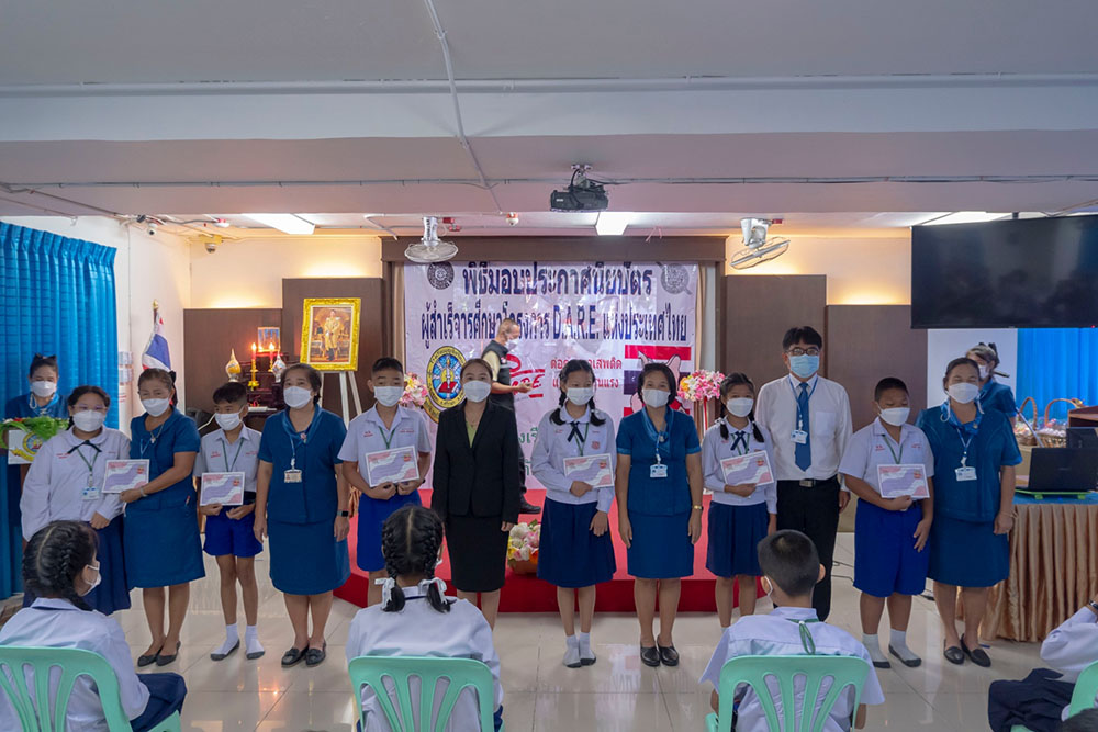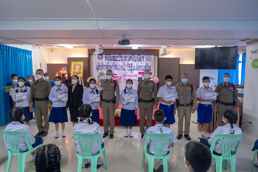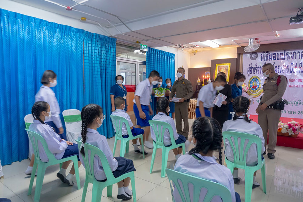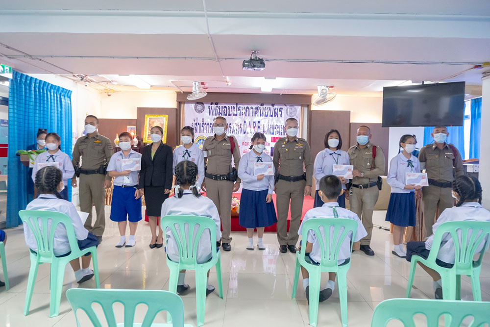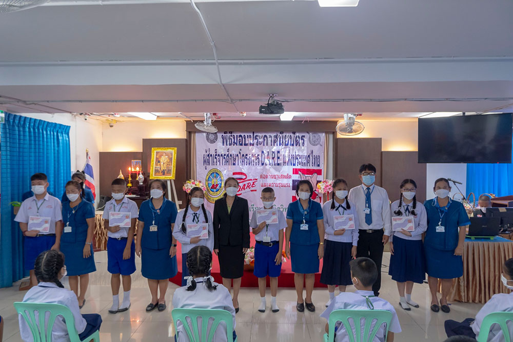 พ.ต.ท.สิทธิพร กะสิ รอง ผกก. ปราบปราม สภ.แหลมฉบัง และคณะ ได้เป็นเกียติเป็นประธานการมอบประกาศนียบัตรให้กับนักเรียน ที่จบการอบรมหลักสูตร D.A.R.E. ประจำปี 2565 พร้อมหารือแนวทางการเเก้ไขปัญหายาเสพติดในโรงเรียน