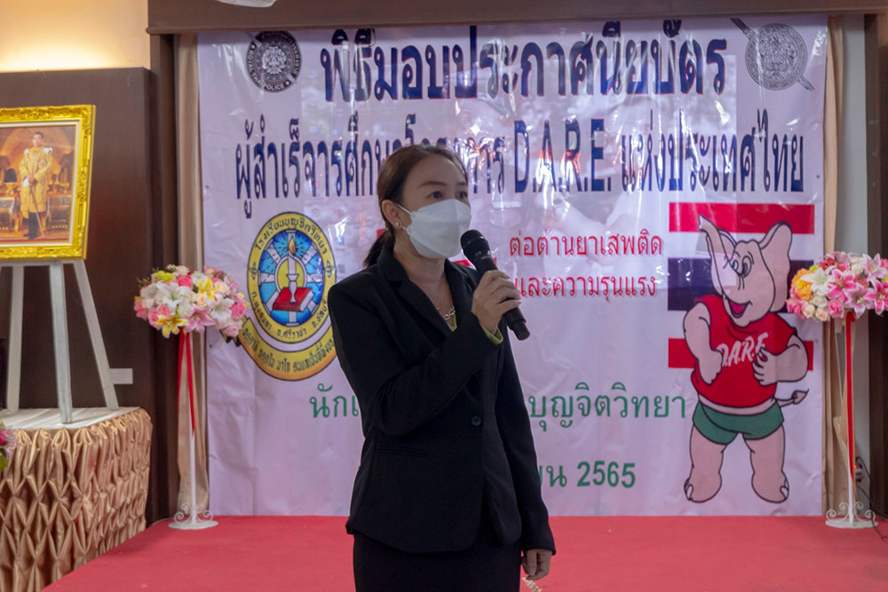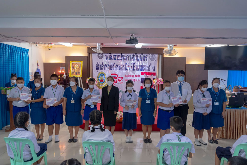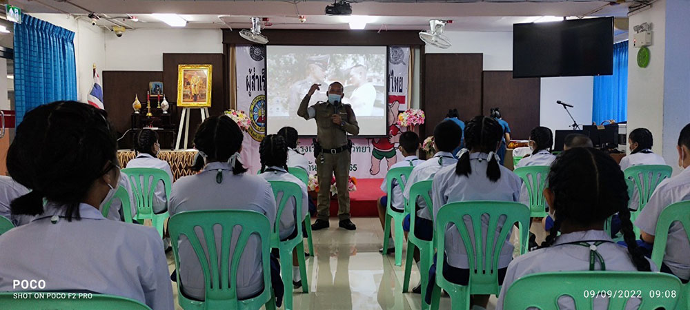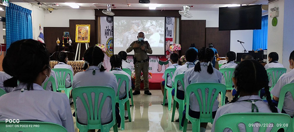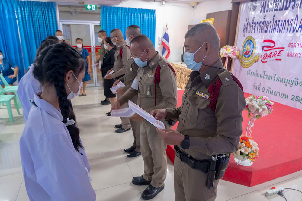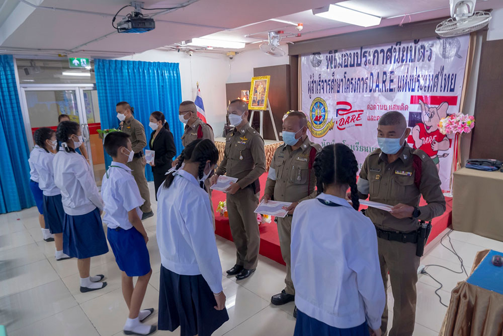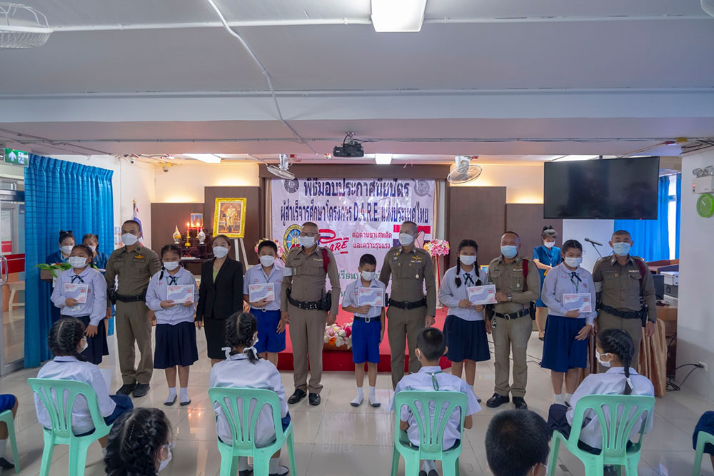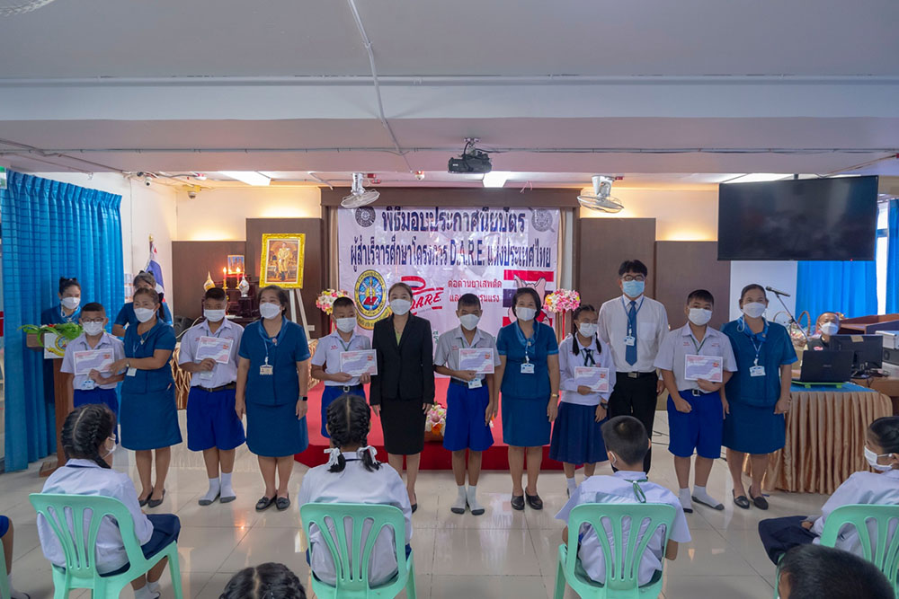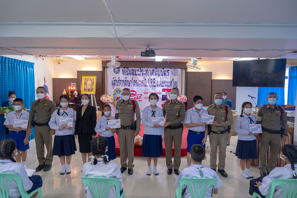 พ.ต.ท.สิทธิพร กะสิ รอง ผกก. ปราบปราม สภ.แหลมฉบัง และคณะ ได้เป็นเกียติเป็นประธานการมอบประกาศนียบัตรให้กับนักเรียน ที่จบการอบรมหลักสูตร D.A.R.E. ประจำปี 2565 พร้อมหารือแนวทางการเเก้ไขปัญหายาเสพติดในโรงเรียน