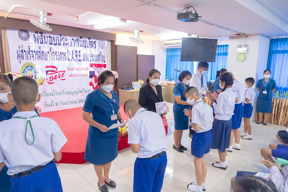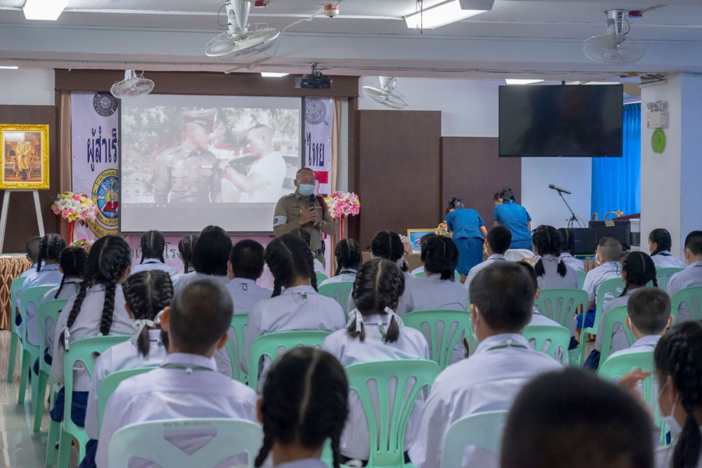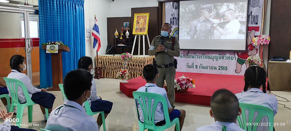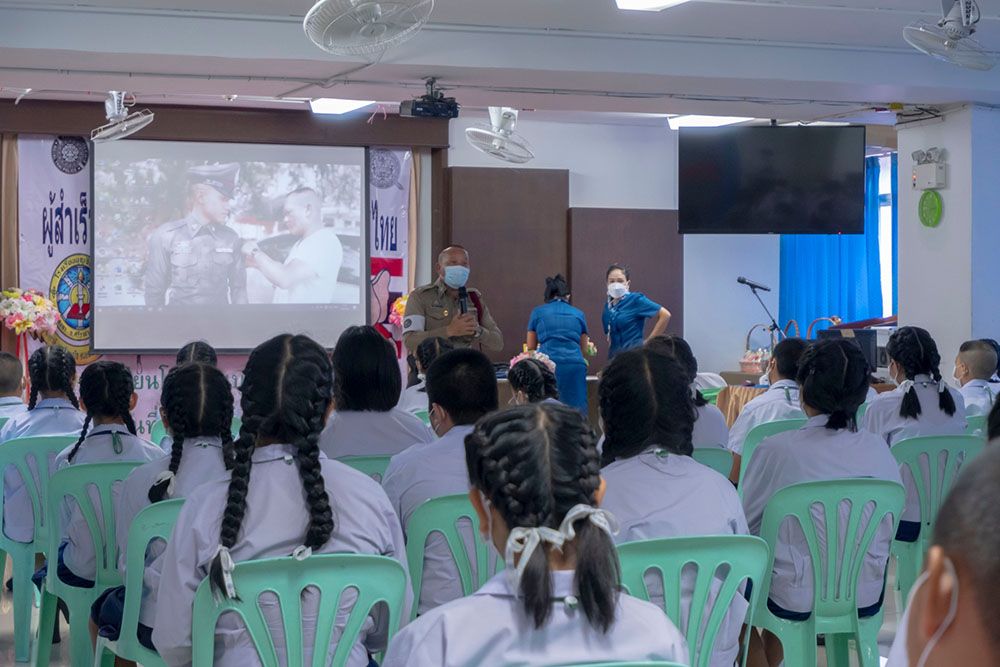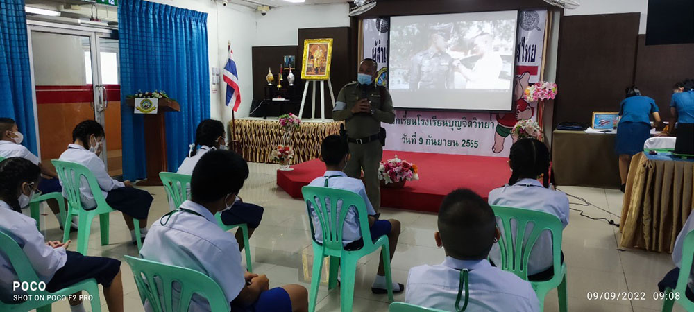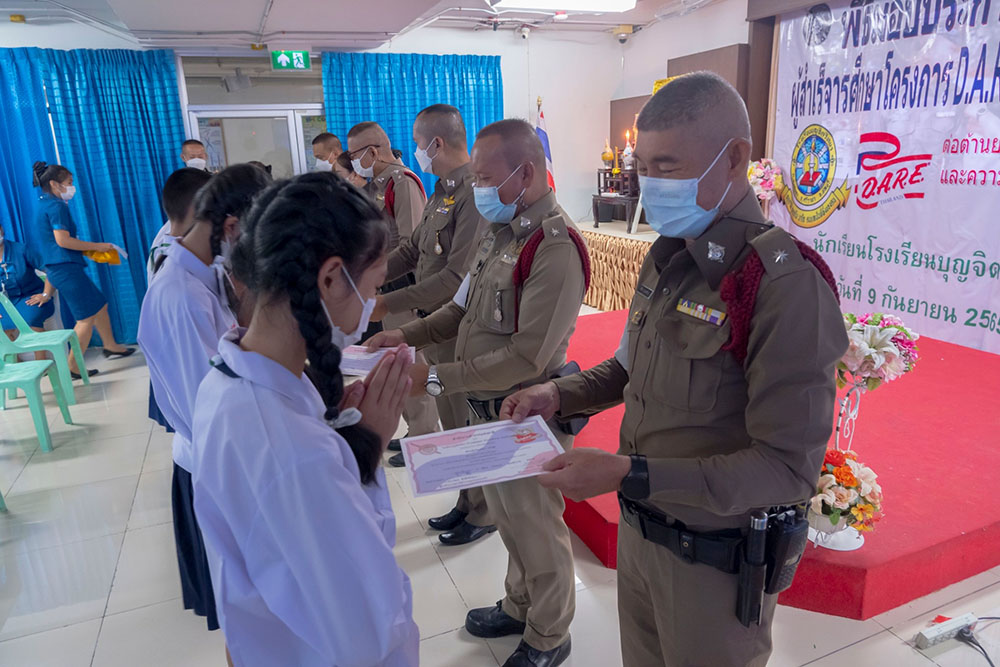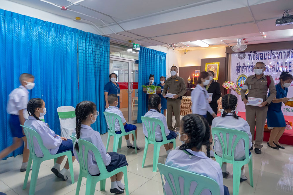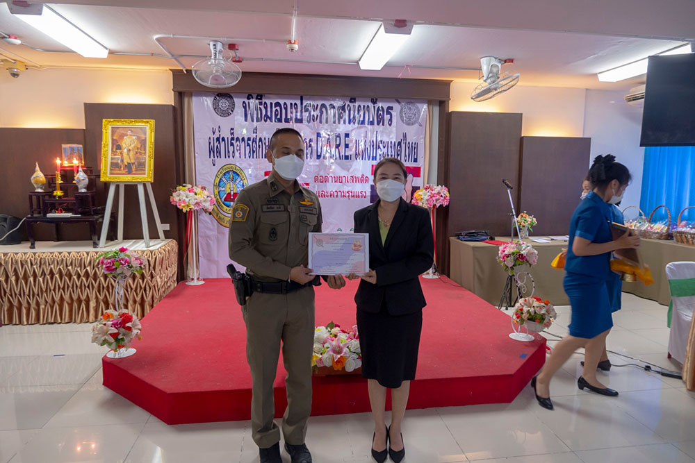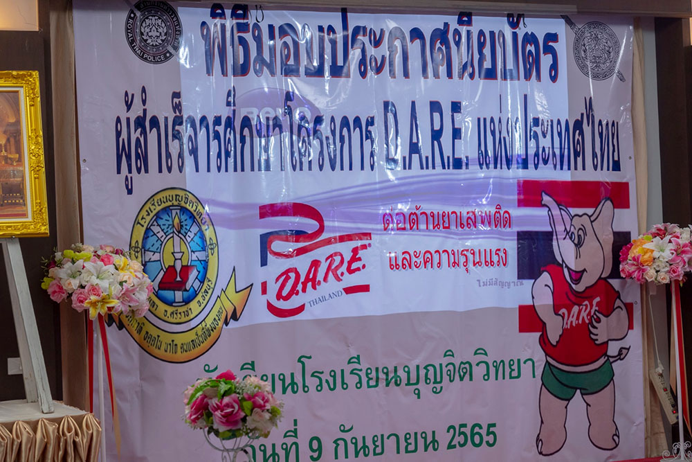 พ.ต.ท.สิทธิพร กะสิ รอง ผกก. ปราบปราม สภ.แหลมฉบัง และคณะ ได้เป็นเกียติเป็นประธานการมอบประกาศนียบัตรให้กับนักเรียน ที่จบการอบรมหลักสูตร D.A.R.E. ประจำปี 2565 พร้อมหารือแนวทางการเเก้ไขปัญหายาเสพติดในโรงเรียน