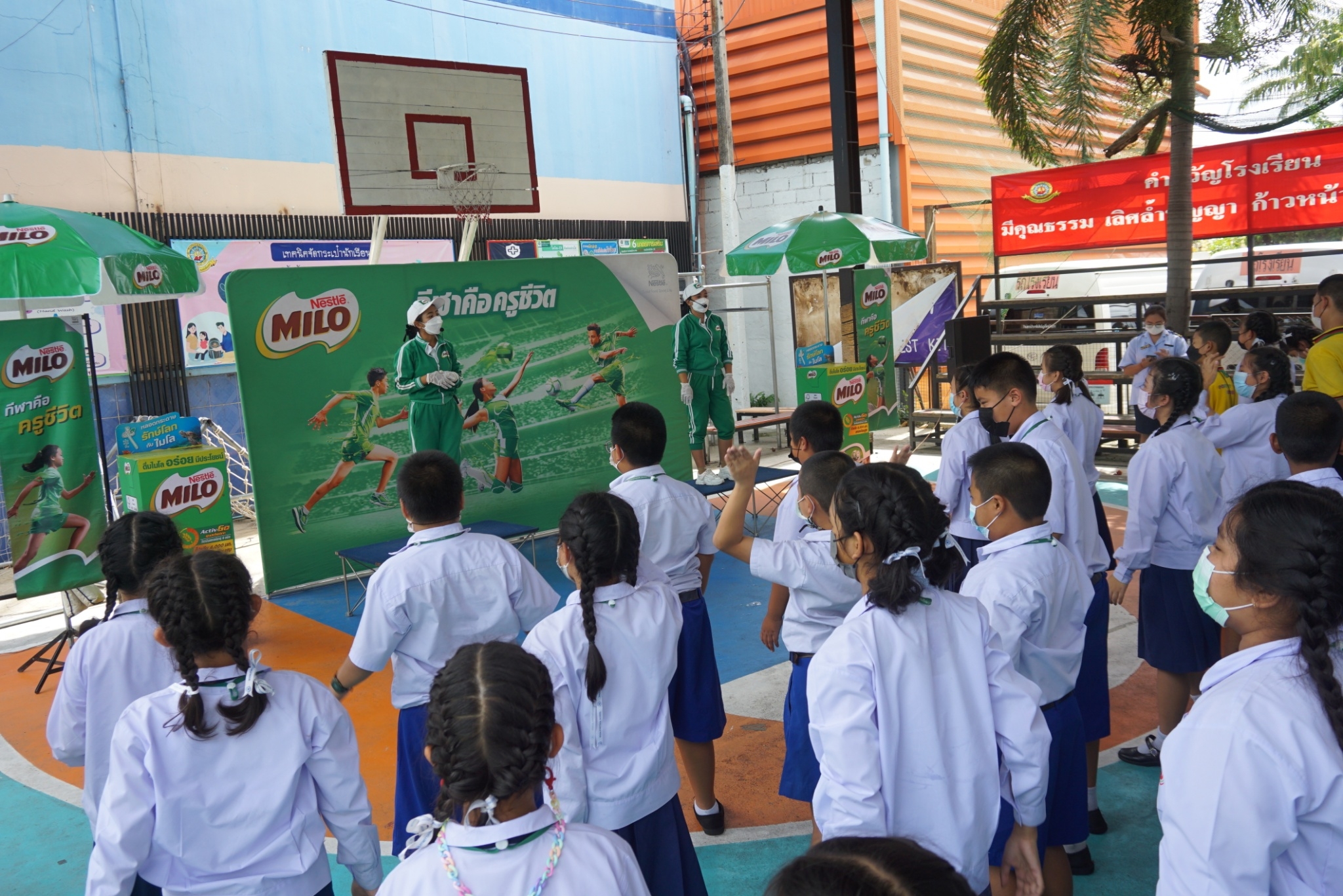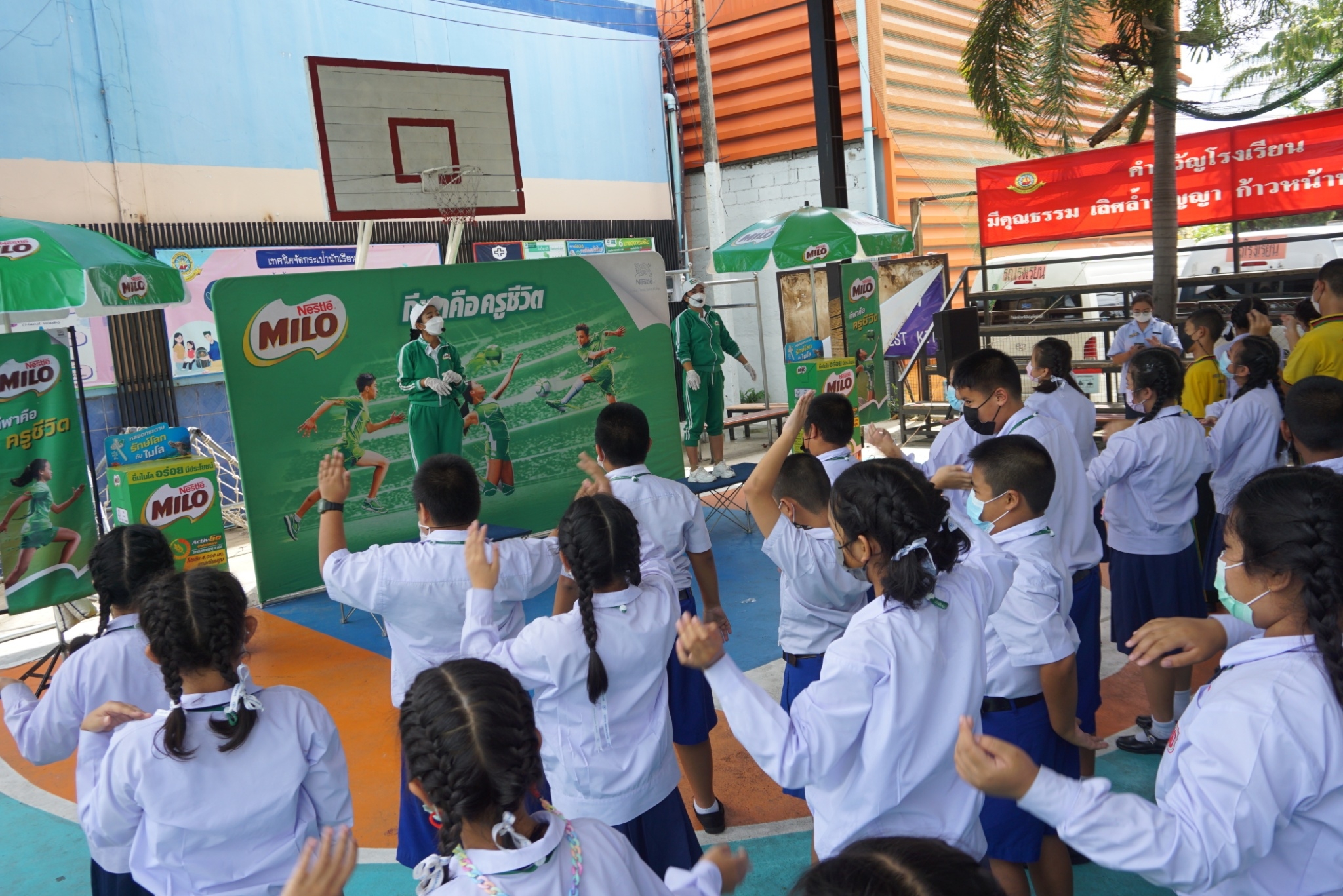 ได้จัดกิจกรรมปลูกจิตสำนึกให้นักเรียน ชั้น ป.1-6 ได้มีความรู้พื้นฐานด้านโภชนาการส่งเสริมการเล่นกีฬาออกกำลังกายเพื่อสุขภาพพร้อมทั้งแจกเครื่องดื่มและจัดกิจกรรมนันทนาการ