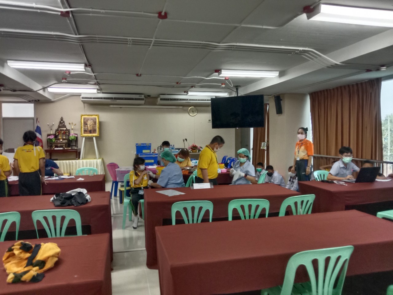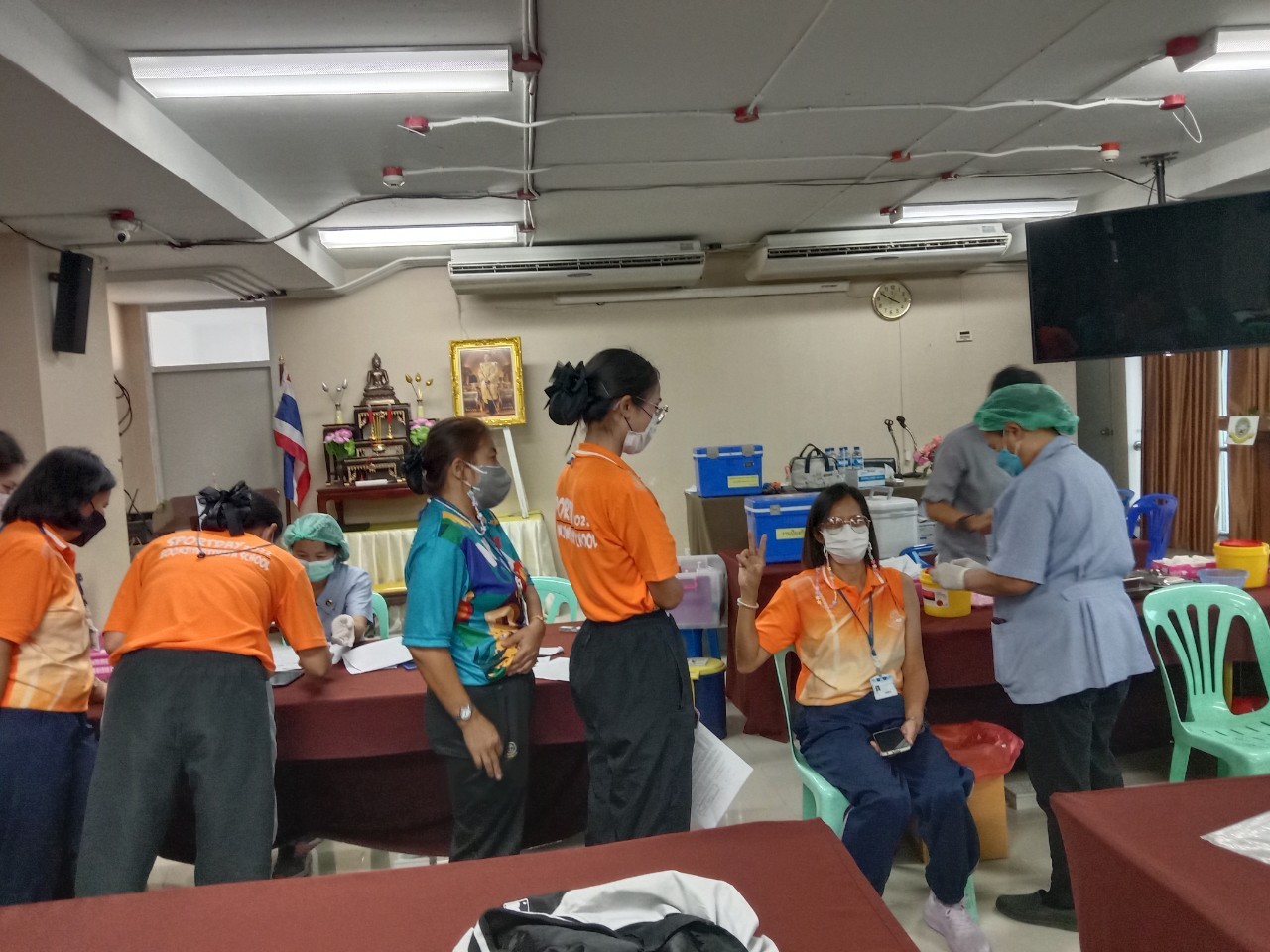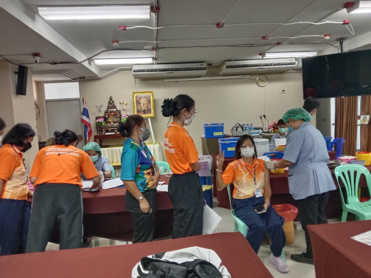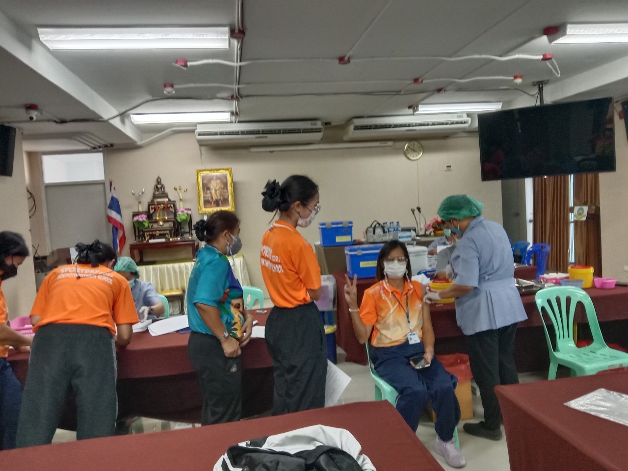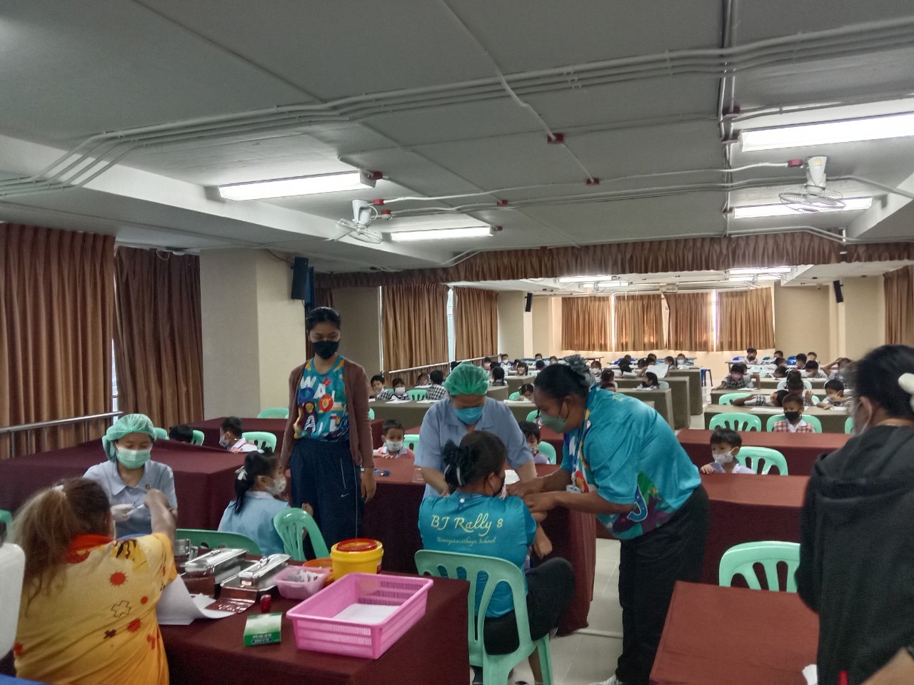 เจ้าหน้าที่จากโรงพยาบาลแหลมฉบัง ฉีดวัคซีน Pfizer ให้กับนักเรียนและครู ณห้องประชุมชั้น 4 อาคาร 50 ปี