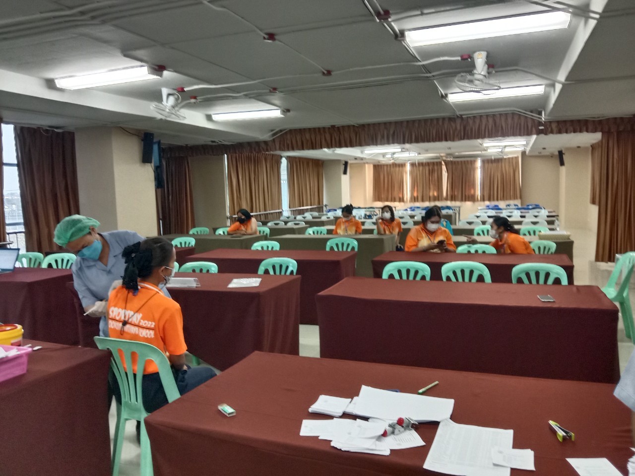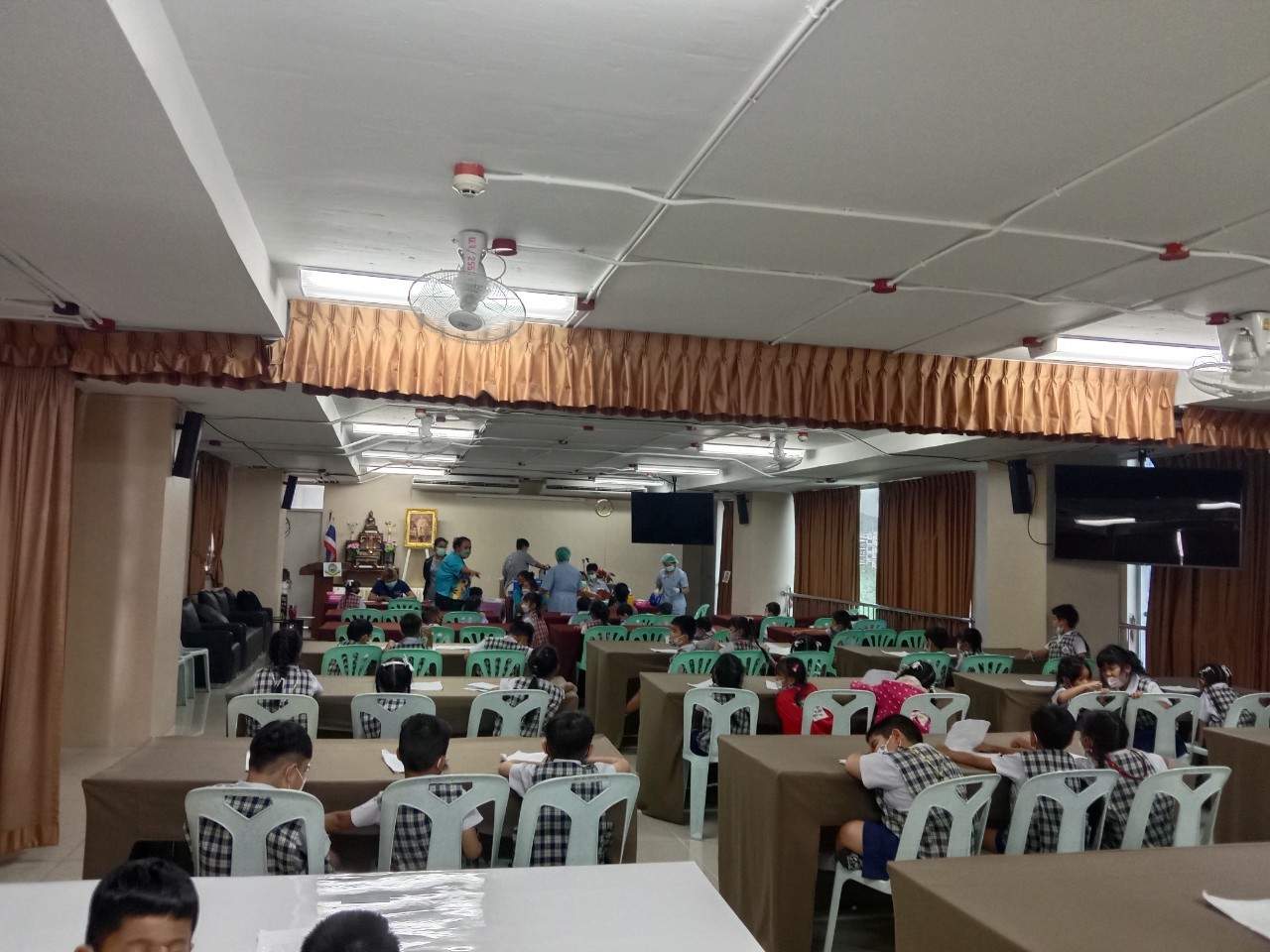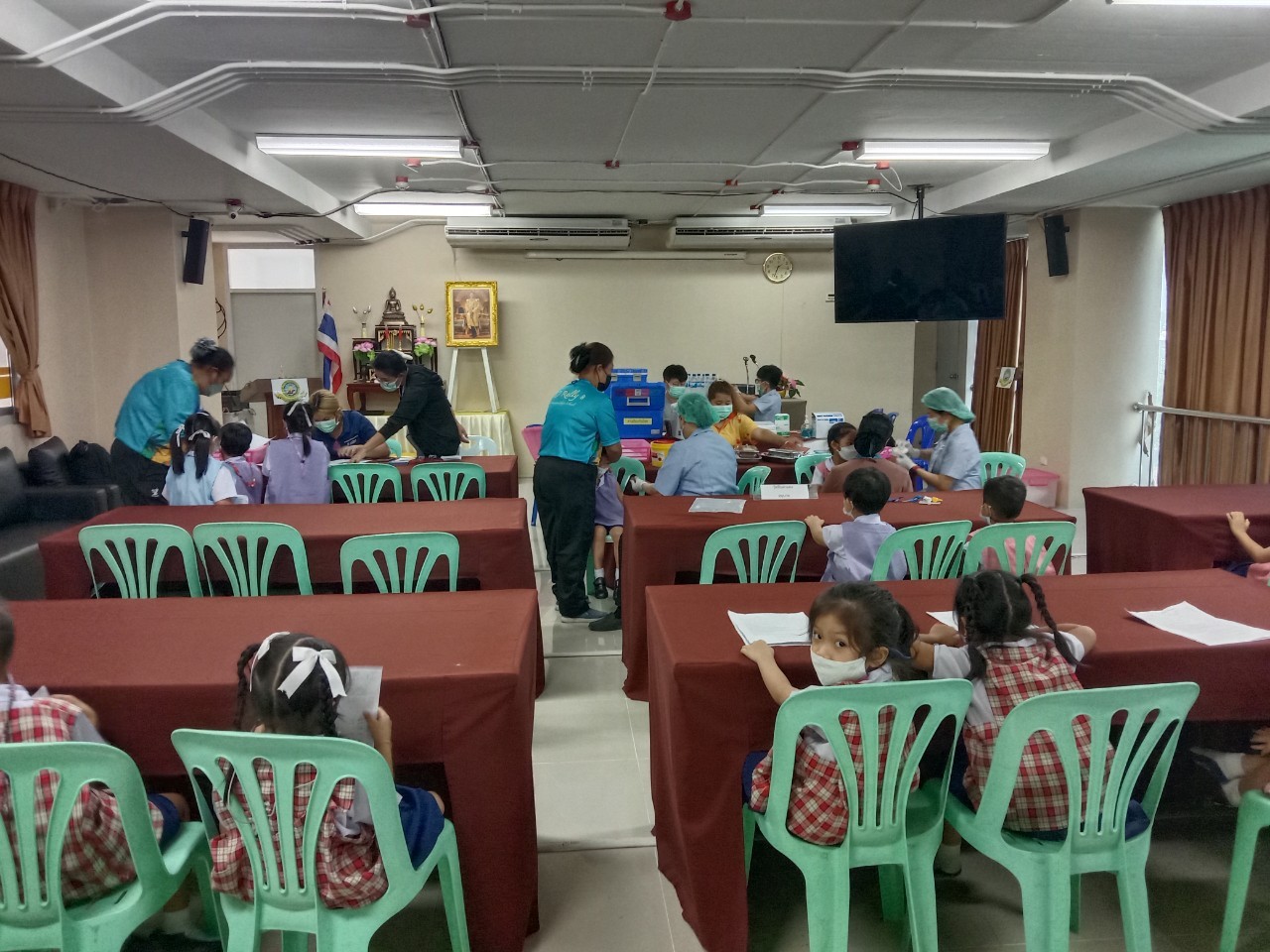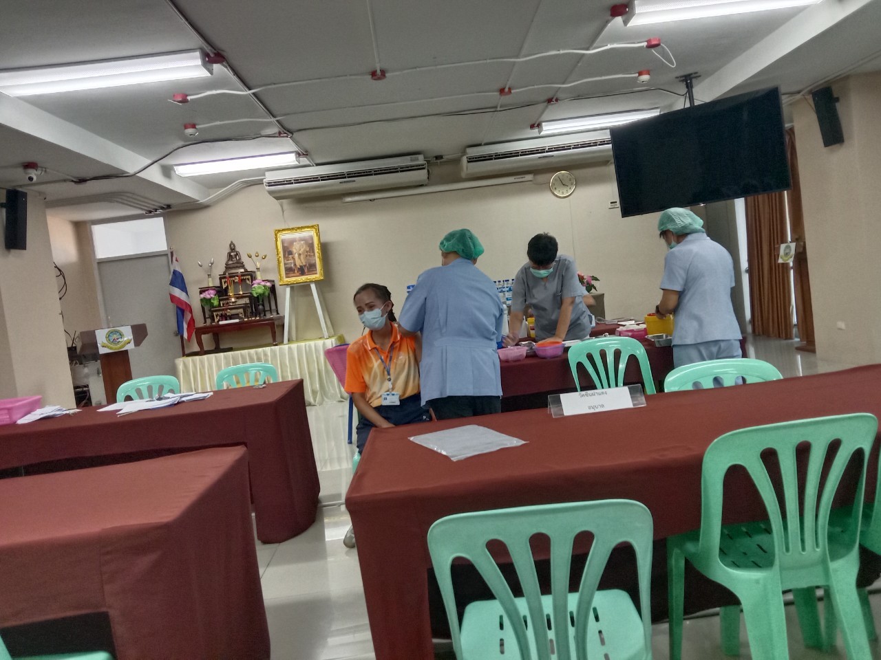 เจ้าหน้าที่จากโรงพยาบาลแหลมฉบัง ฉีดวัคซีน Pfizer ให้กับนักเรียนและครู ณห้องประชุมชั้น 4 อาคาร 50 ปี