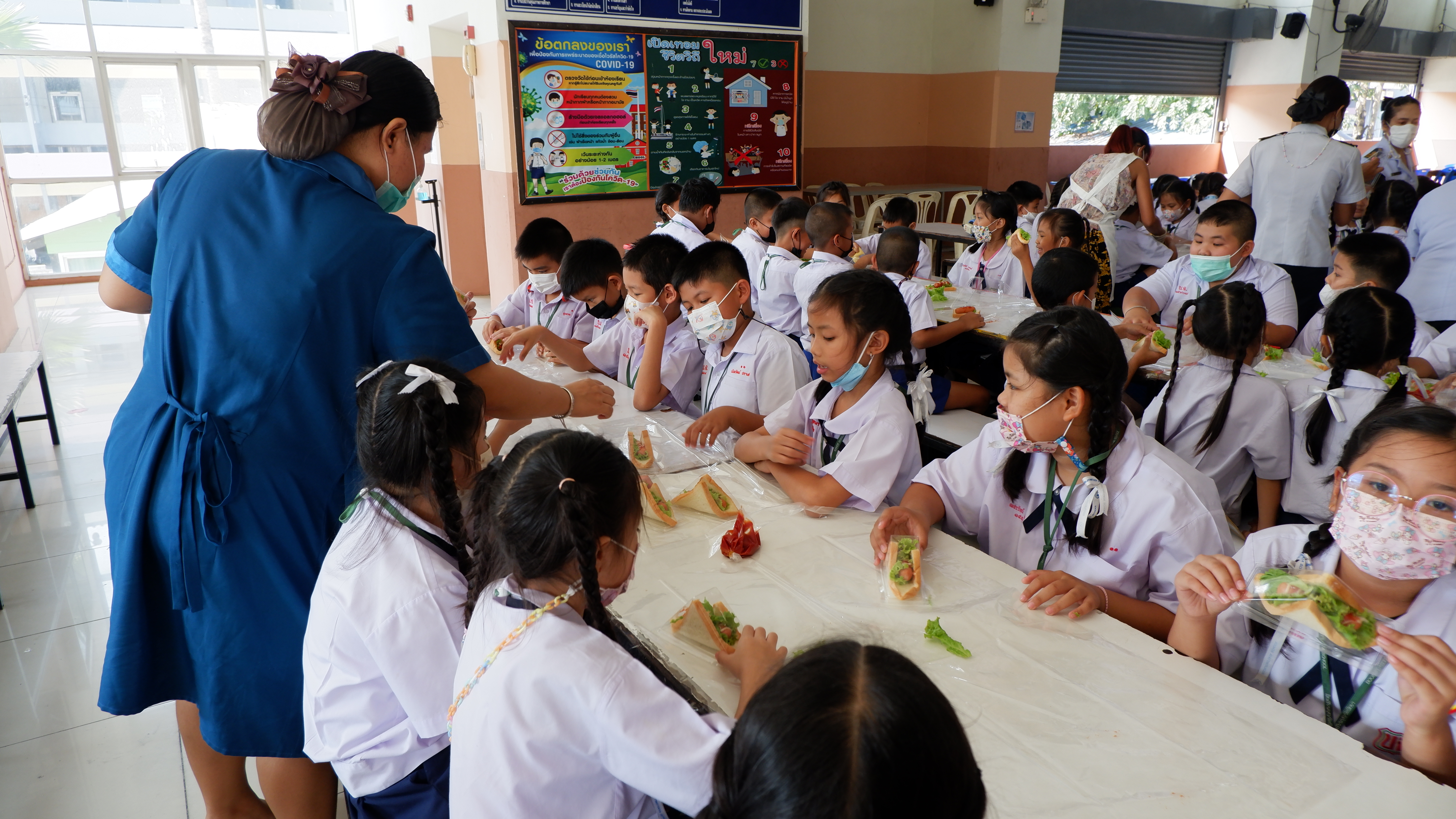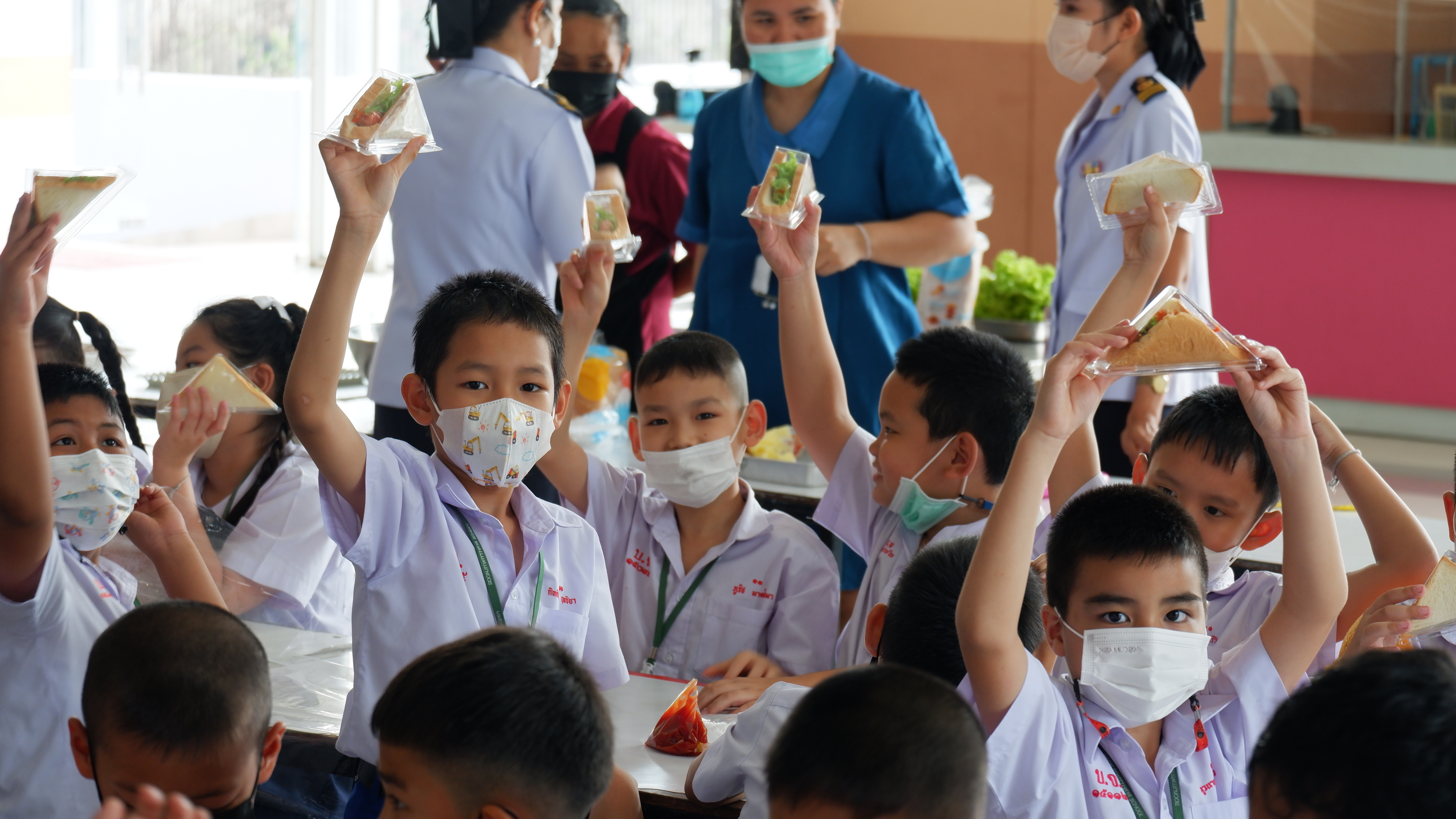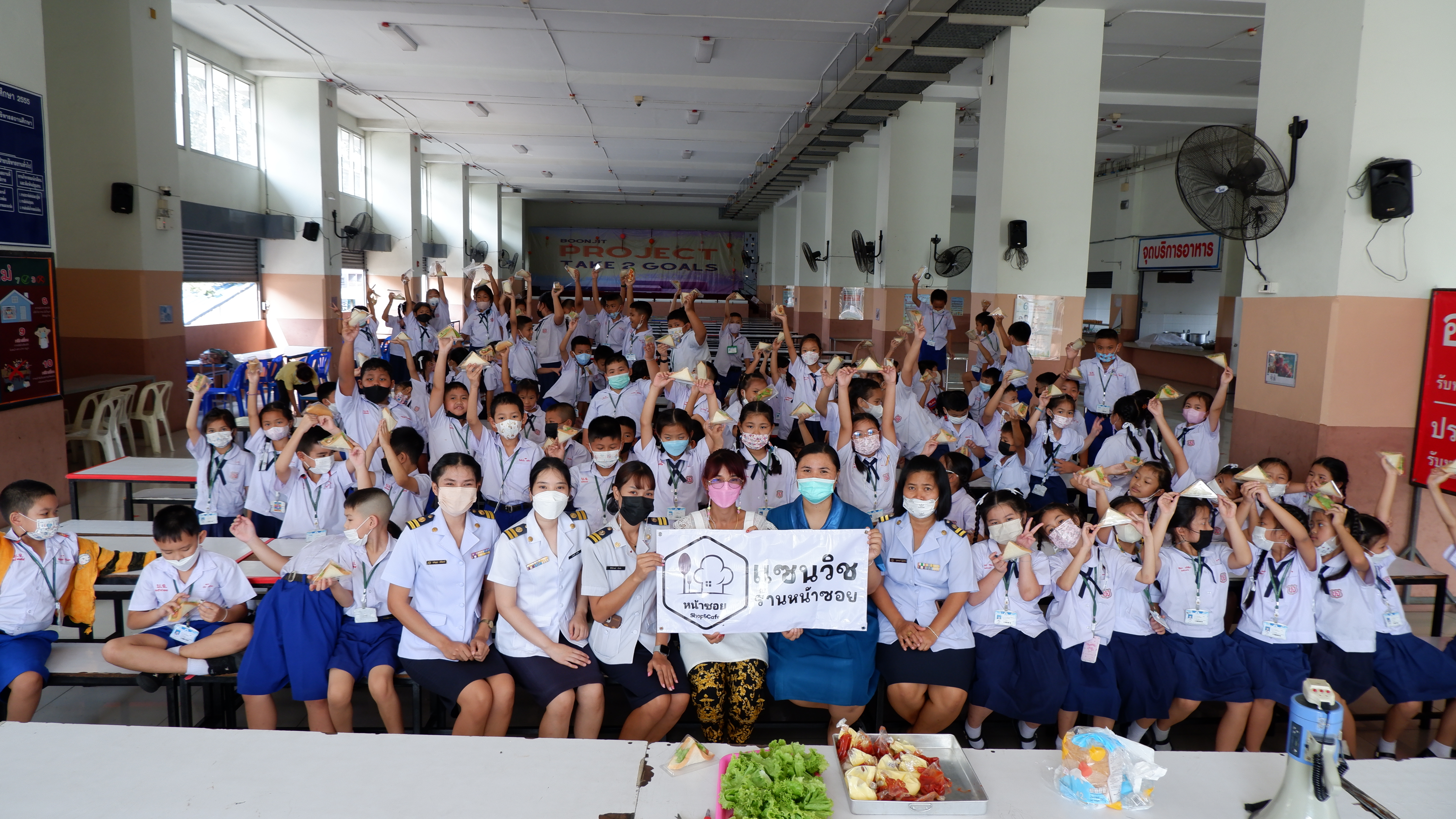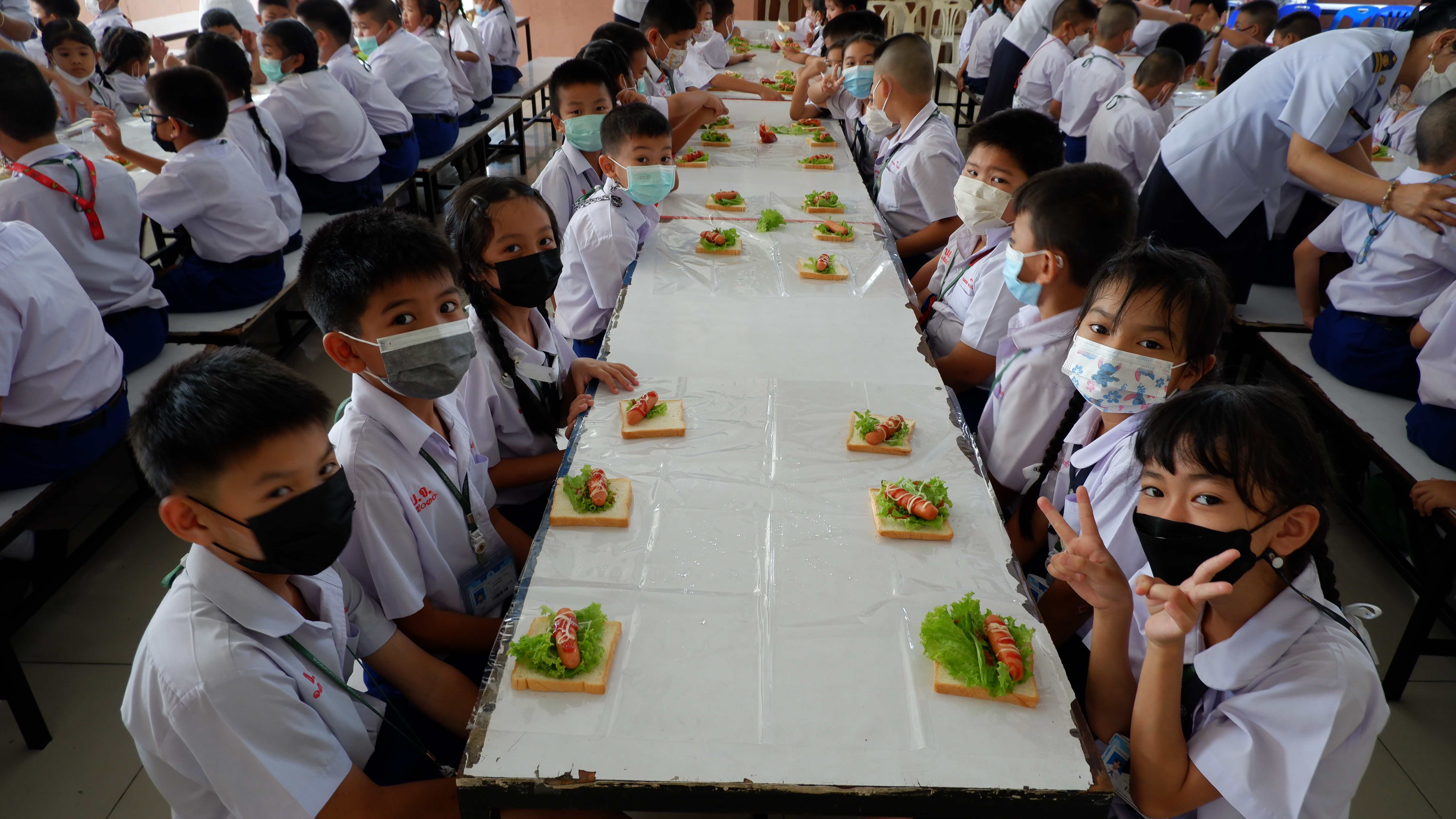 วันจันทร์ที่ 13 กุมภาพันธ์ 2566 กิจกรรมหนึ่งครูหนึ่งวิทยากรการทำแซนวิช นักเรียนชั้นประถมศึกษาที่ 3 การทำแซนวิช ณโรงอาหารอาคาร 50ปี