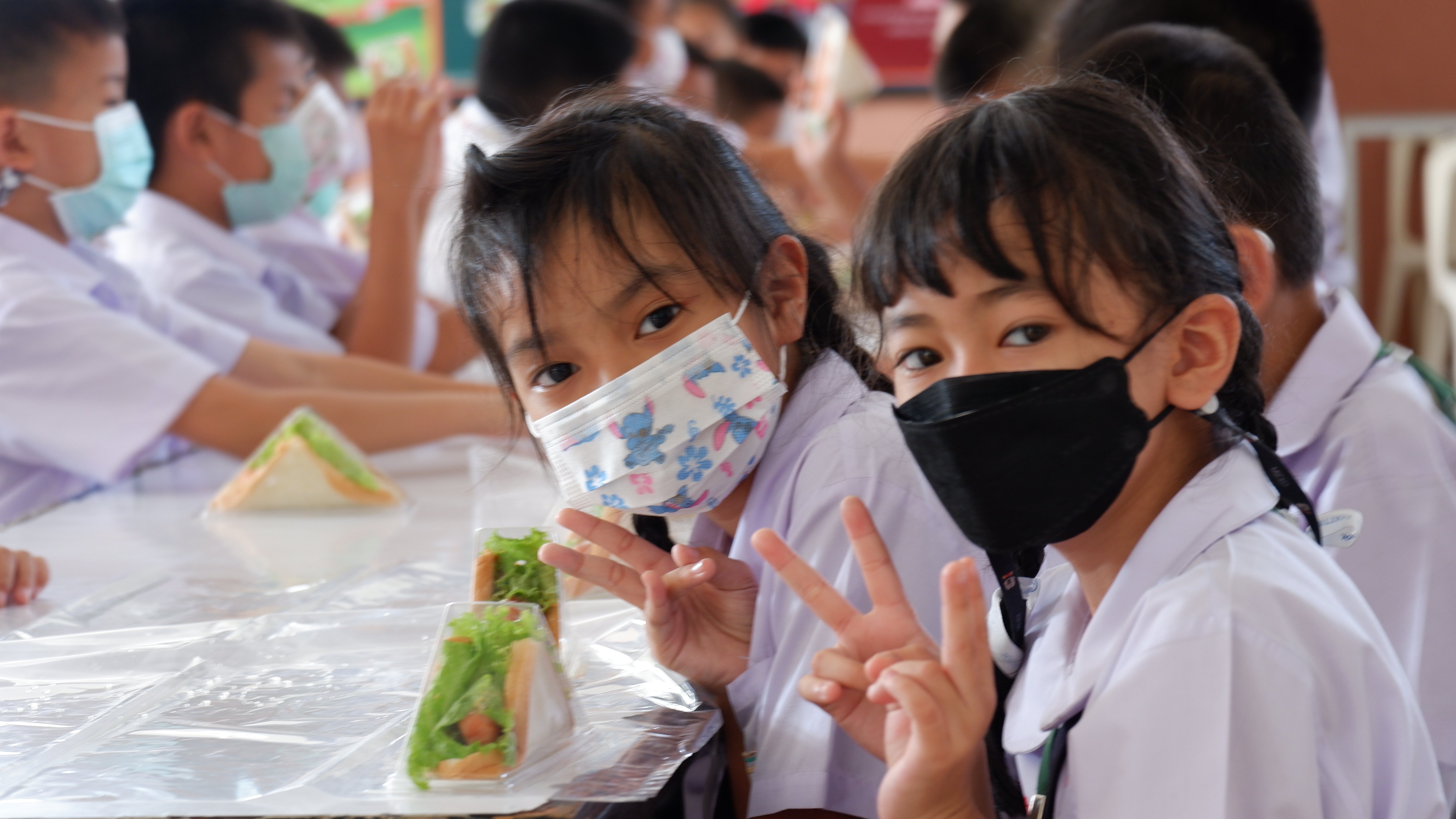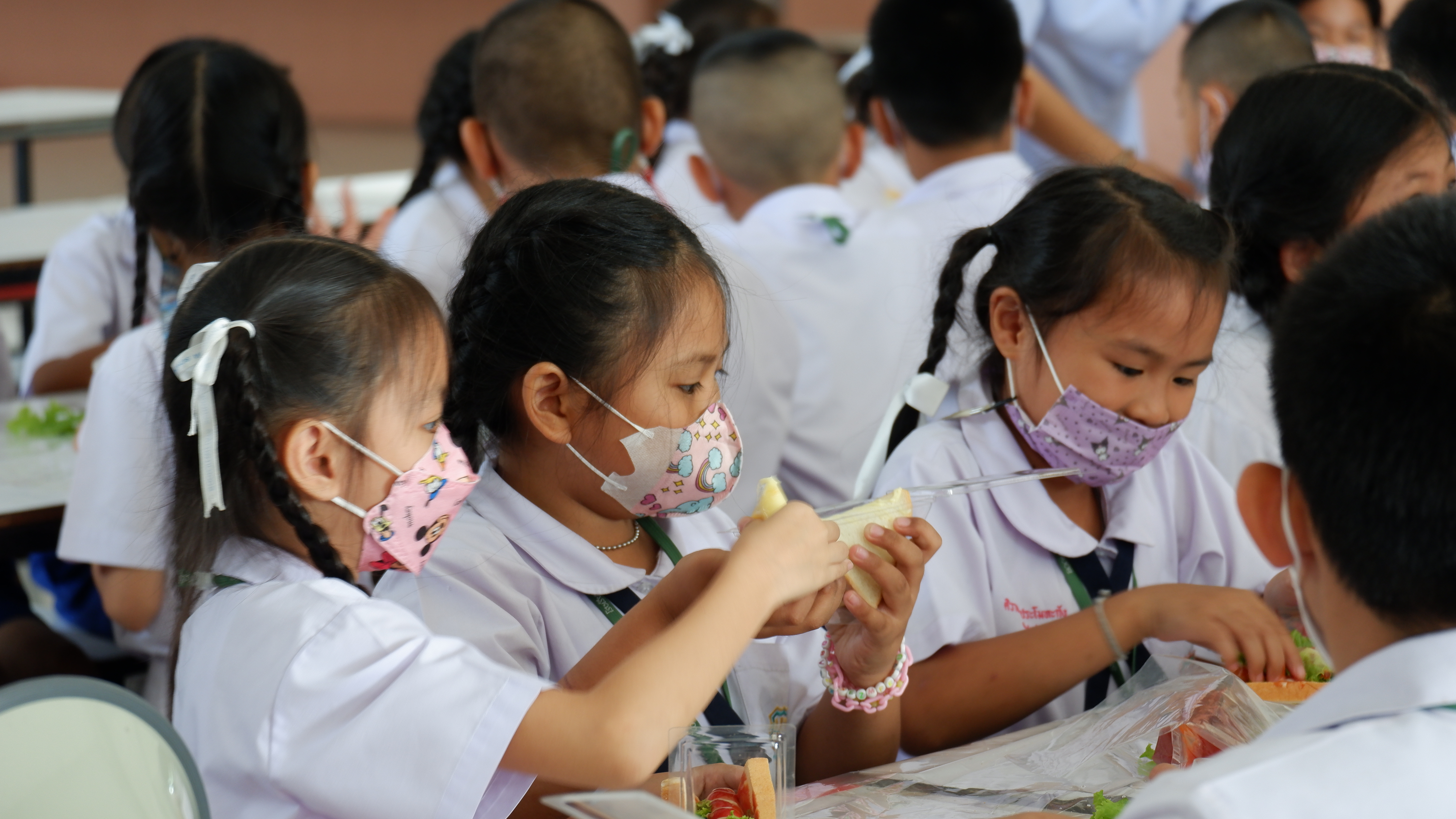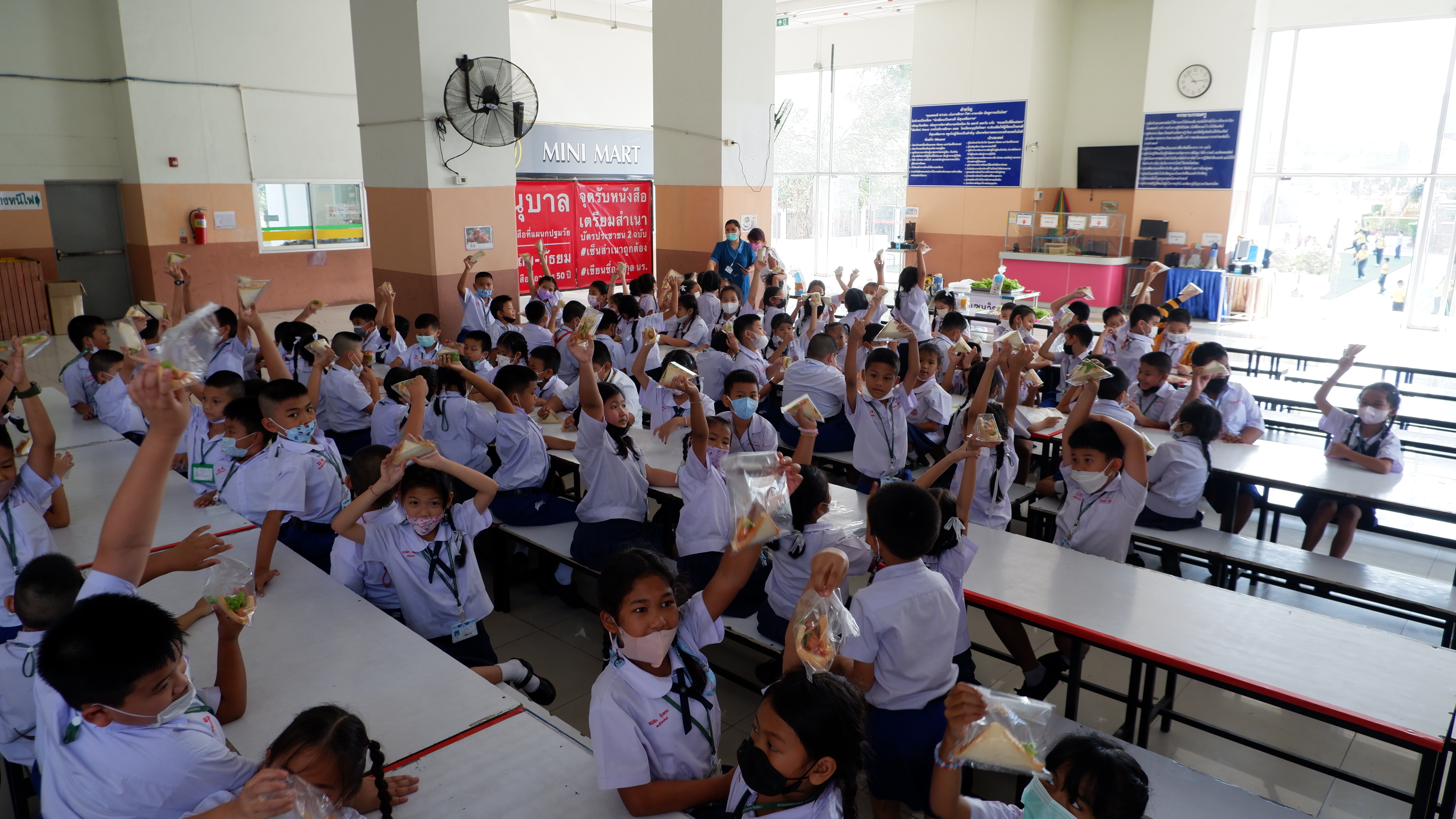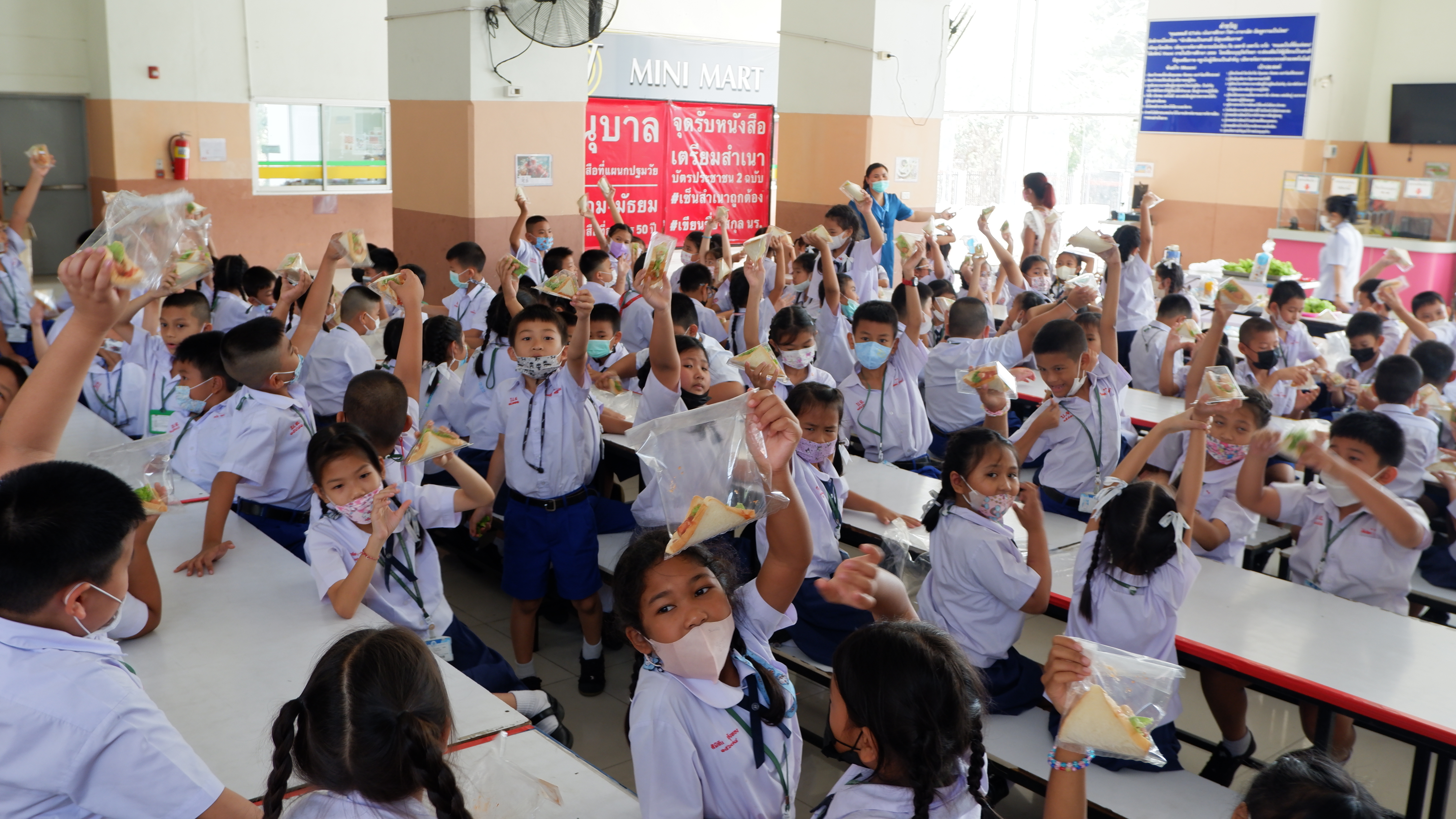 วันจันทร์ที่ 13 กุมภาพันธ์ 2566 กิจกรรมหนึ่งครูหนึ่งวิทยากรการทำแซนวิช นักเรียนชั้นประถมศึกษาที่ 3 การทำแซนวิช ณโรงอาหารอาคาร 50ปี