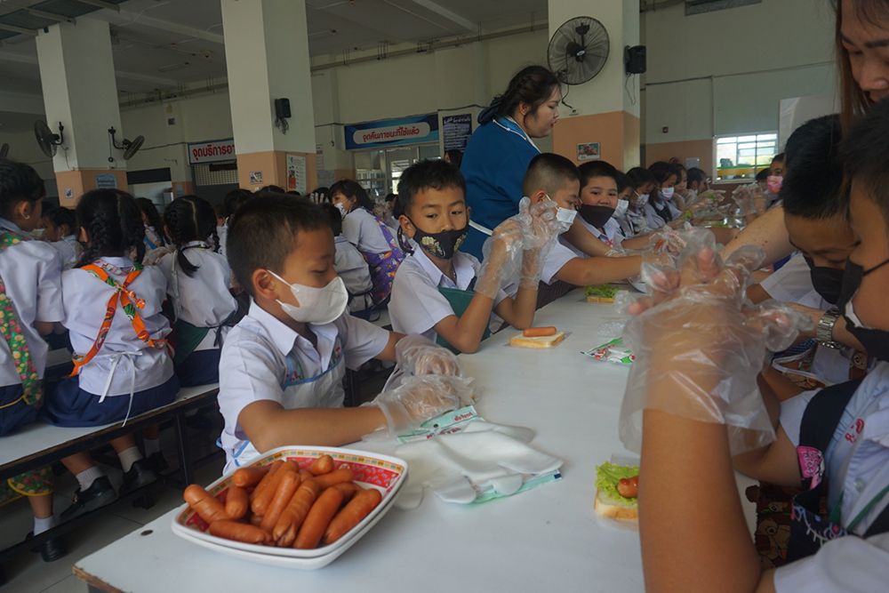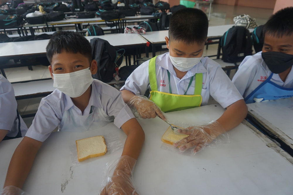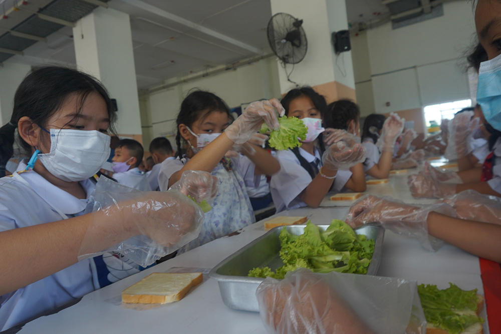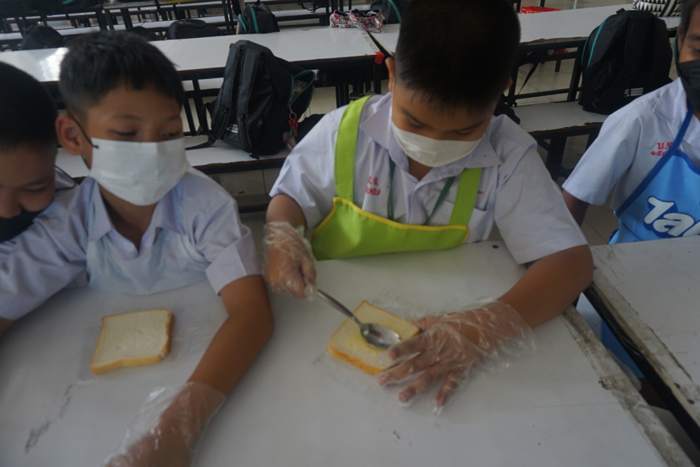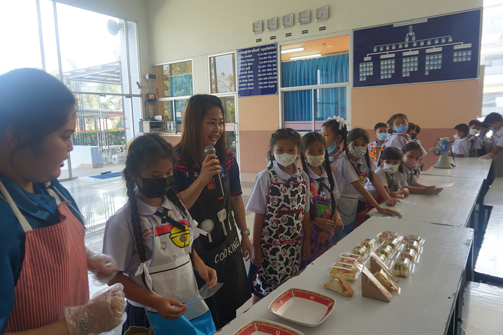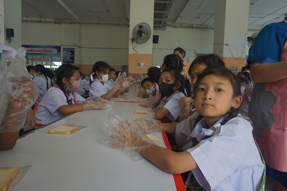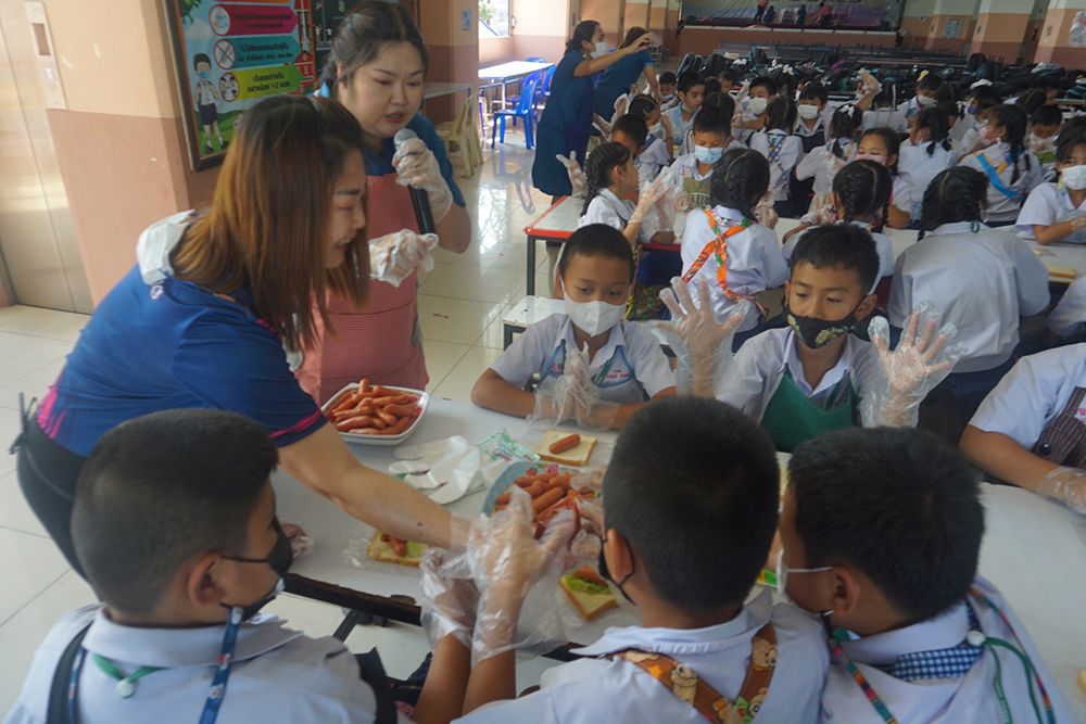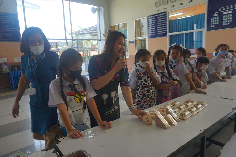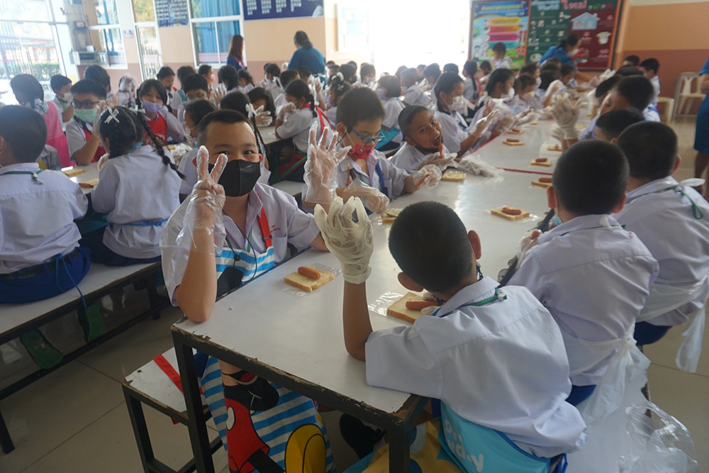 วันศุกร์ที่ 24 กุมภาพันธ์ 2566 กิจกรรมหนึ่งครูหนึ่งวิทยากรการทำแซนวิช นักเรียนชั้นประถมศึกษาที่ 3 การทำแซนวิช ณโรงอาหารอาคาร 50ปี