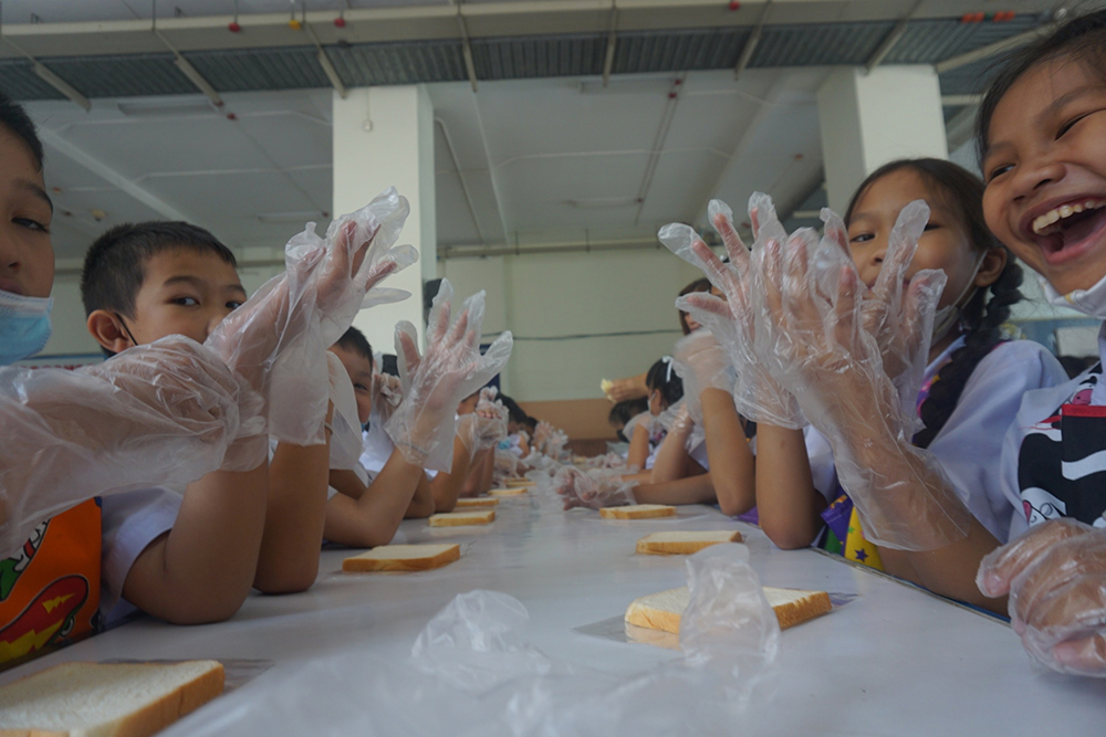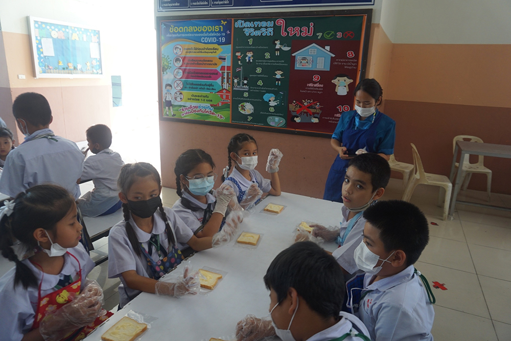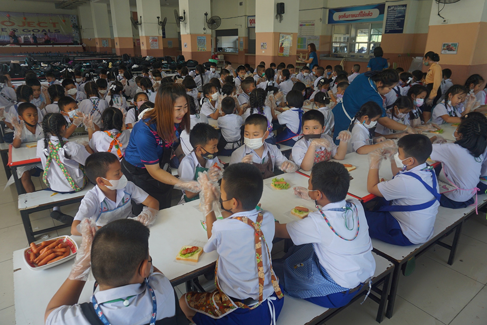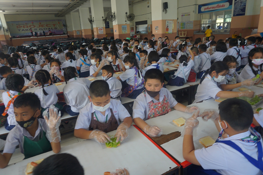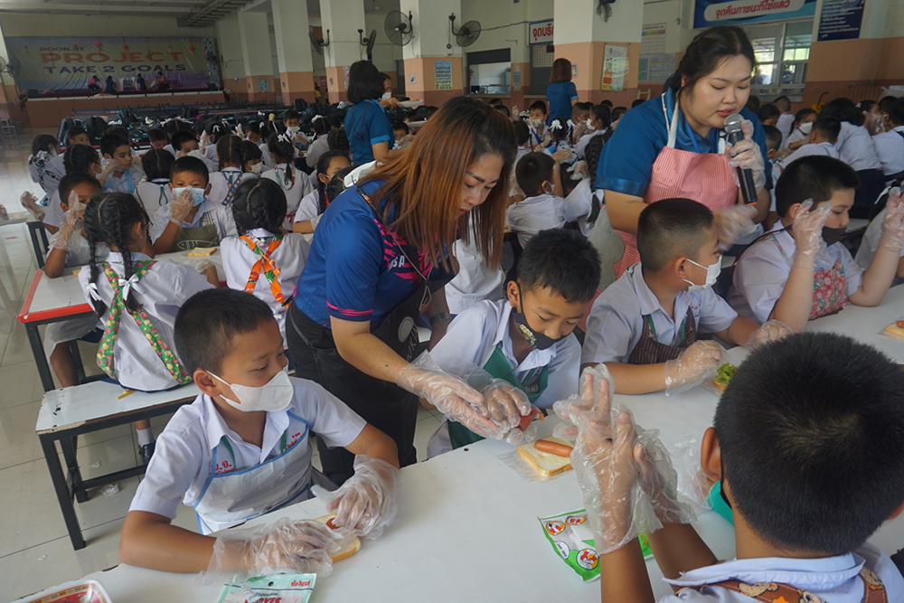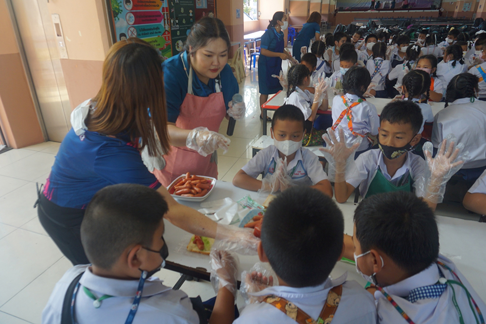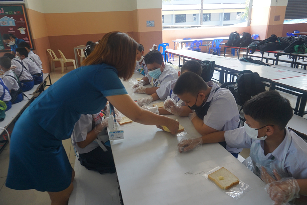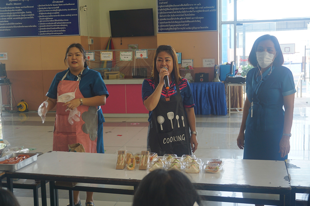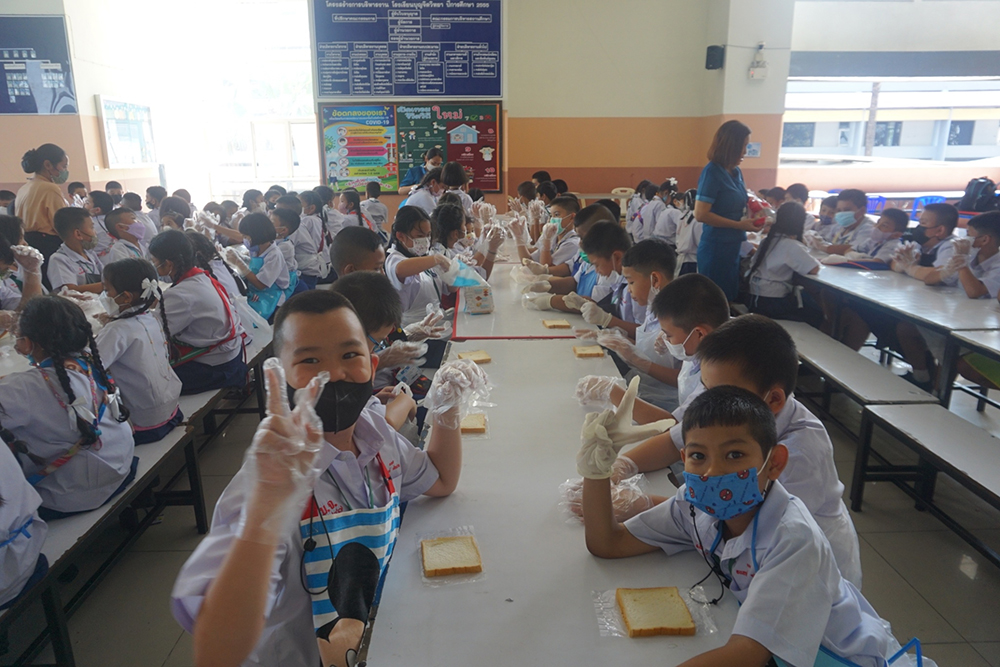วันศุกร์ที่ 24 กุมภาพันธ์ 2566 กิจกรรมหนึ่งครูหนึ่งวิทยากรการทำแซนวิช นักเรียนชั้นประถมศึกษาที่ 3 การทำแซนวิช ณโรงอาหารอาคาร 50ปี
