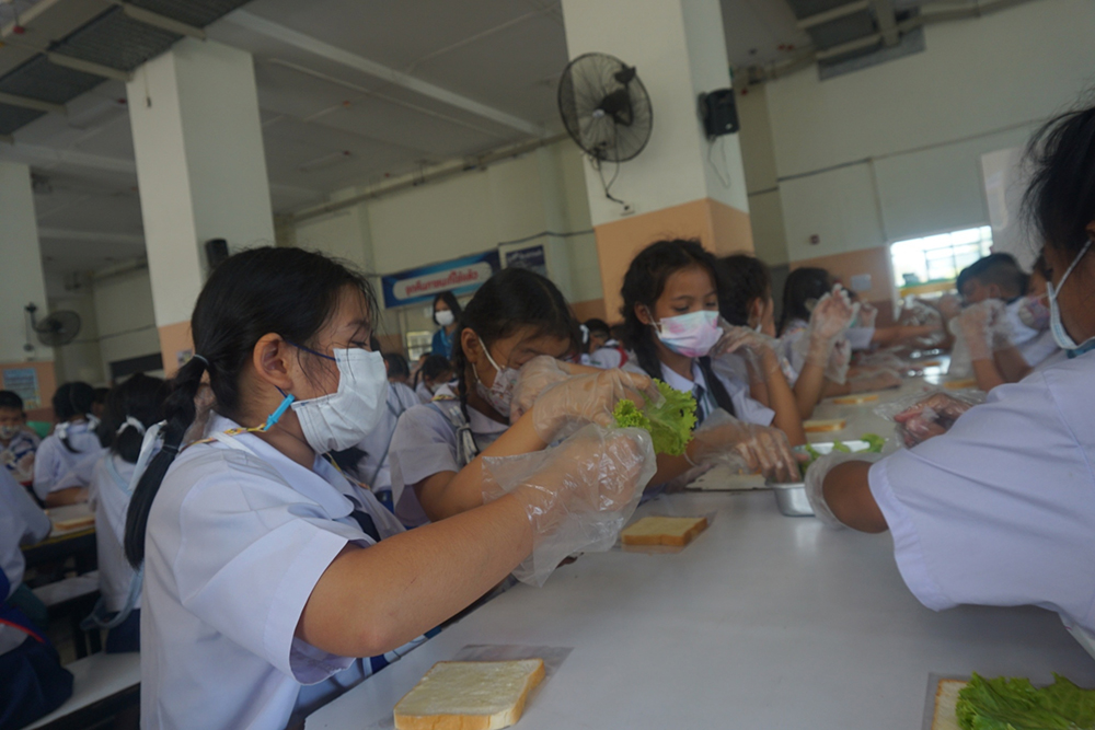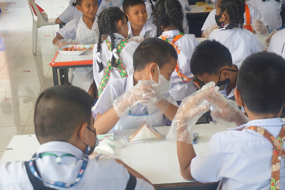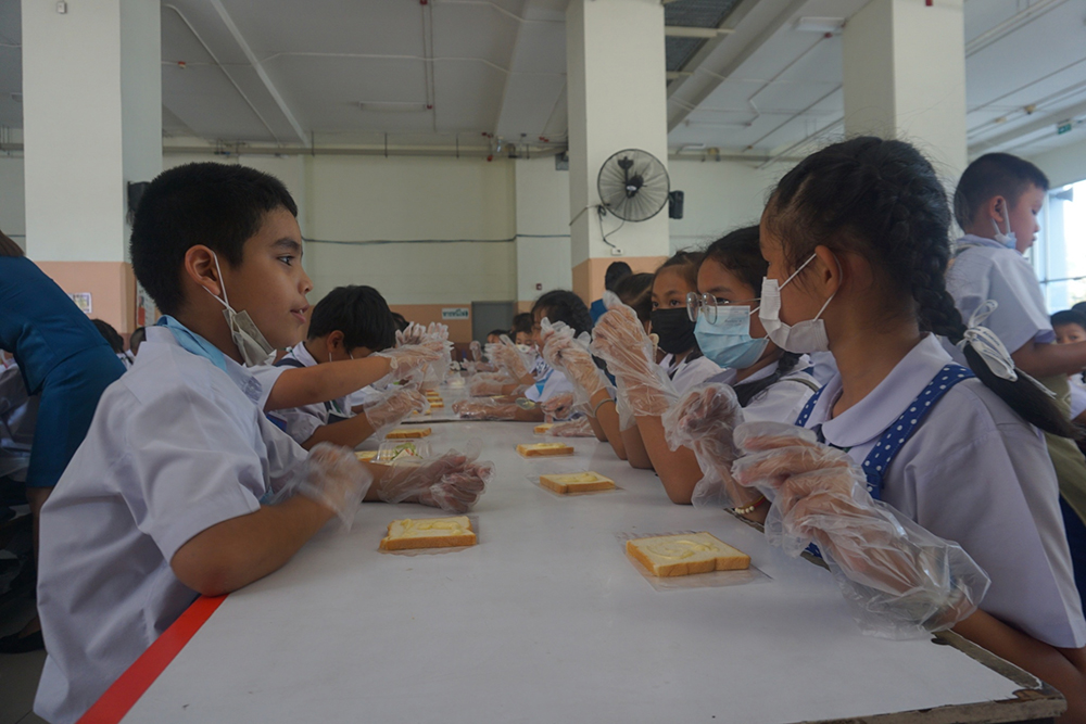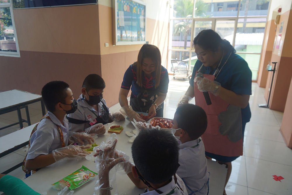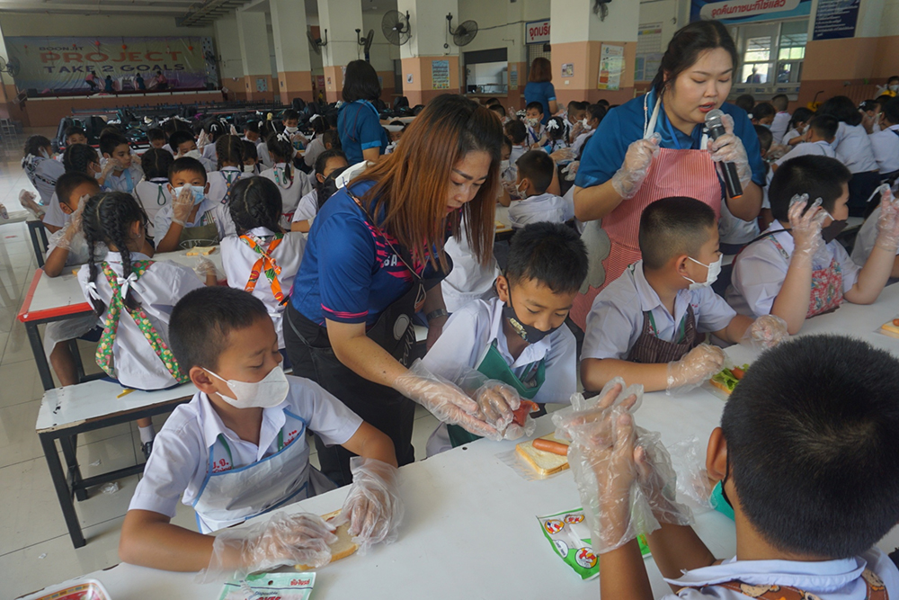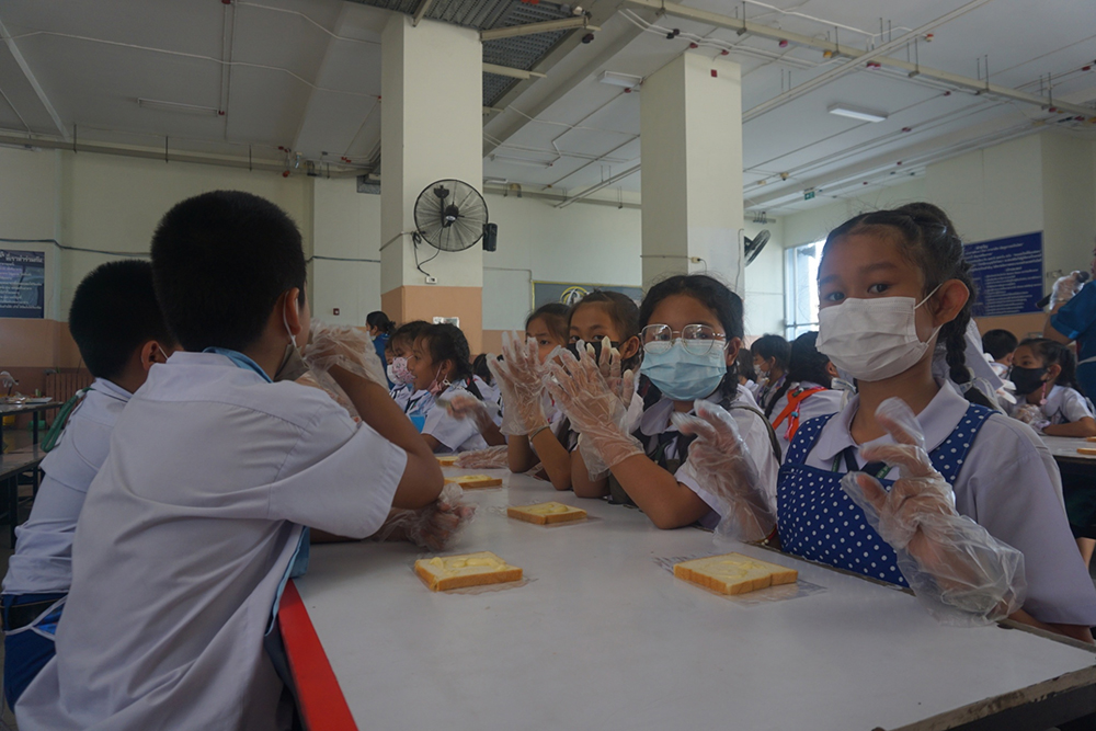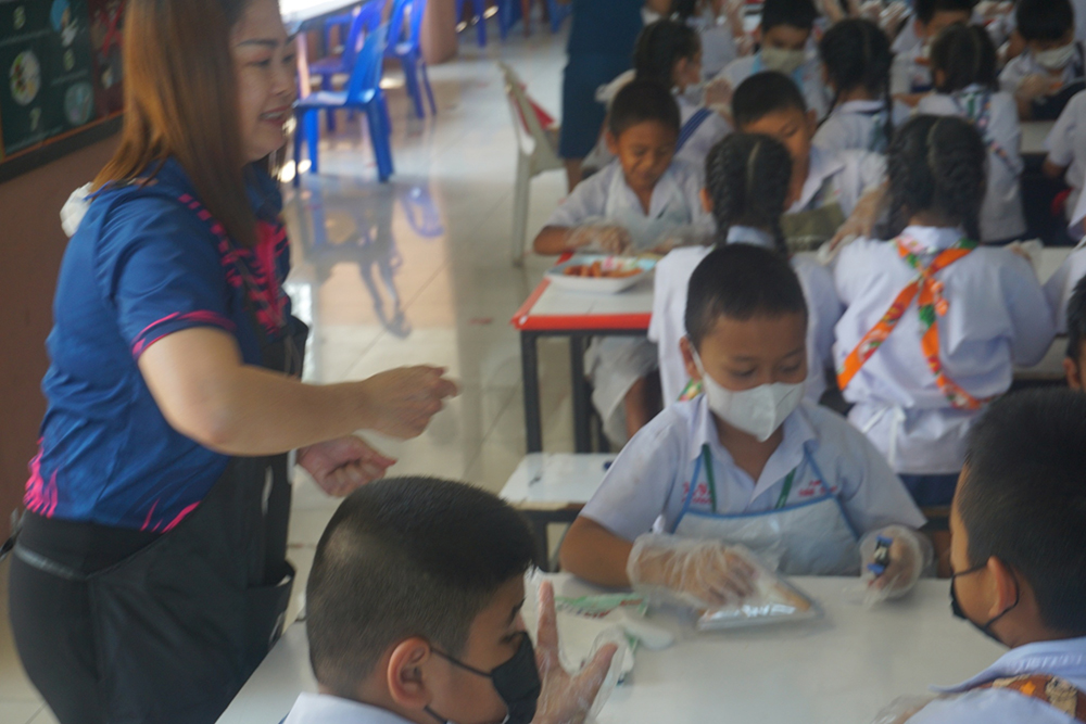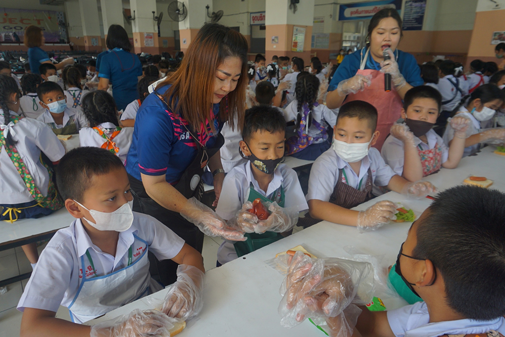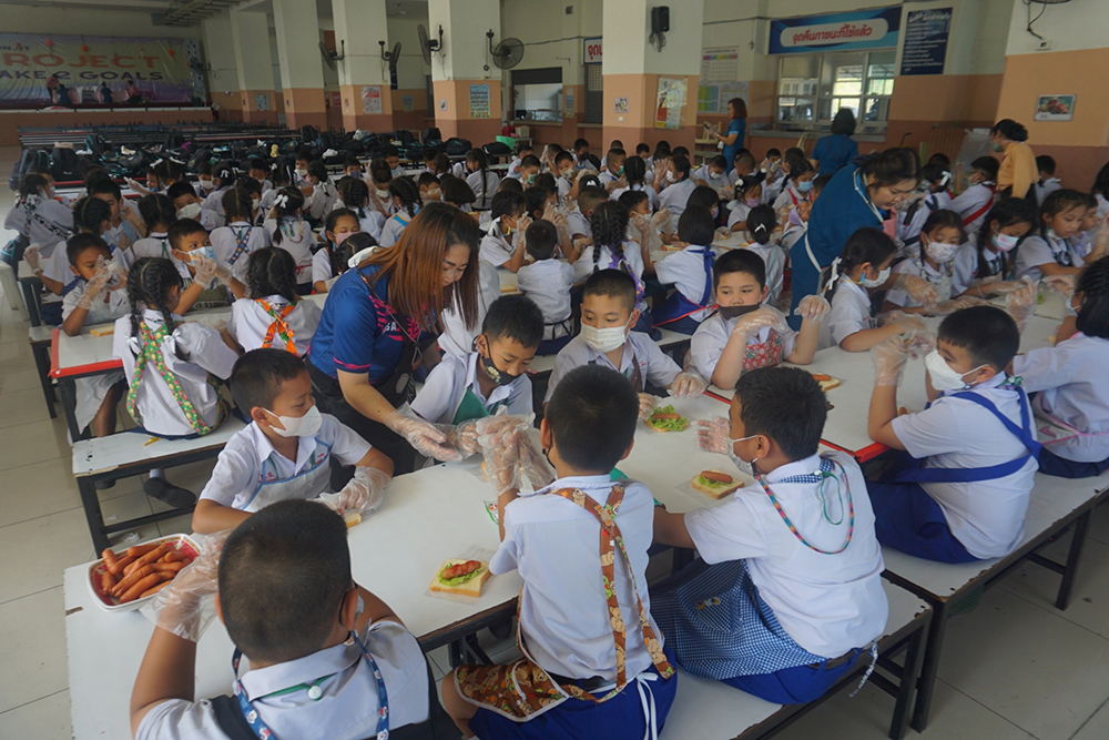 วันศุกร์ที่ 24 กุมภาพันธ์ 2566 กิจกรรมหนึ่งครูหนึ่งวิทยากรการทำแซนวิช นักเรียนชั้นประถมศึกษาที่ 3 การทำแซนวิช ณโรงอาหารอาคาร 50ปี