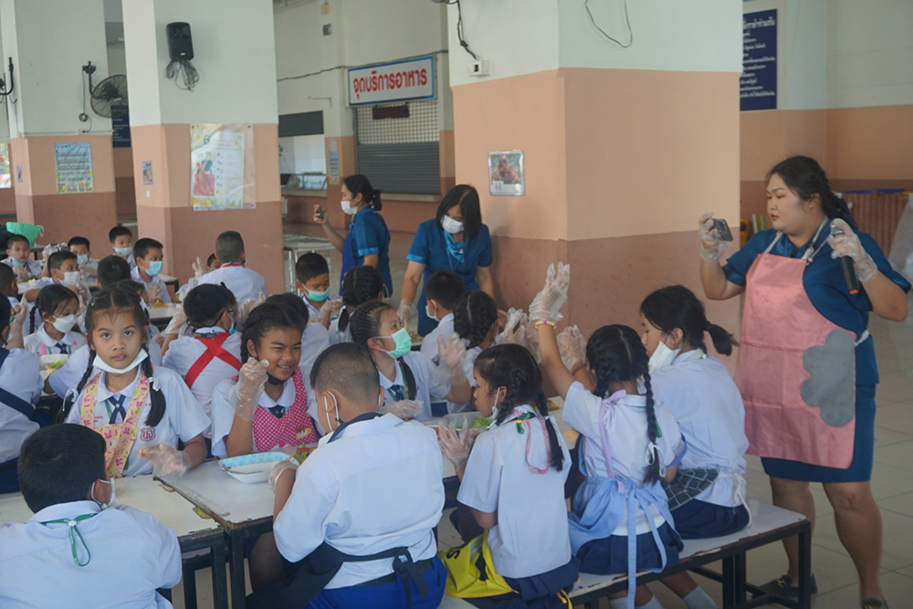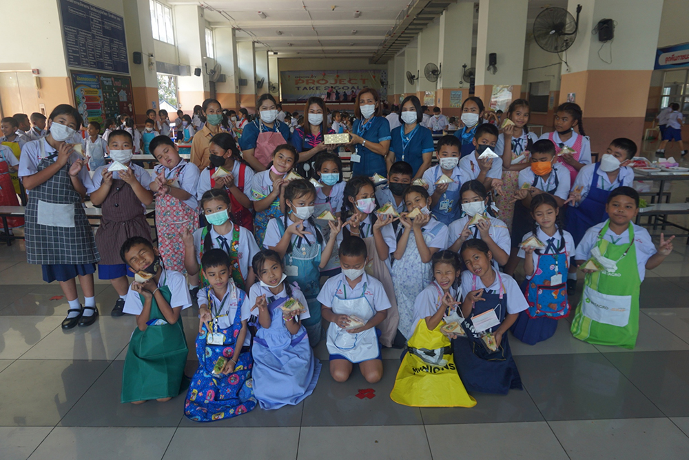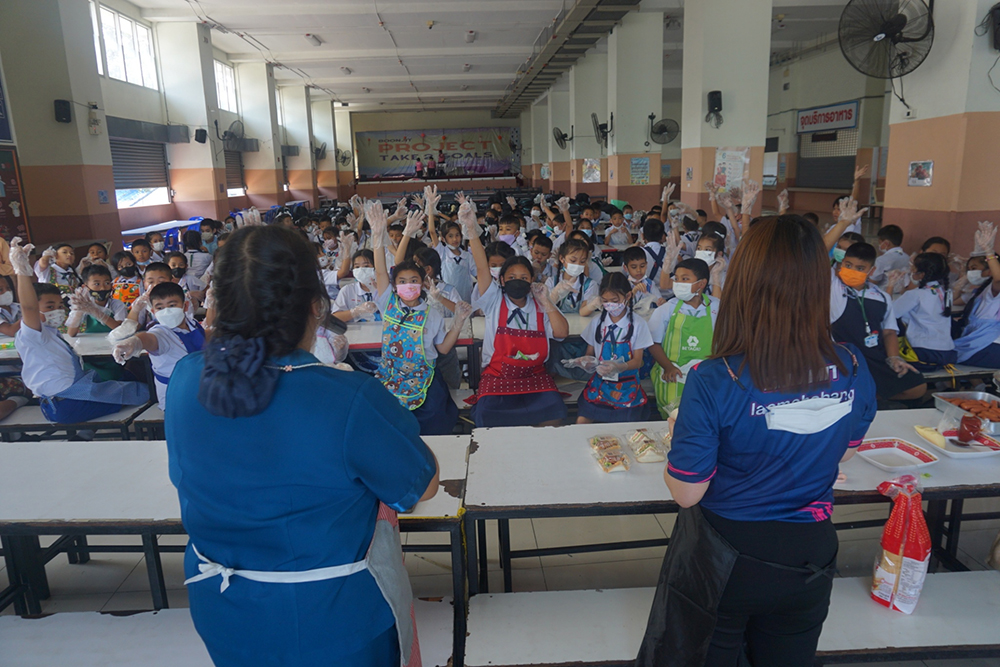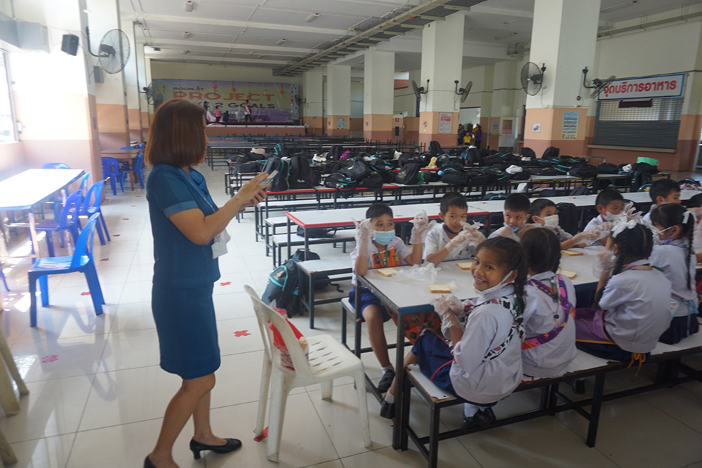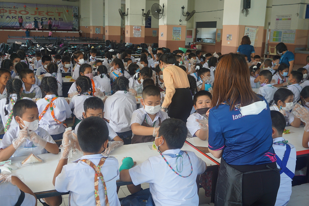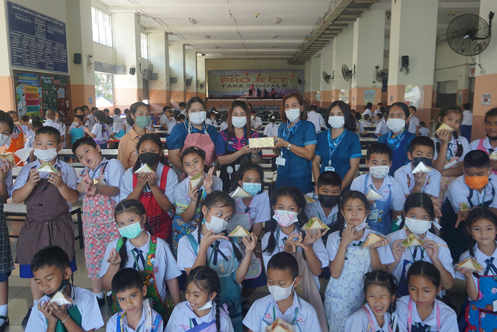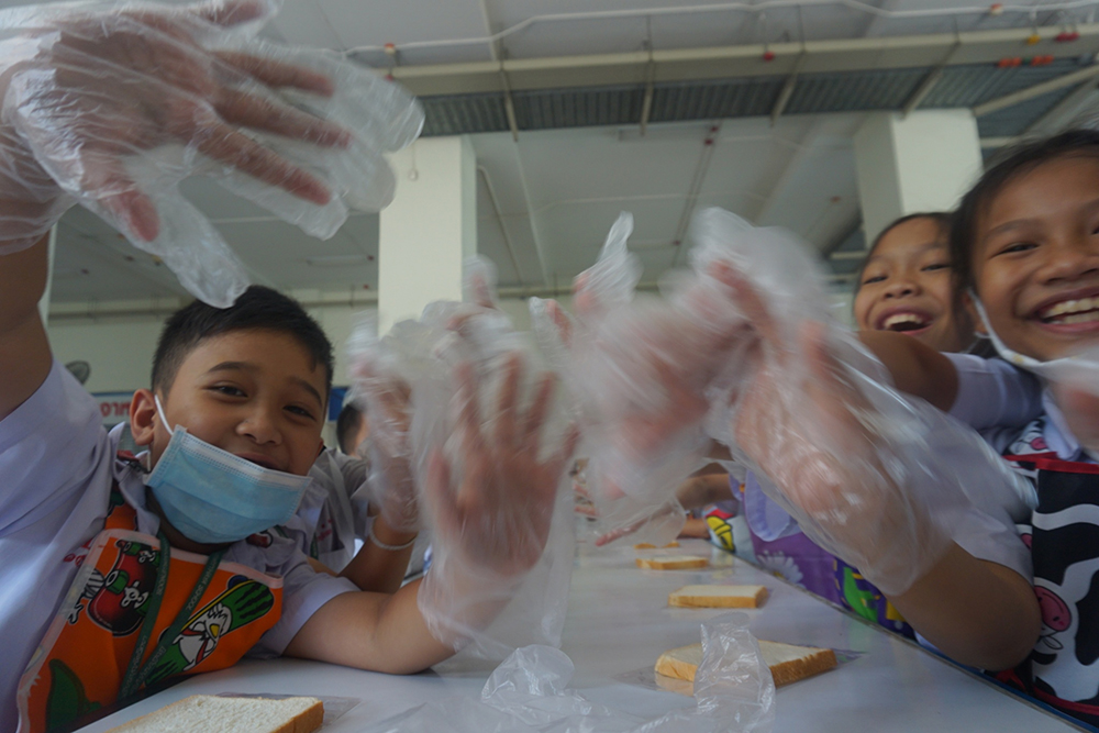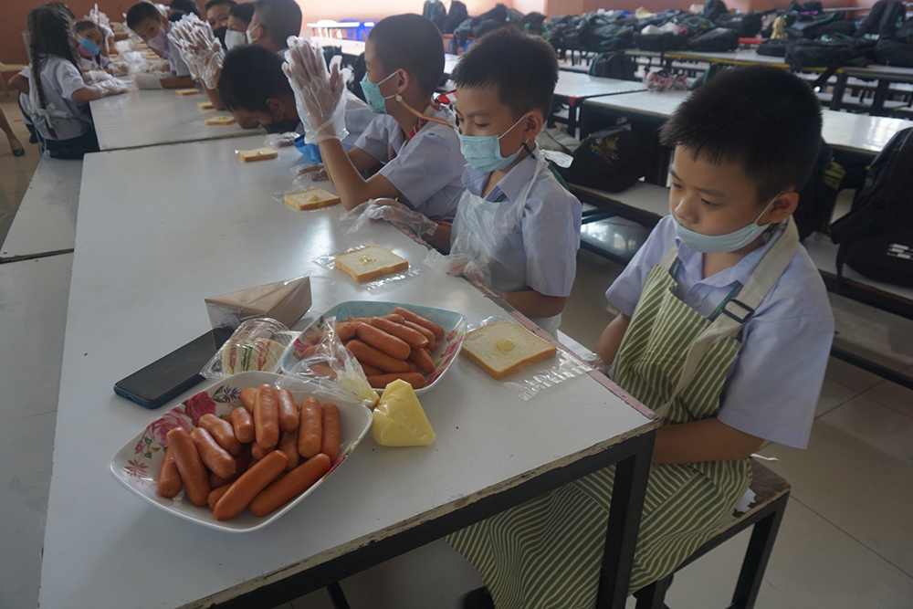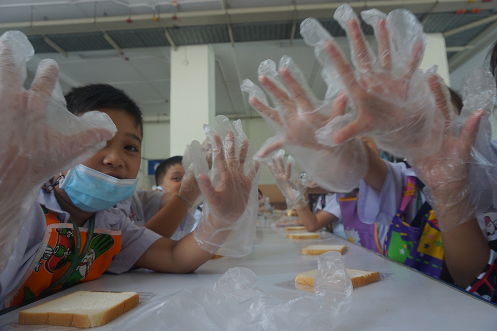 วันศุกร์ที่ 24 กุมภาพันธ์ 2566 กิจกรรมหนึ่งครูหนึ่งวิทยากรการทำแซนวิช นักเรียนชั้นประถมศึกษาที่ 3 การทำแซนวิช ณโรงอาหารอาคาร 50ปี