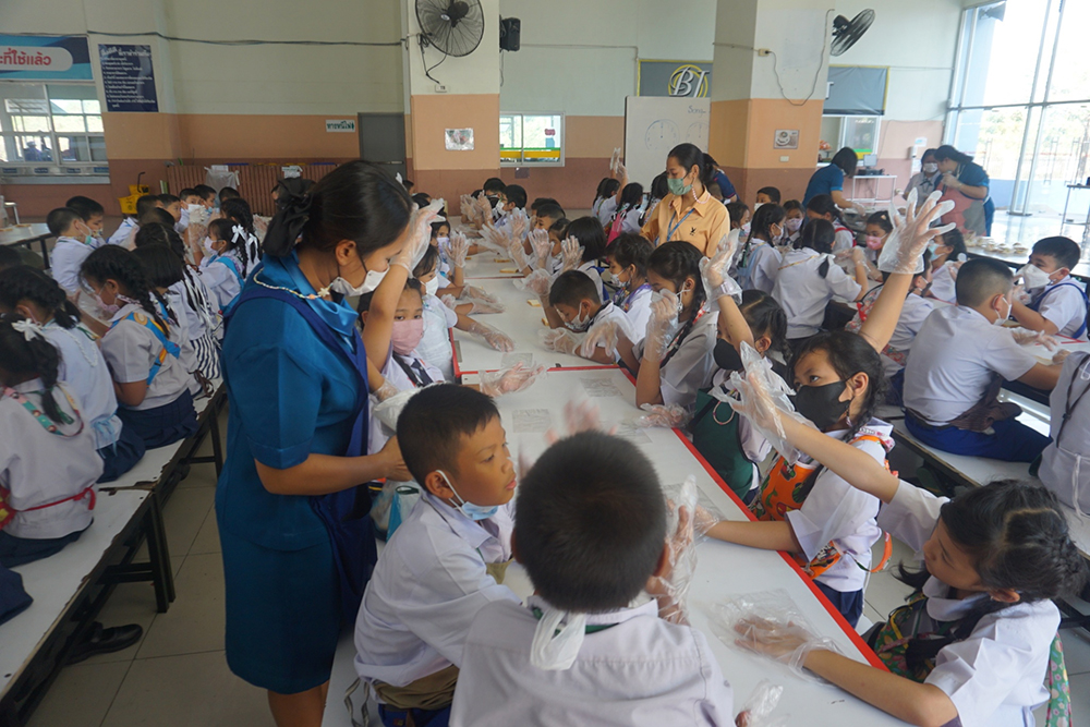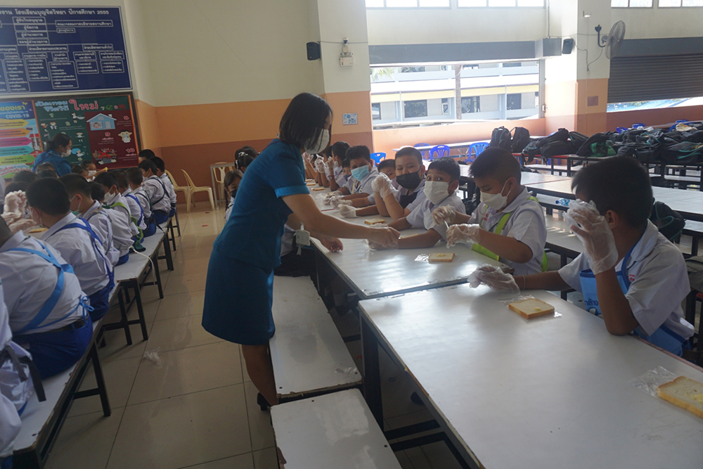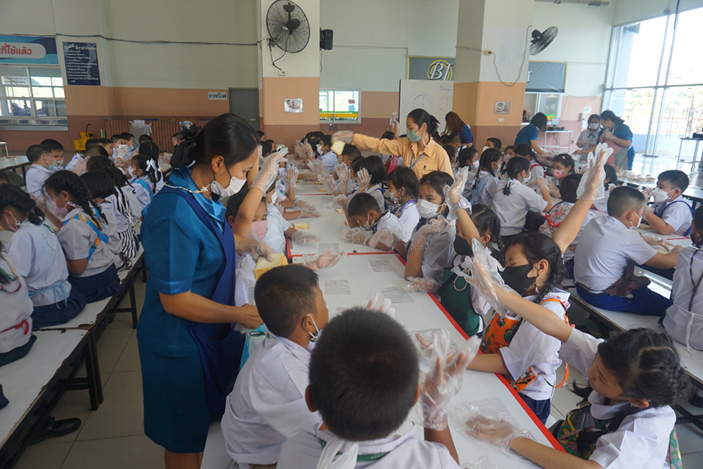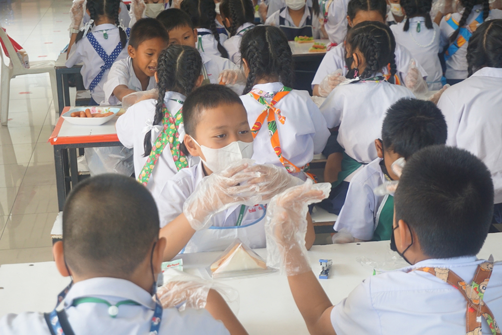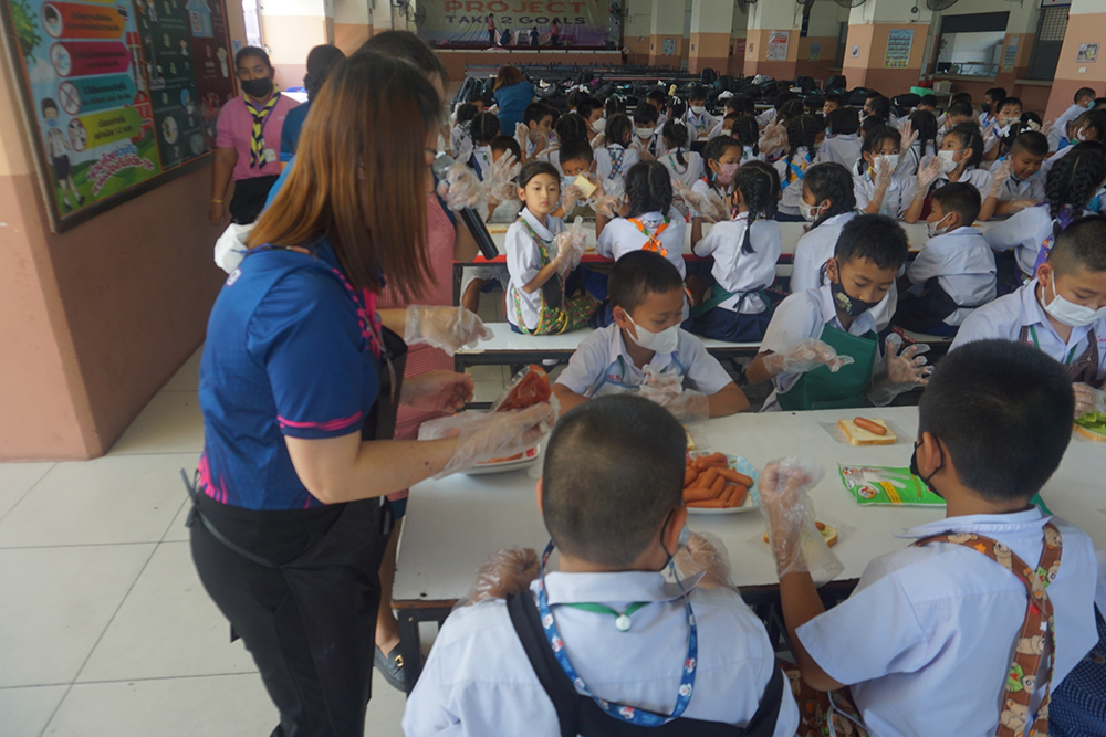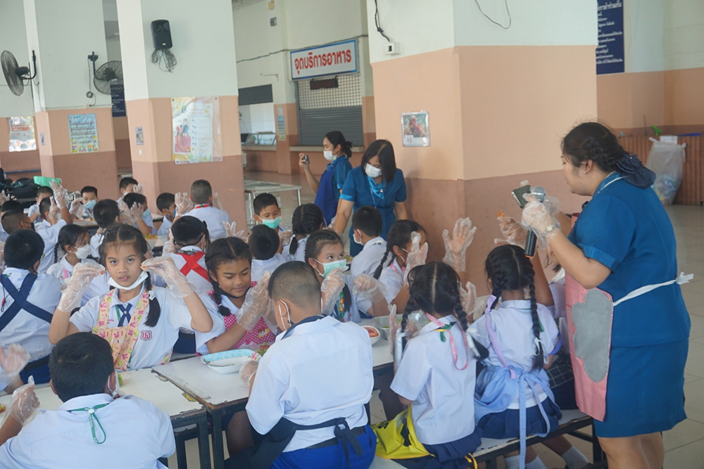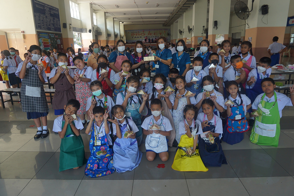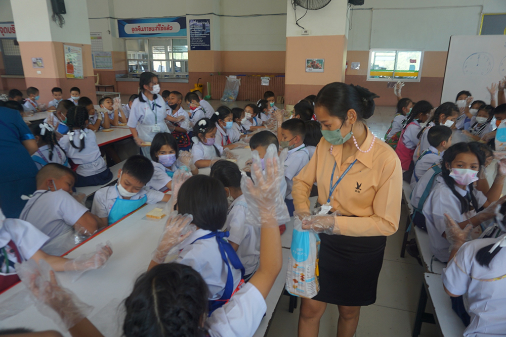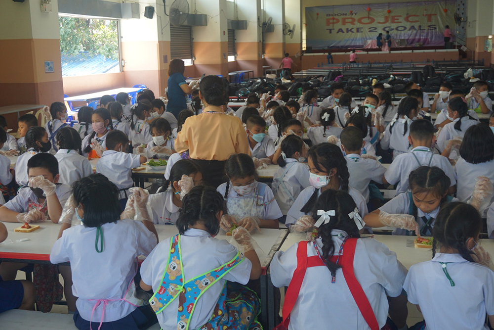 วันศุกร์ที่ 24 กุมภาพันธ์ 2566 กิจกรรมหนึ่งครูหนึ่งวิทยากรการทำแซนวิช นักเรียนชั้นประถมศึกษาที่ 3 การทำแซนวิช ณโรงอาหารอาคาร 50ปี