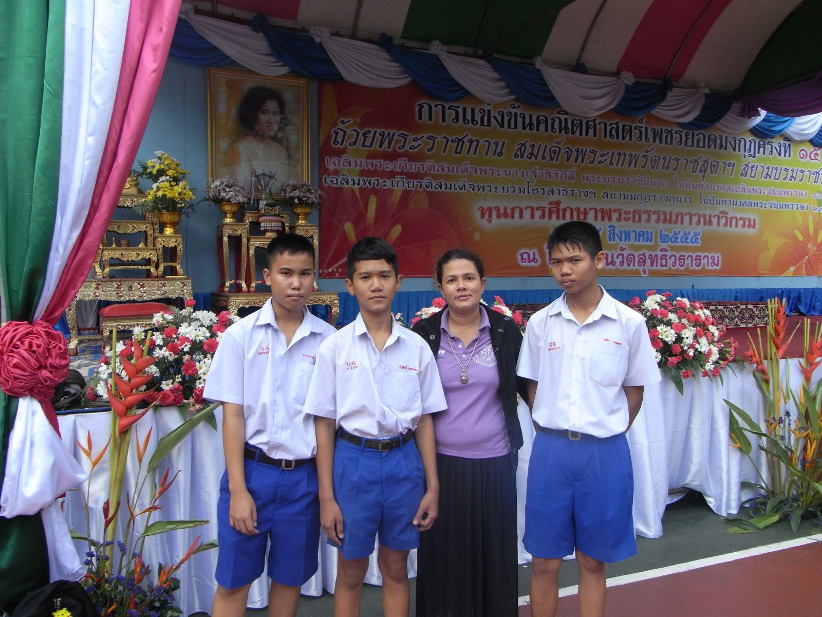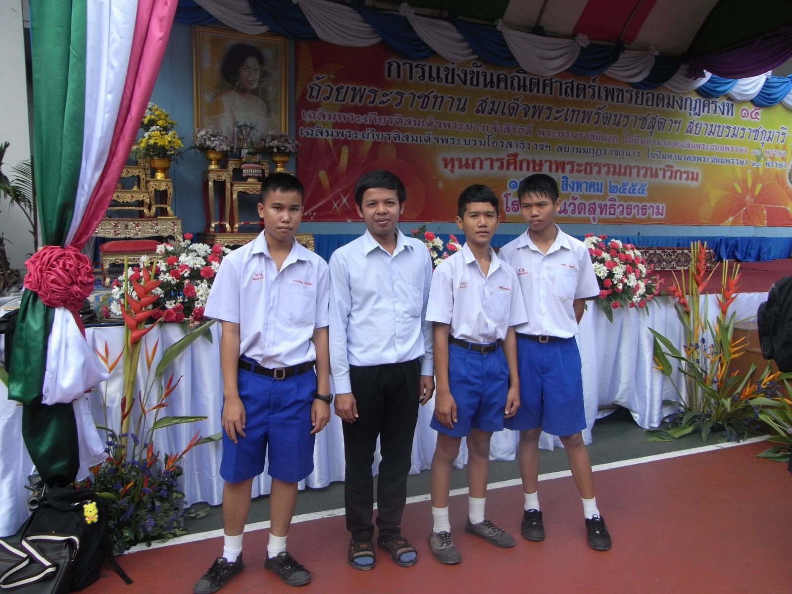 เมื่อวันที่18-19 ส.ค. 55 คุณครูบุญาภา ปาลกะวงศ์ ฯลฯ รองผู้อำนวยการฝ่ายวิชาการ คุณครูสุมาลี วิลุนดก และคุณครูธีรศักดิ์ ช้างแสง นำนักเรียร่วมแข่งขันทักษะวิชาคณิตศาสตร์ รายการคณิตศาสตร์เพชรยอดมงกุฎ ณ โรงเรีนวัดสุทธิวราราม กรุงเทพฯ...ภาพ/ข่าวโดยสนธยา