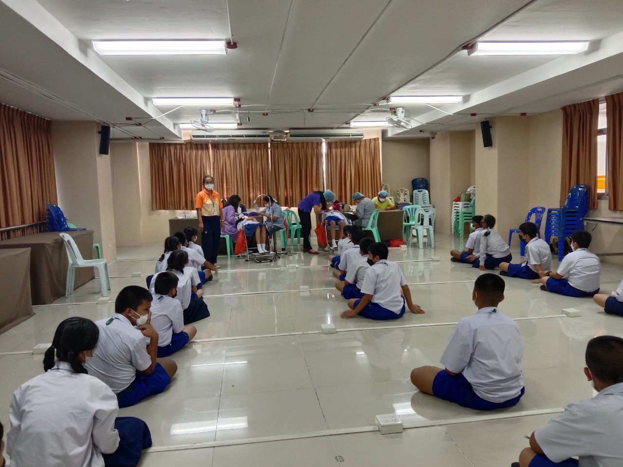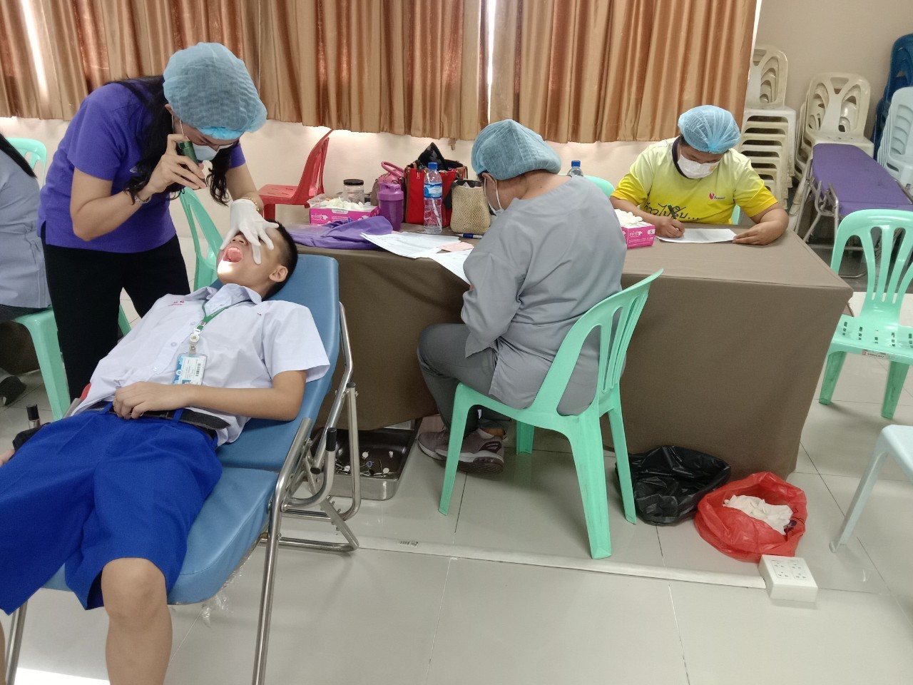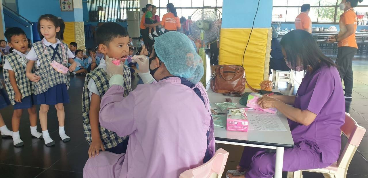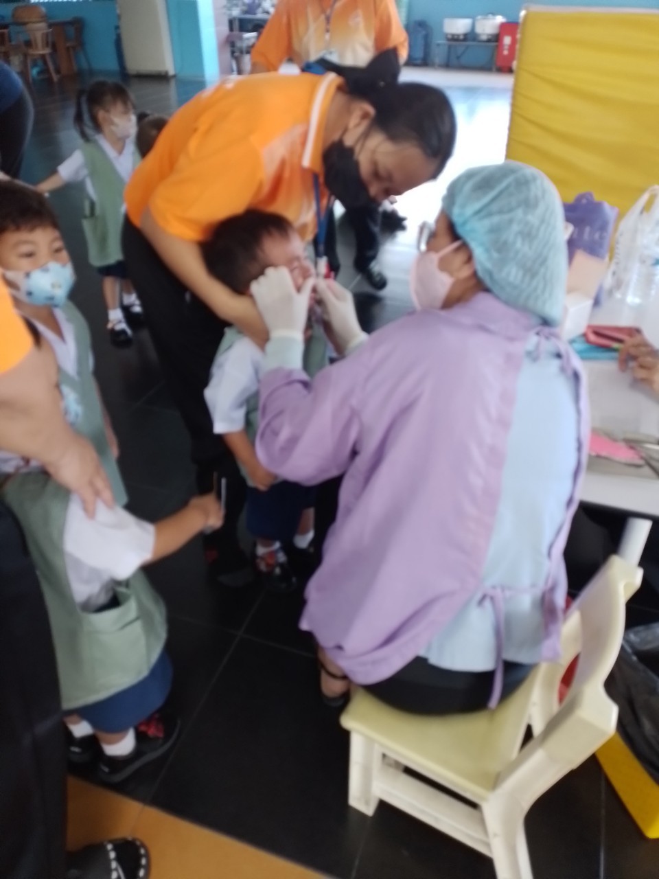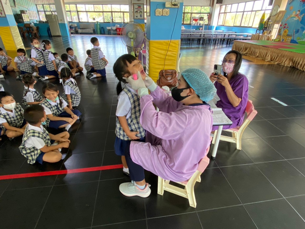วันพฤหัสบดีที่ 8 มิถุนายน 2566 นักเรียนประถมศึกษาปีที่ 1-6 ตรวจสุขภาพฟัน นักเรียนชั้นอนุบาล 1-3 เคลือบสารฟลูออไรด์ จากเจ้าหน้าที่จากโรงพยาบาลแหลมฉบัง ณ อาคาร 50 ปี และ อาคารเลิศปัญญา