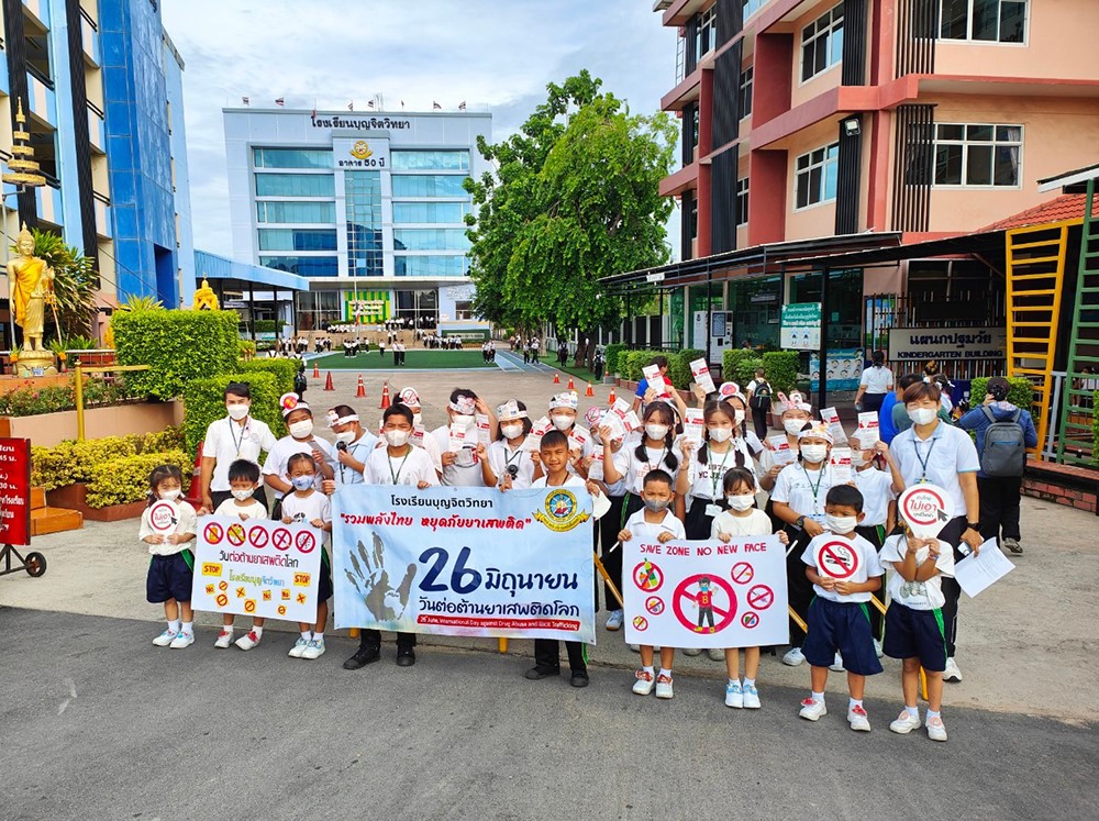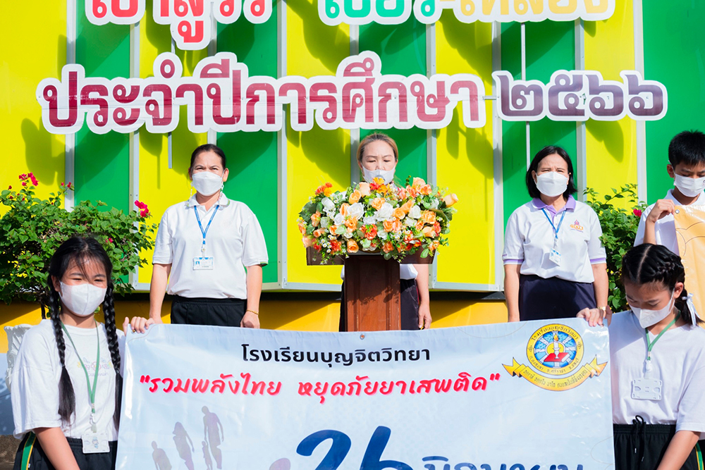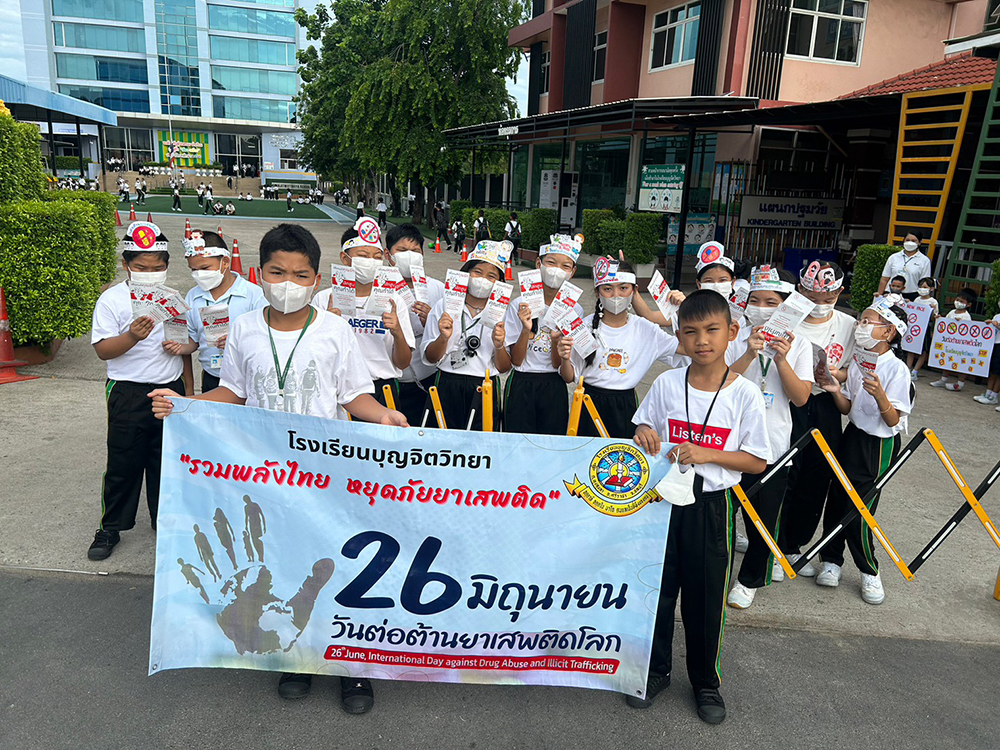 ผู้บริหาร คณะครูและนักเรียนเข้าร่วมกิจกรรมวันต่อต้านยาเสพติด