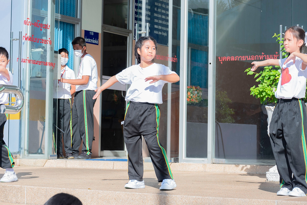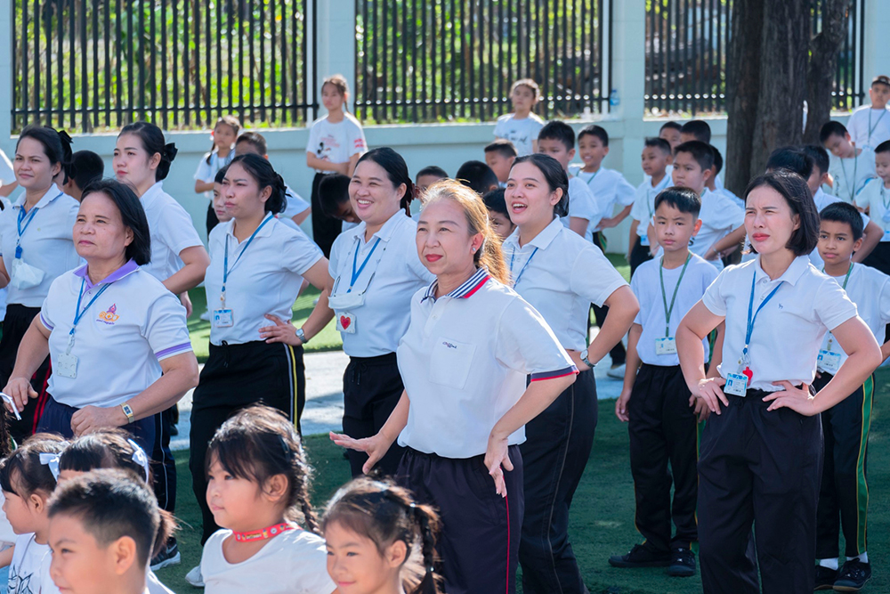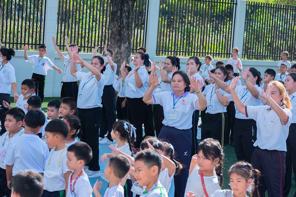 และเต้นออกกำลังกายร่วมกัน ณ หน้าอาคาร 50 ปี