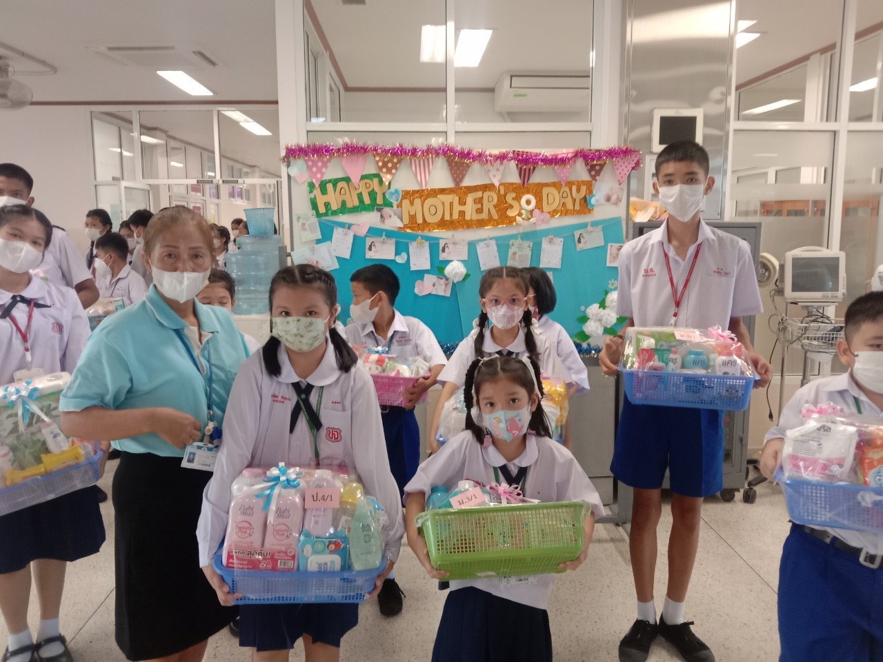 กิจกรรมแบ่งปันรอยยิ้ม เนื่องในโอกาส วันเฉลิมพระชนมพรรษา สมเด็จพระนางเจ้าสิริกิติ์ พระบรมราชินีนาถ พระบรมราชชนนีพันปีหลวง และเป็นวันแม่แห่งชาติ โรงเรียนบุญจิตวิทยาและสมาคมศิษย์เก่า ครู ผูปกคอรง ได้นำนักเรียนตัวแทนตั้งแต่ระดับชั้นอนุบาลถึงมัธยมศึกษาปีที่ 3 เป็นตัวแทนมอบกระเช้าคุณแม่แรกคลอด ณ โรงพยาบาลแหลมฉบัง