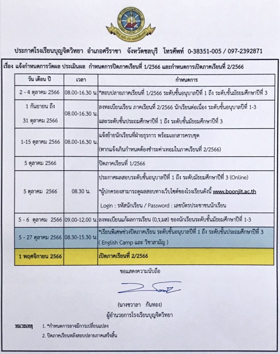 กำหนดการสอบวัดผล และประเมินผลการเรียนทุกระดับชั้น และกำหนดการปิดภาคเรียนที่ 1/2566