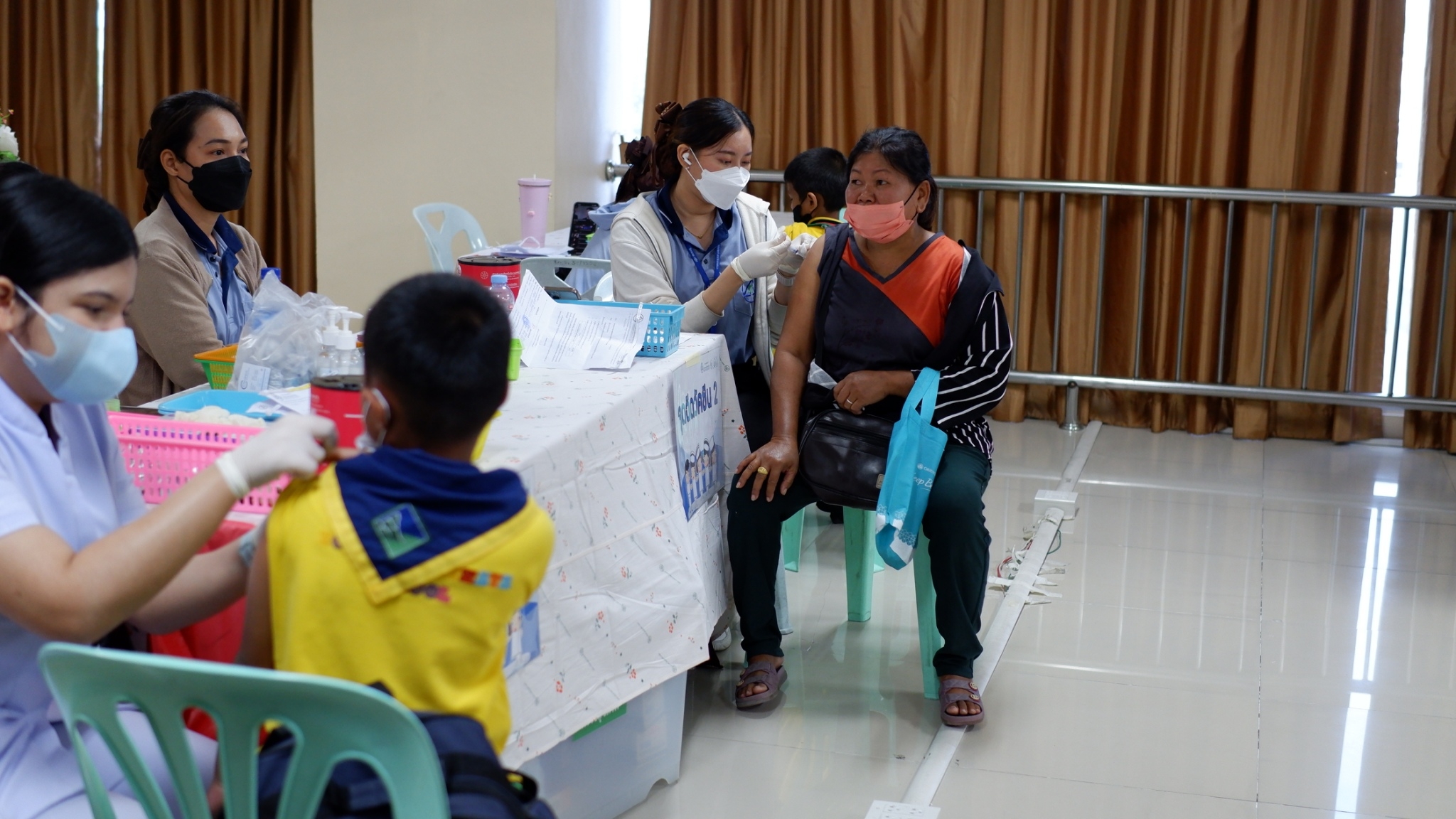 เจ้าหน้าที่จากโรงพยาบาลวิภาราม ฉีดวัคซีนไข้หวัดใหญ่