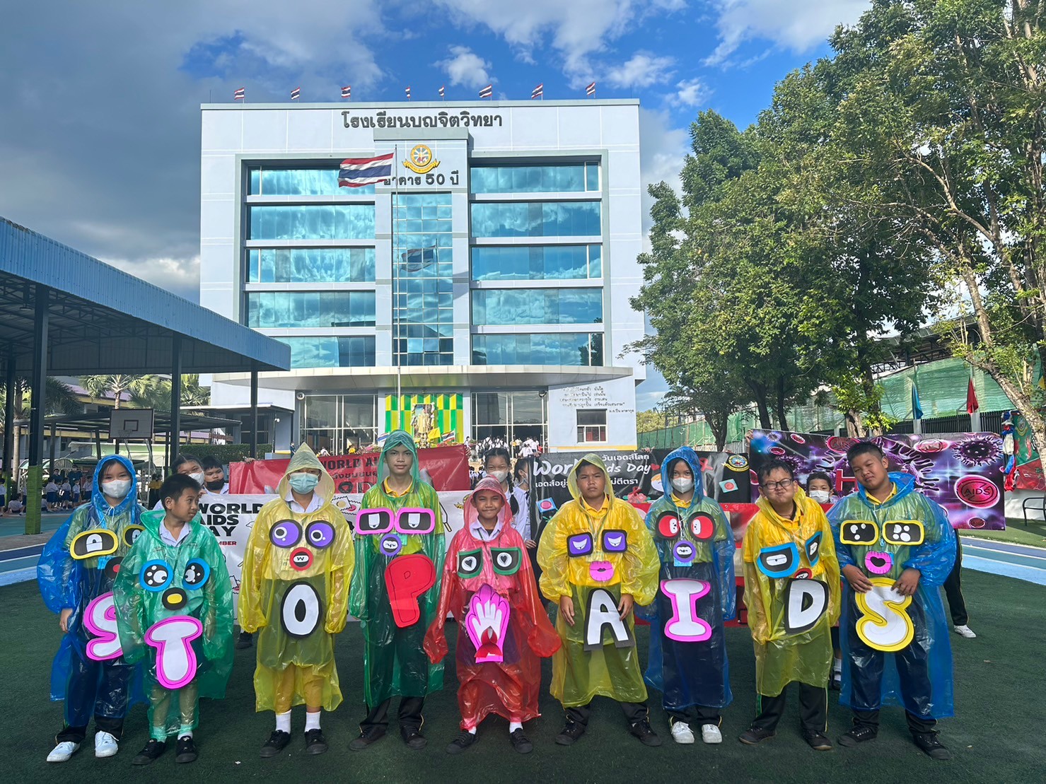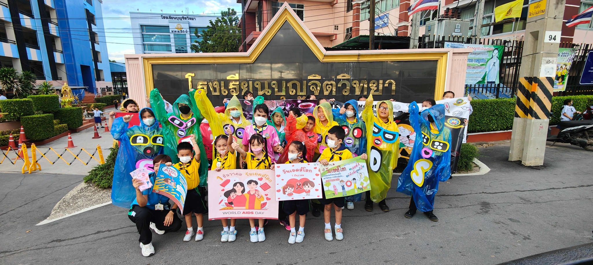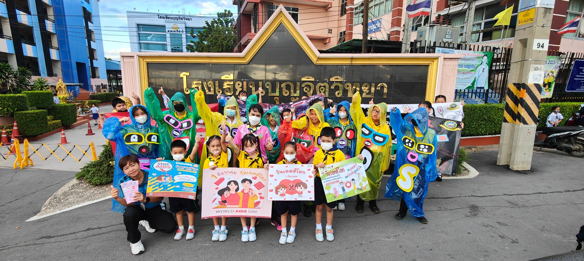 วันที่ 1 ธันวาคม ของทุกปี เป็นวันเอดส์โลก (world AIDS Day) ซึ่งทางโรงเรียนบุญจิตวิทยา ได้ร่วมรณรงค์สร้างความเข้าใจที่ถูกต้องเกี่ยวกับเอดส์ ให้ทุกคนมีความรู้และตระหนักถึงการป้องกันดูแลตนเอง มีการจัดบอร์ดให้ความรู้เกี่ยวกับเอดส์ การแข่งขันตอบปัญหาความรู้ในเรื่องโรคเอดส์ แจกแผ่นพับให้ความรู้แก่ผู้ปกครองและนักเรียน