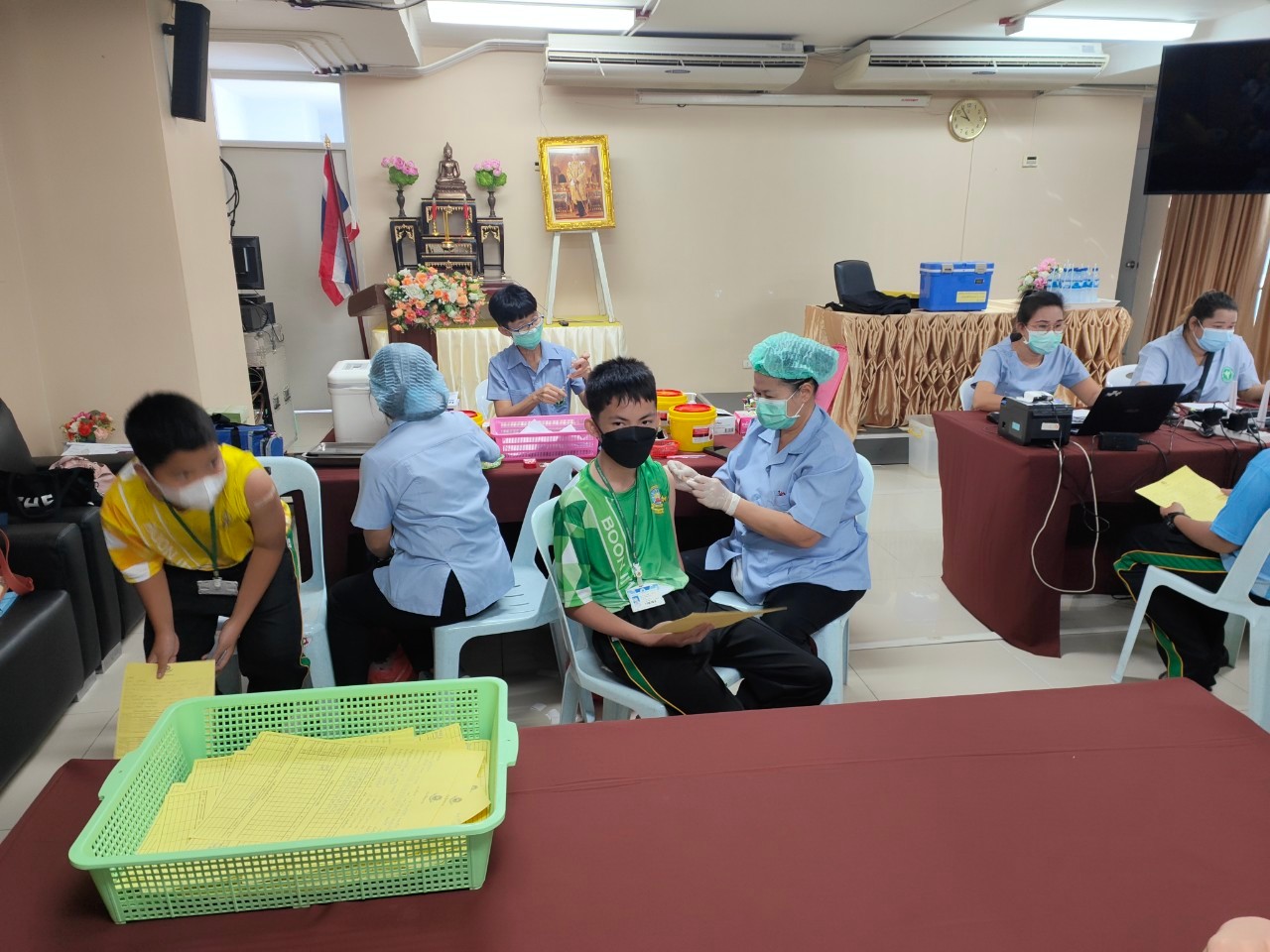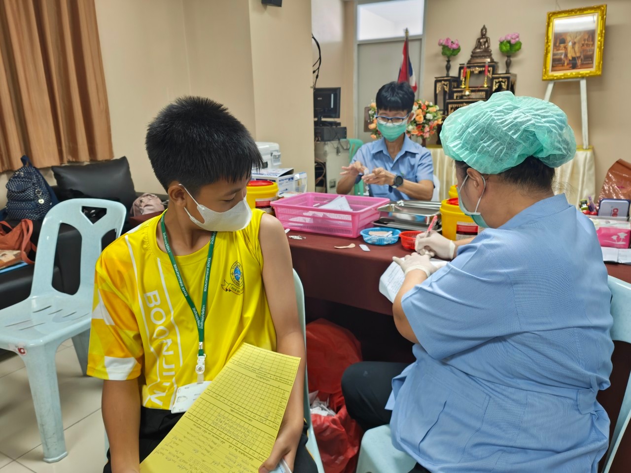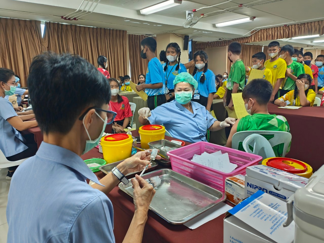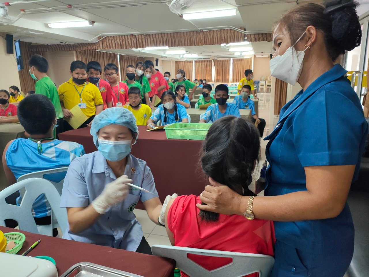 วันศุกร์ที่ 8 สิงหาคม 2566 เจ้าหน้าที่ รพ.แหลมฉบัง มาฉีดวัคซีนป้องกันโรคบาดทะยักและโรคคอตีบ ในนักเรียนระดับชั้นประถมศึกษาปีที่ 1 และ ปีที่ 6 ณ ห้องประชุมชั้น 4 อาคาร 50 ปี
