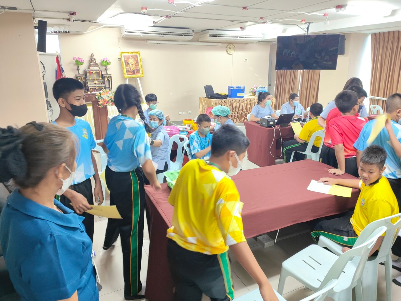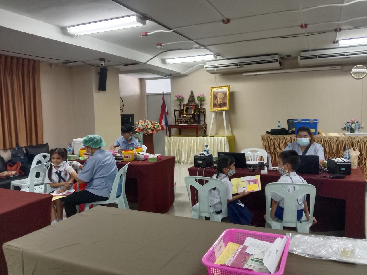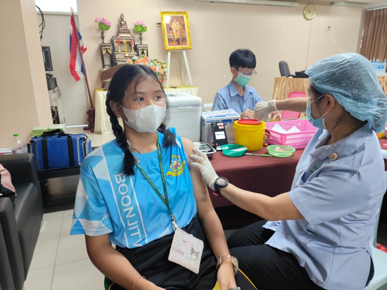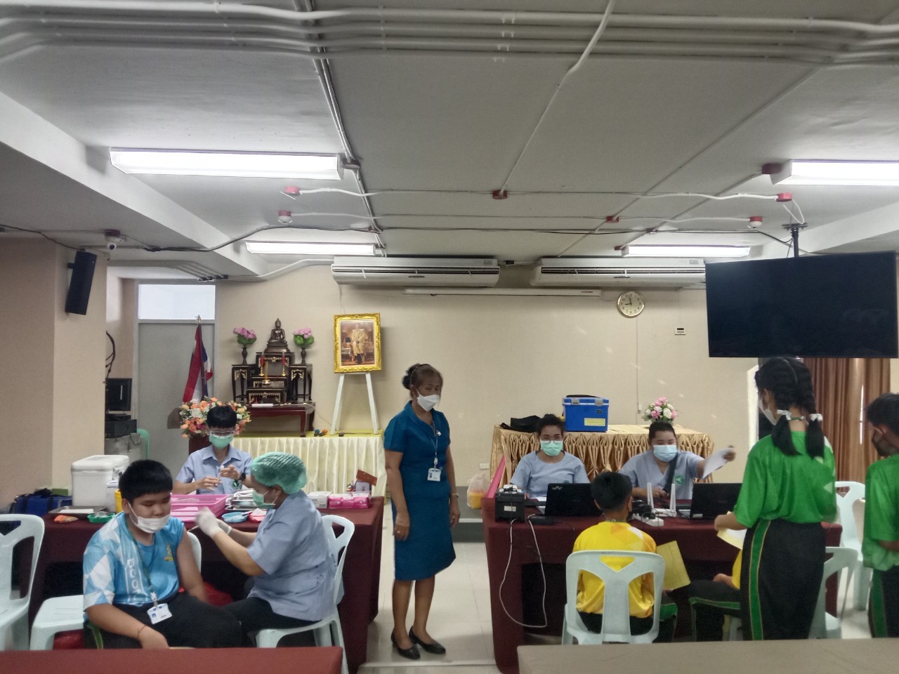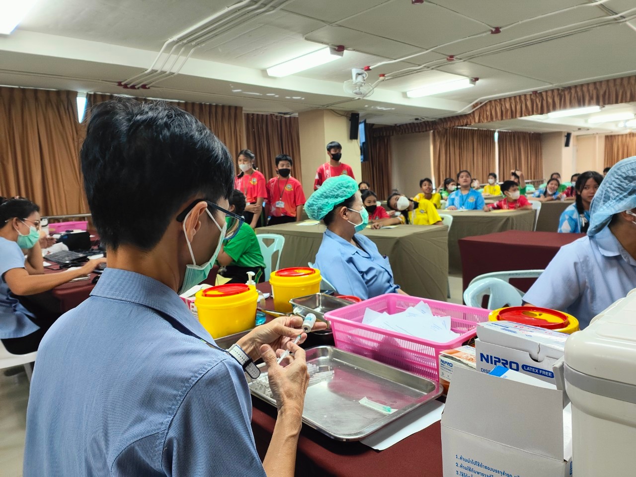 วันศุกร์ที่ 8 สิงหาคม 2566 เจ้าหน้าที่ รพ.แหลมฉบัง มาฉีดวัคซีนป้องกันโรคบาดทะยักและโรคคอตีบ ในนักเรียนระดับชั้นประถมศึกษาปีที่ 1 และ ปีที่ 6 ณ ห้องประชุมชั้น 4 อาคาร 50 ปี