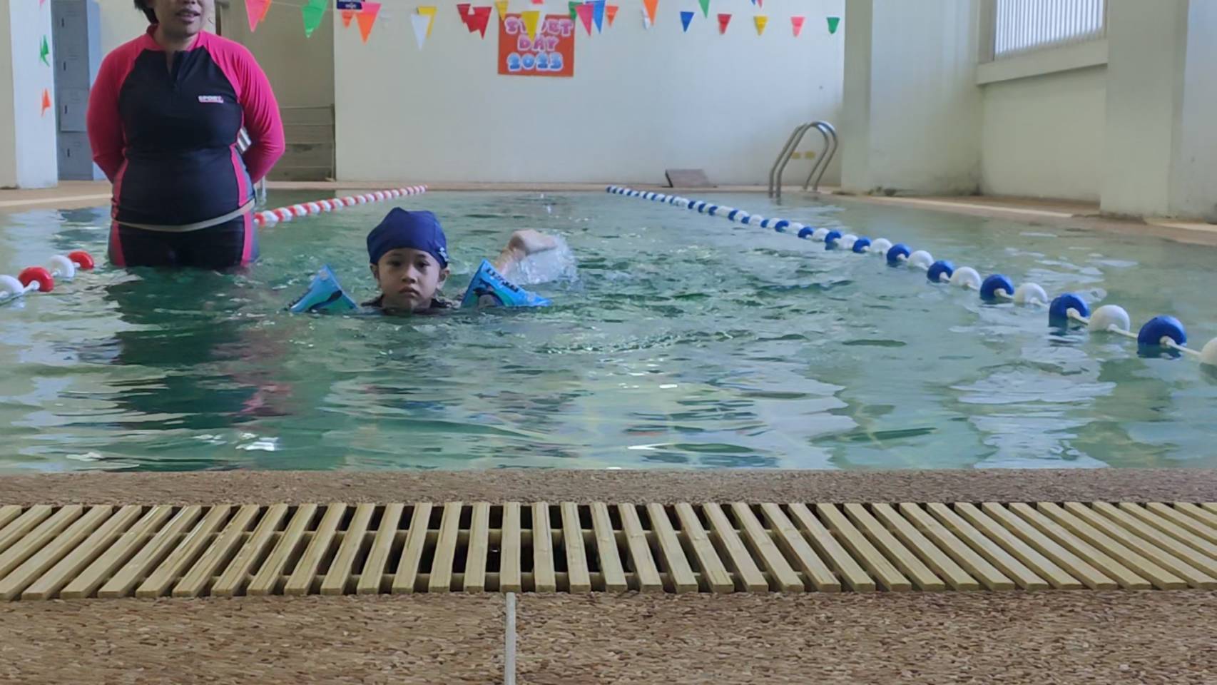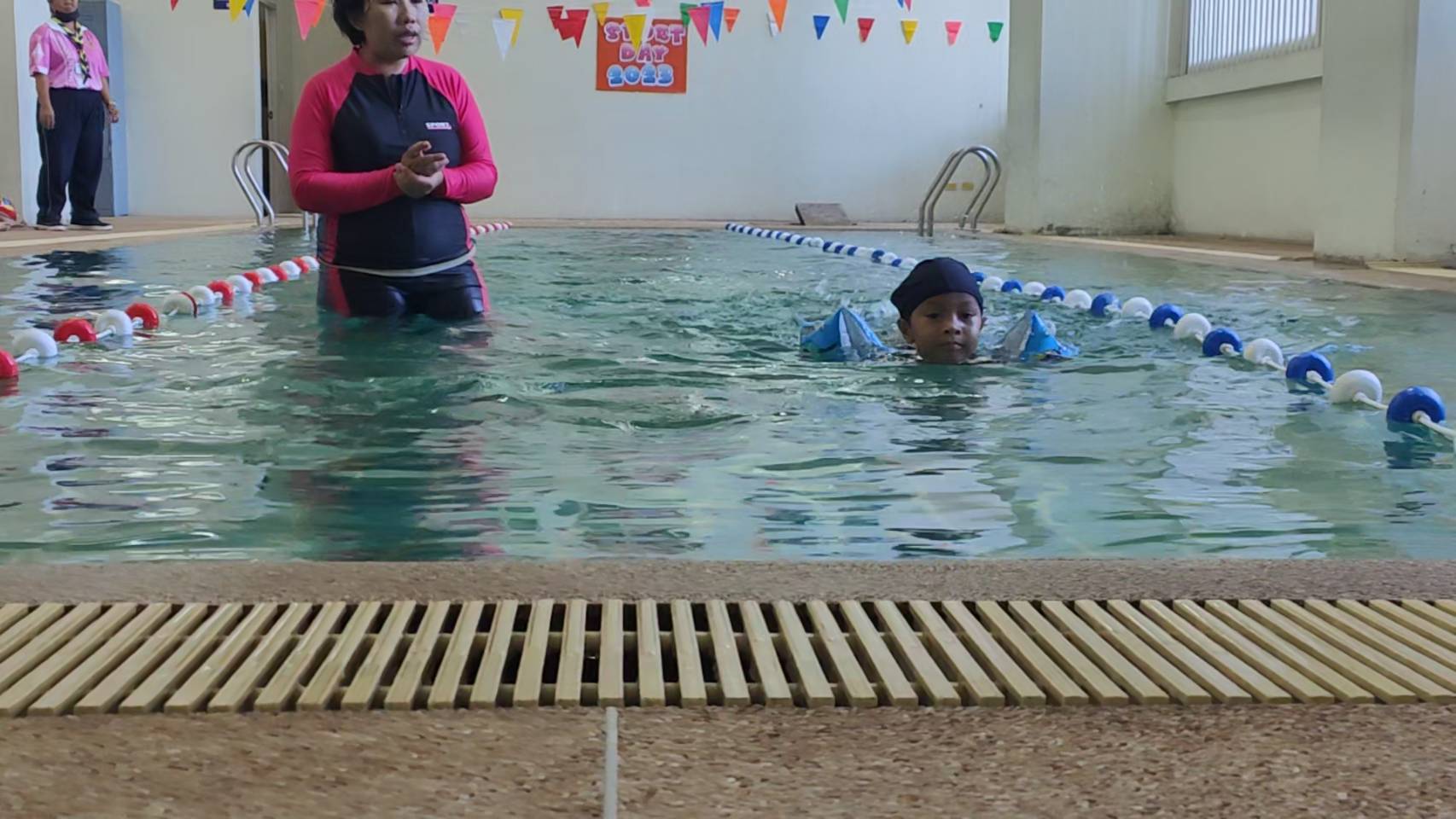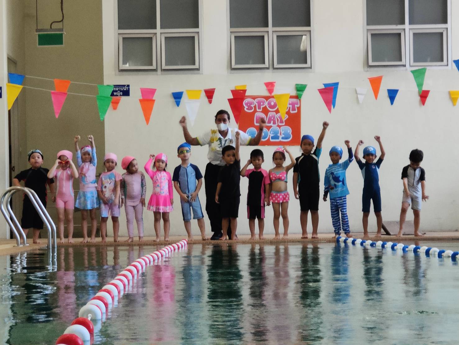 นักเรียนระดับชั้นอนุบาล 1-3ร่วมกันแข่งขันกีฬาว่ายน้ำ ประเภทหญิงเดี่ยวและชายเดี่ยว ณ สระว่ายน้ำ อาคาร 50 ปี