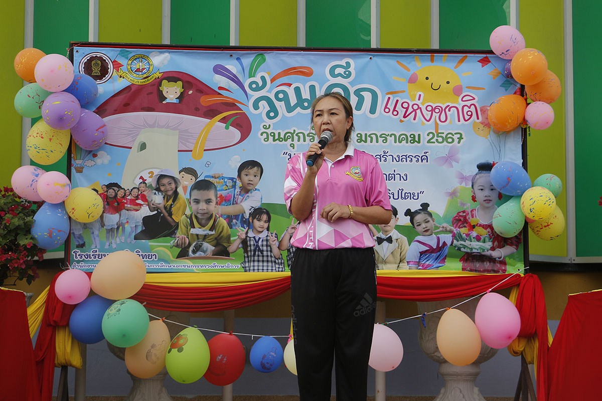 นางชวาลา กันทอง ผู้อำนวยการโรงเรียน เป็นประธานในการอ่านสารวันเด็กจากนายกรัฐมนตรี การจัดกิจกรรมในครั้งนี้