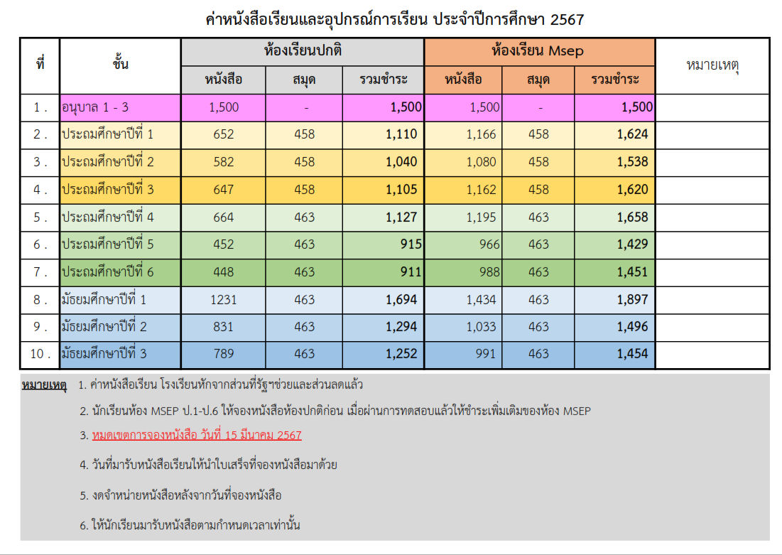 ค่าหนังสือเรียนและอุปกรณ์การเรียน ประจำปี 2567