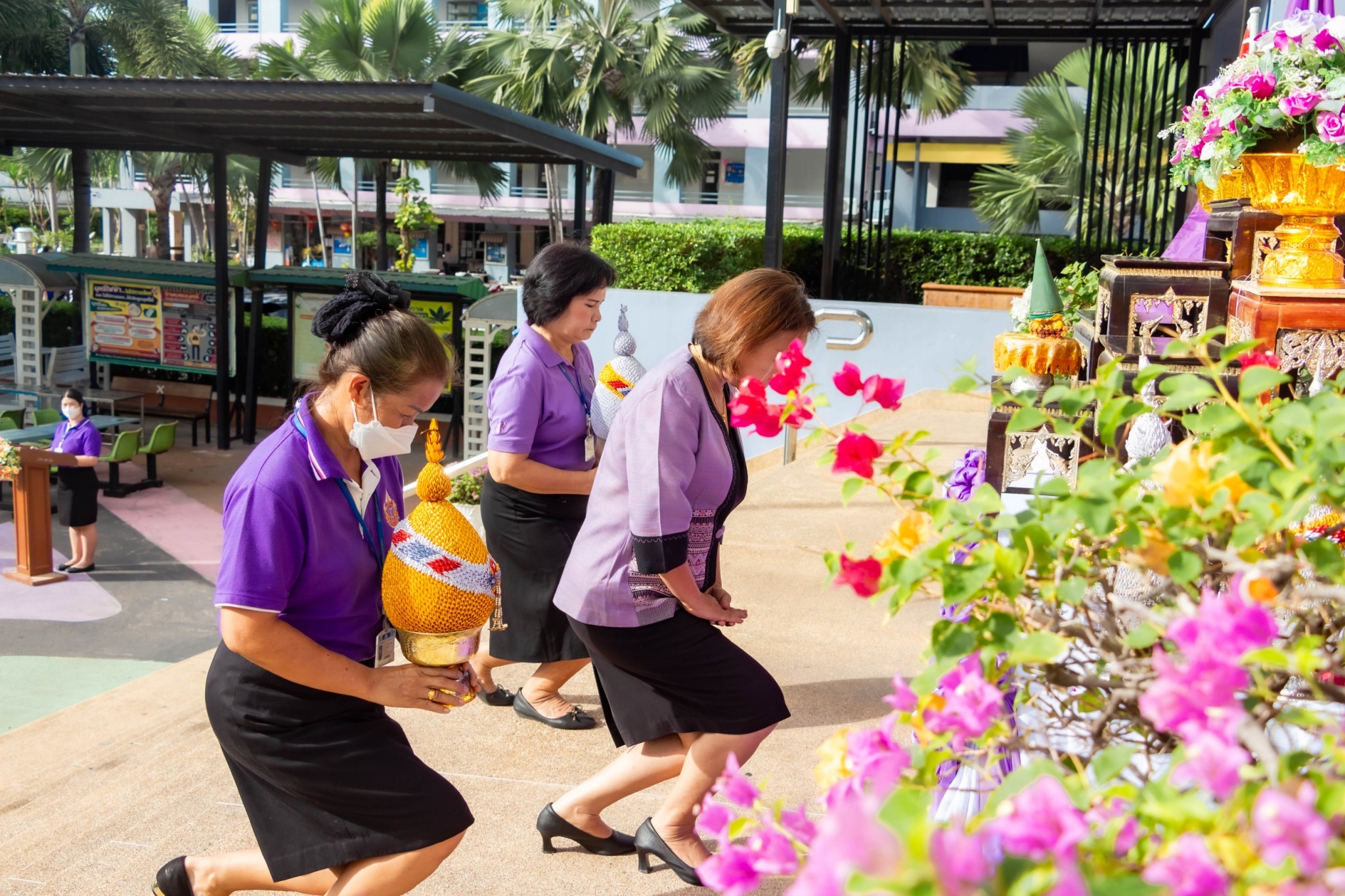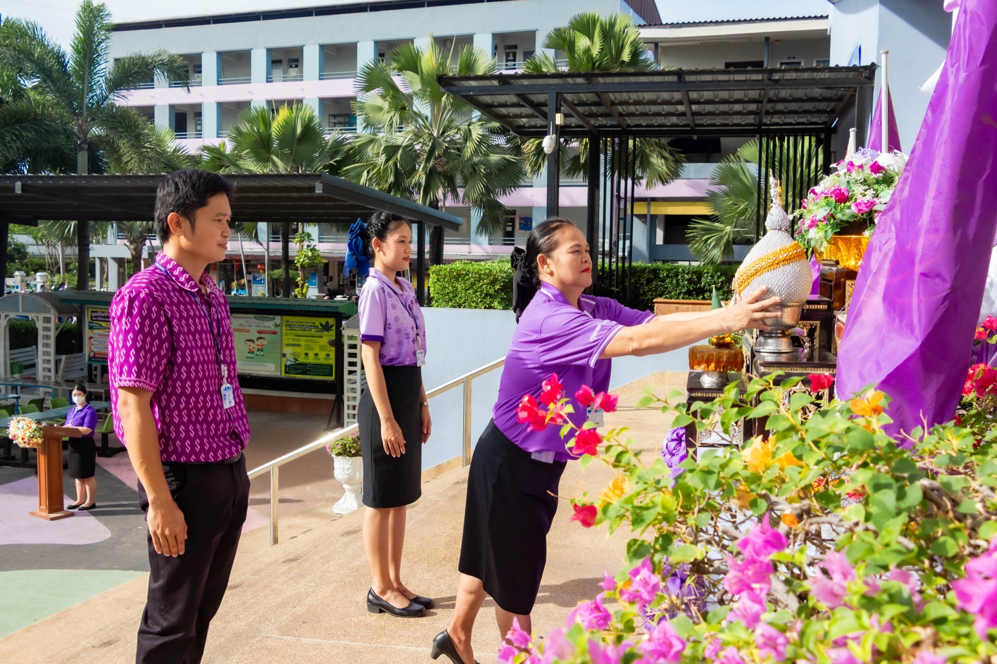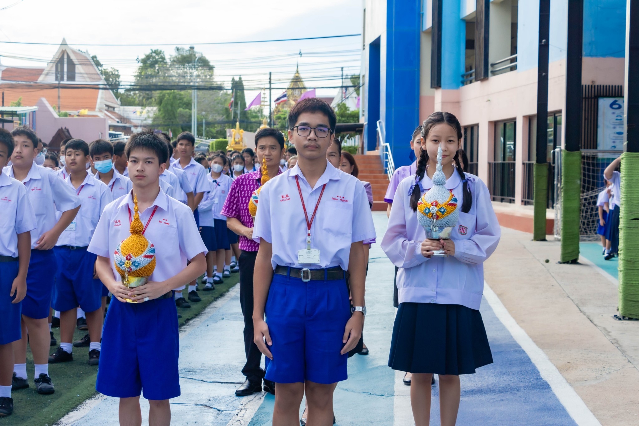 โดยมีนางชวาลา กันทอง ผู้อำนวยการโรงเรียน เป็นตัวแทนคณะครูและนักเรียนโรงเรียนบุญจิตวิทยา ณ หน้าอาคาร 50 ปี