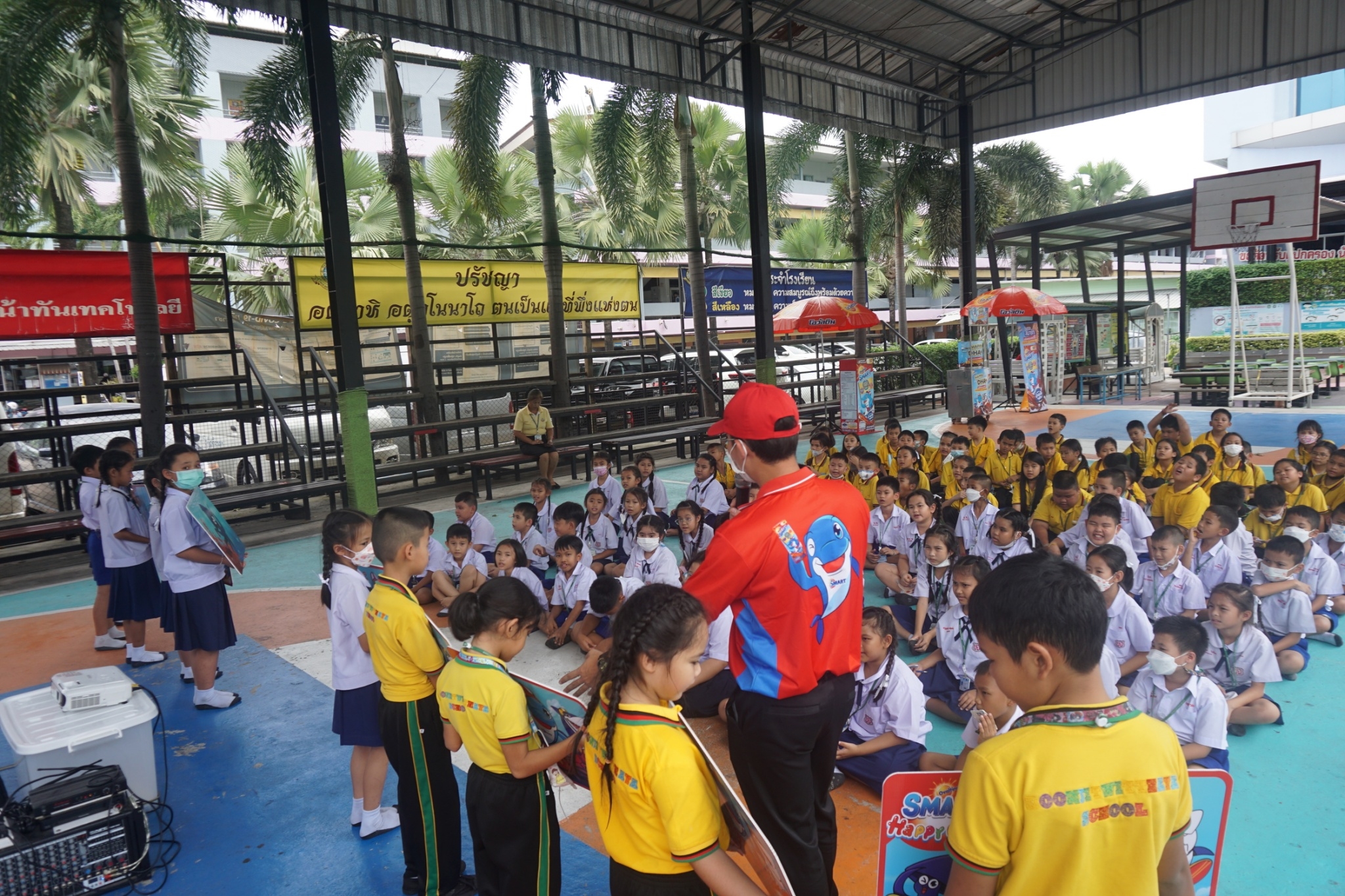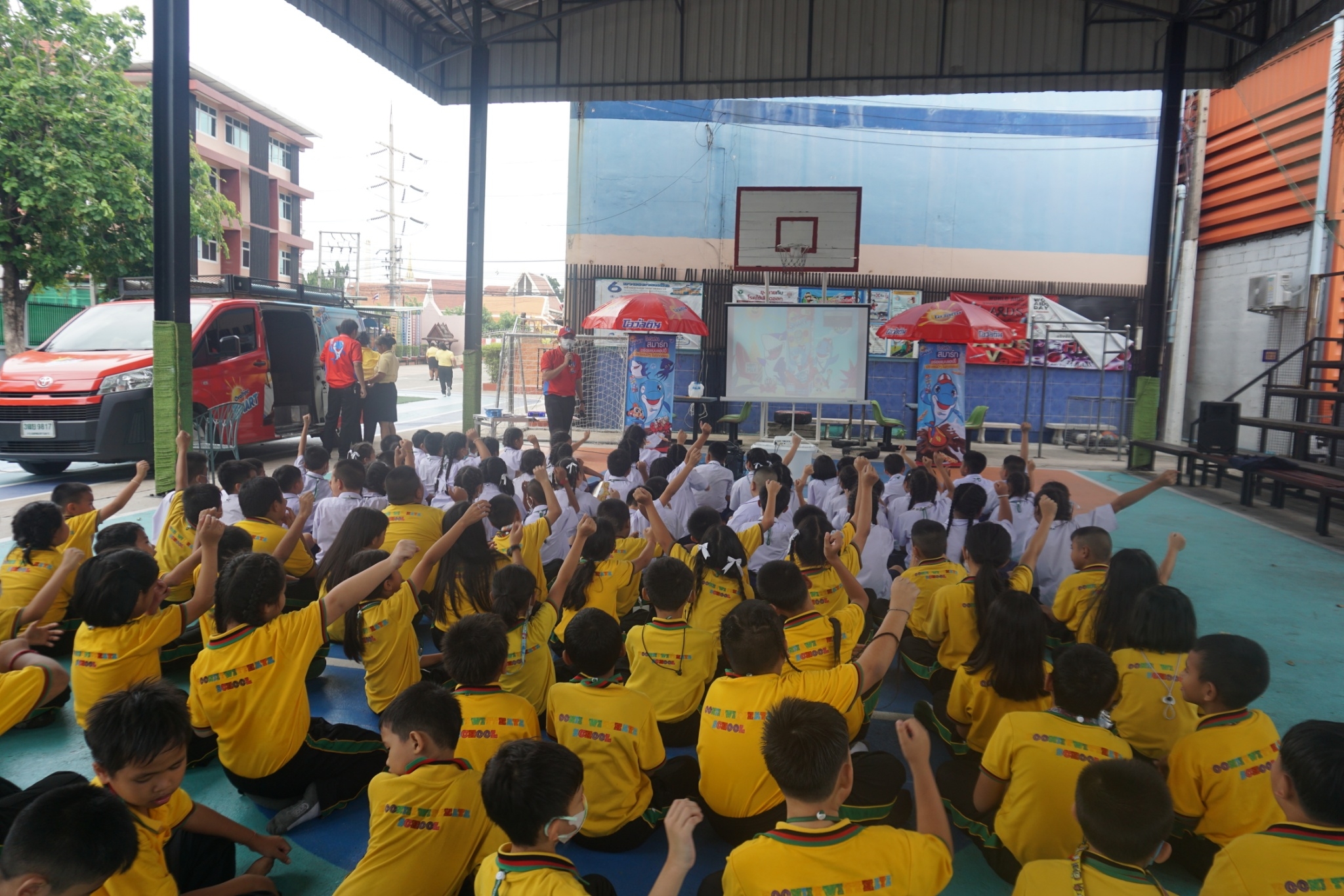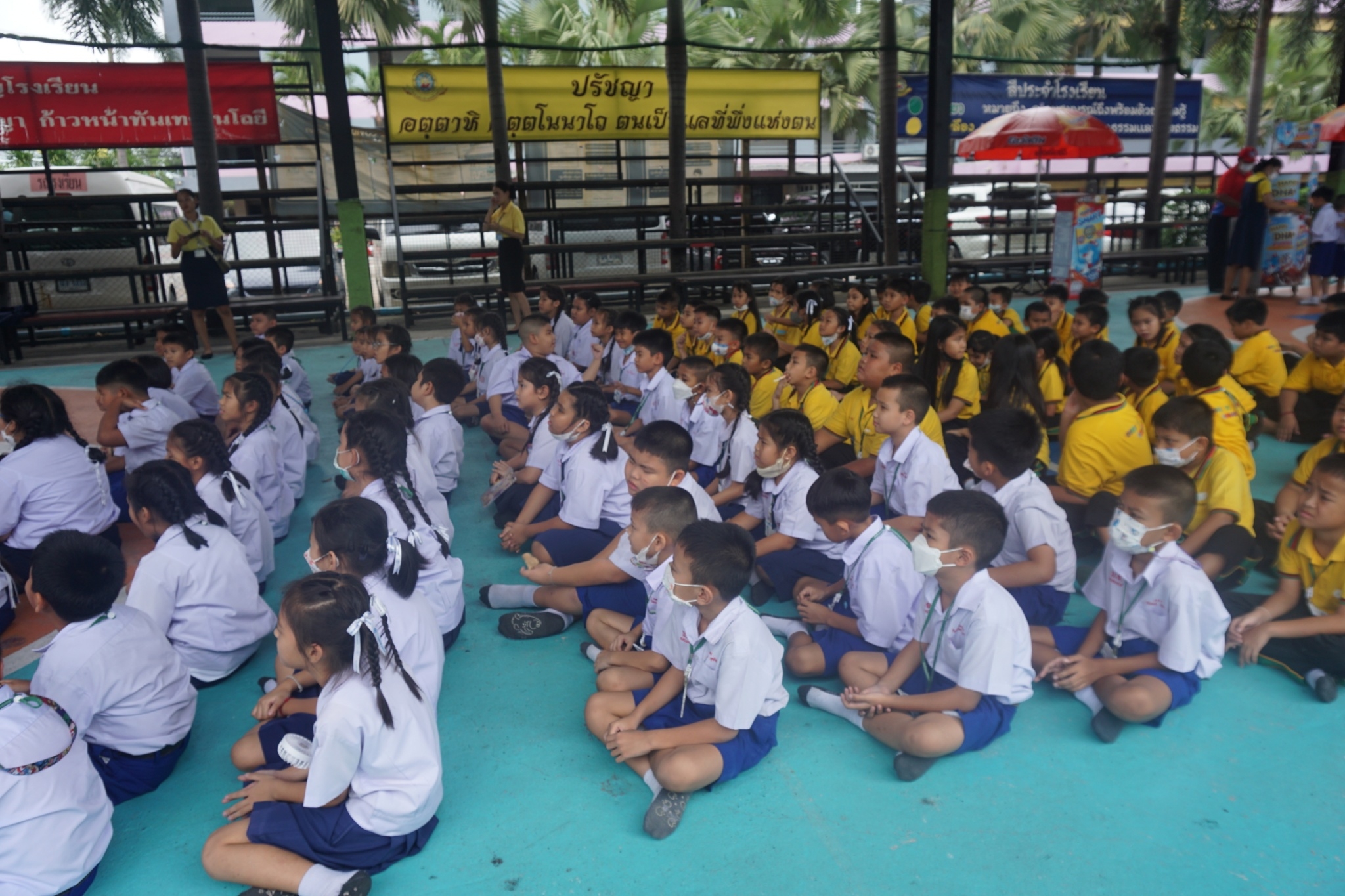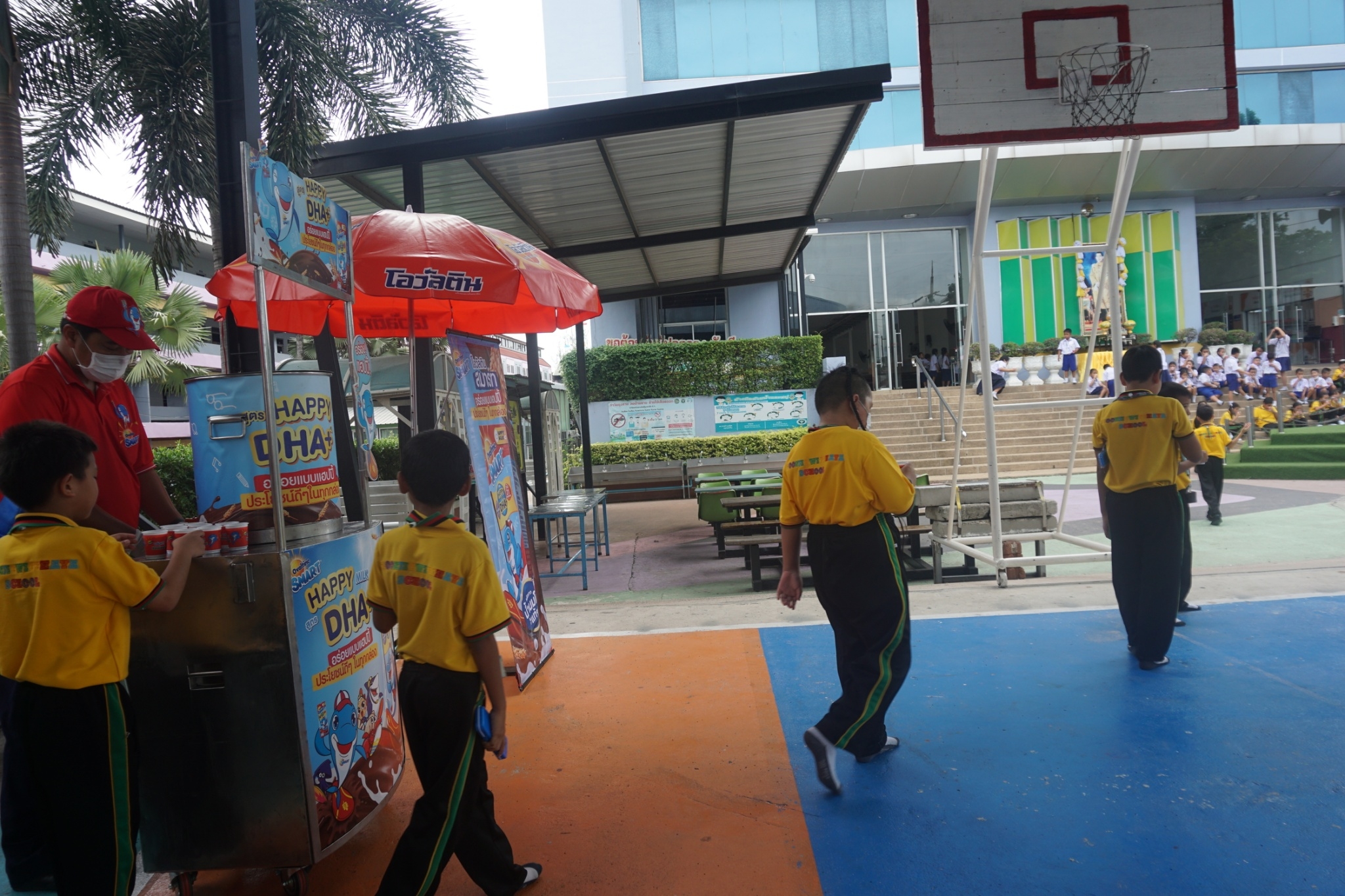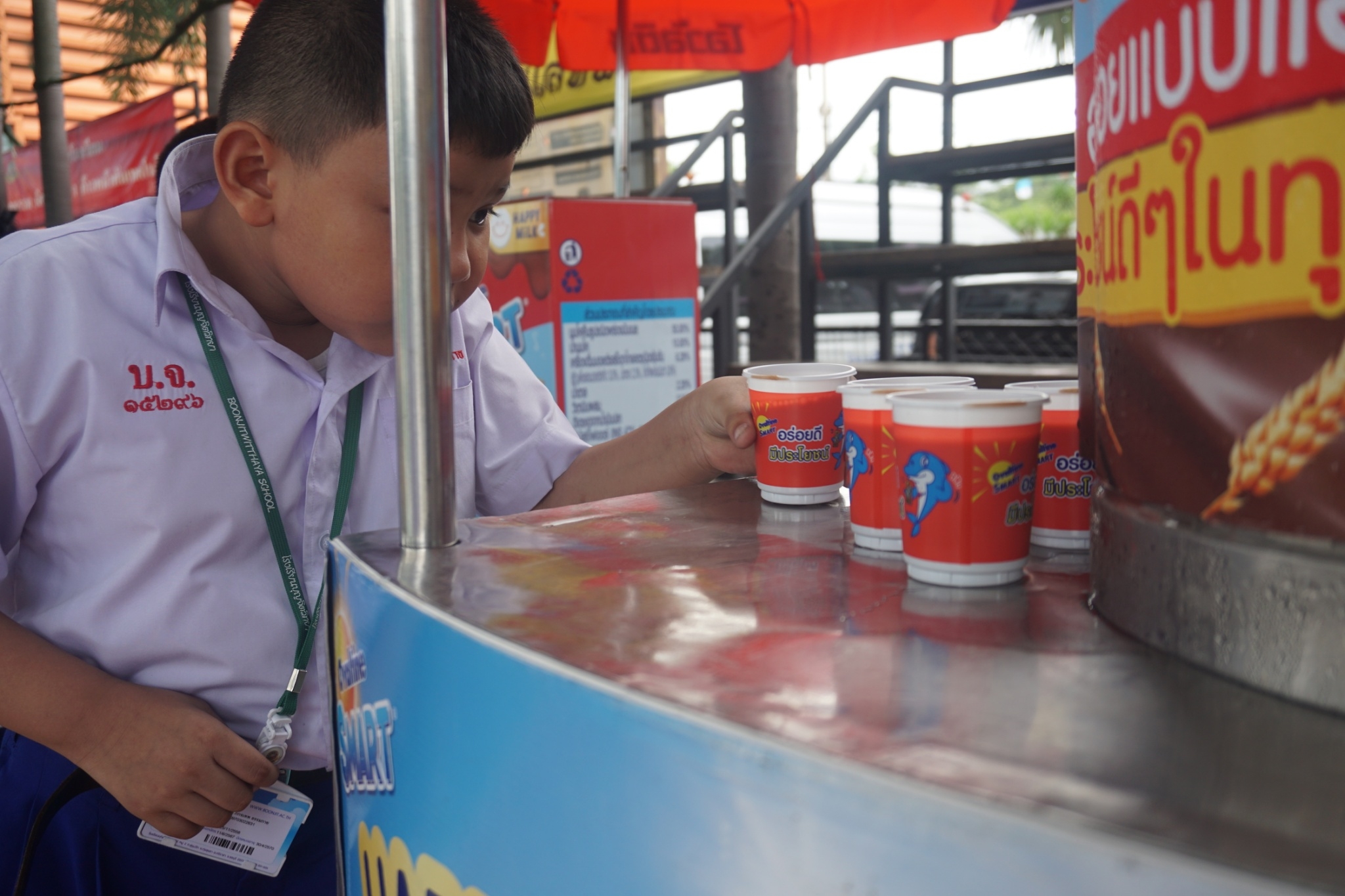 แบบเซ็ต ให้นักเรียนระดับชั้นอนุบาล 1-3 และแจกเครื่องดื่มโอวัลตินแบบชง ให้นักเรียนชั้นประถมศึกษาปีที่ 1-3