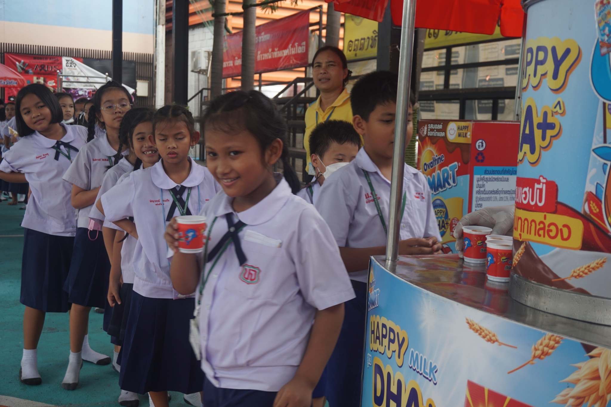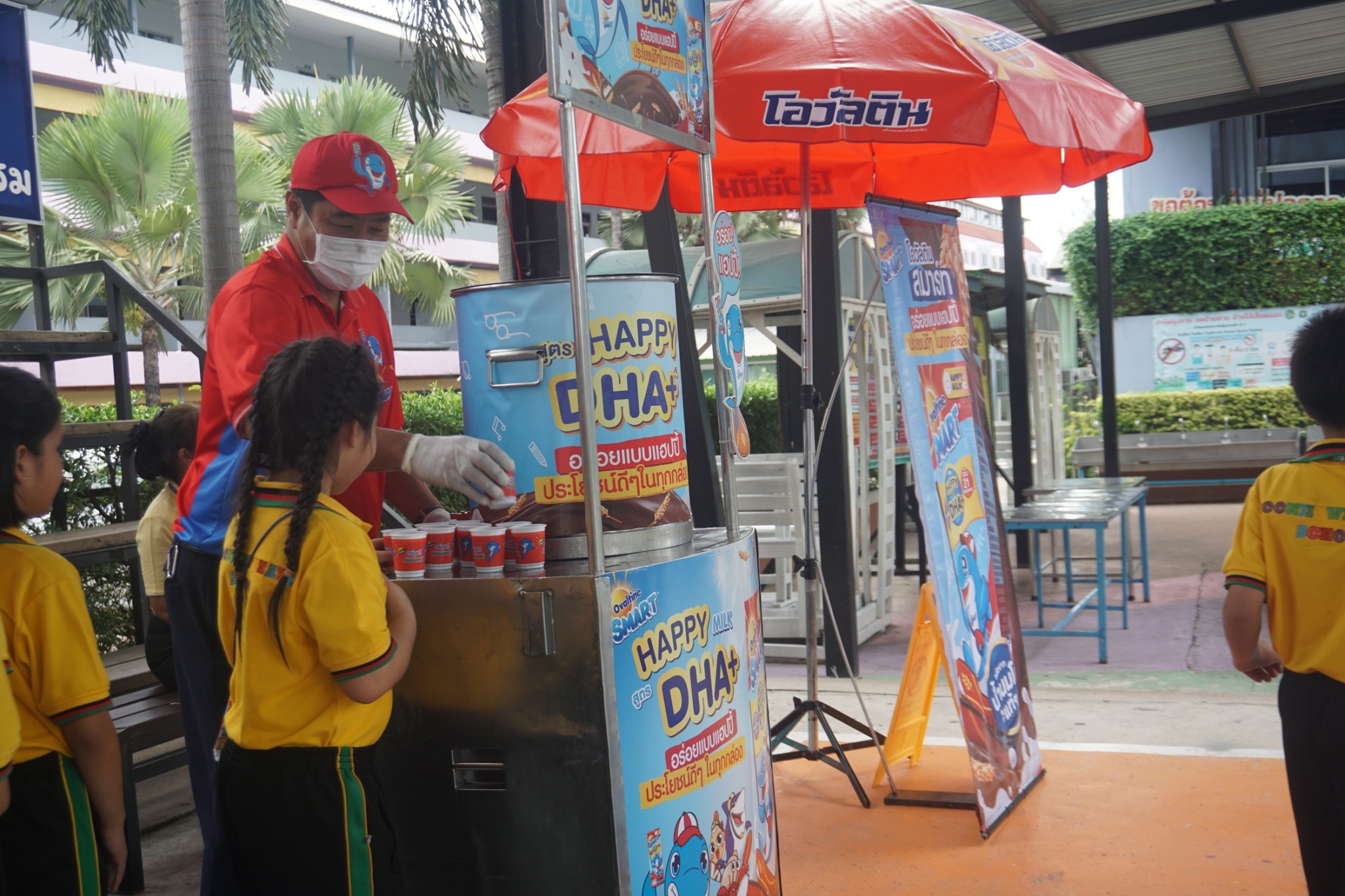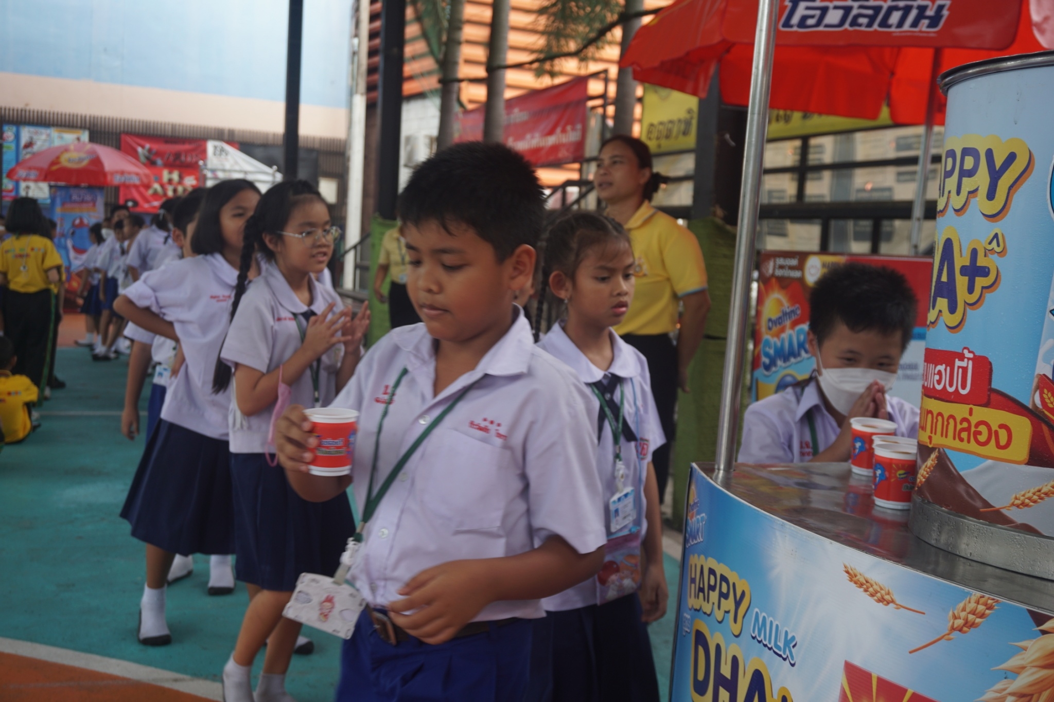 กิจกรรมแจกเครื่องดื่มโอวัลตินให้กับนักเรียน ระดับชั้นอ.1-ป.3