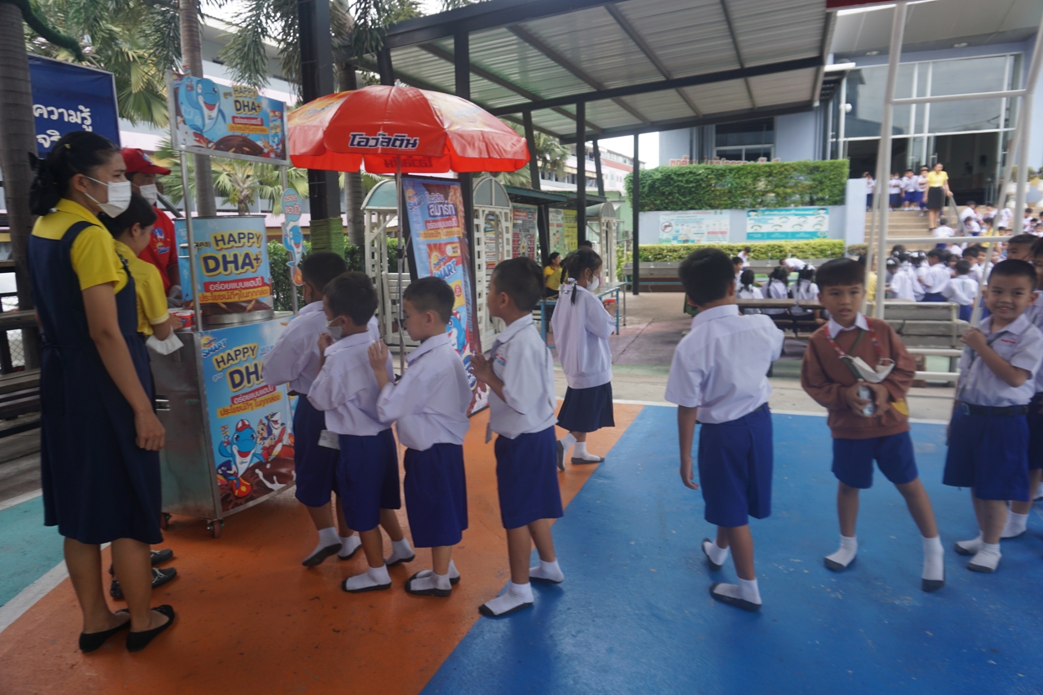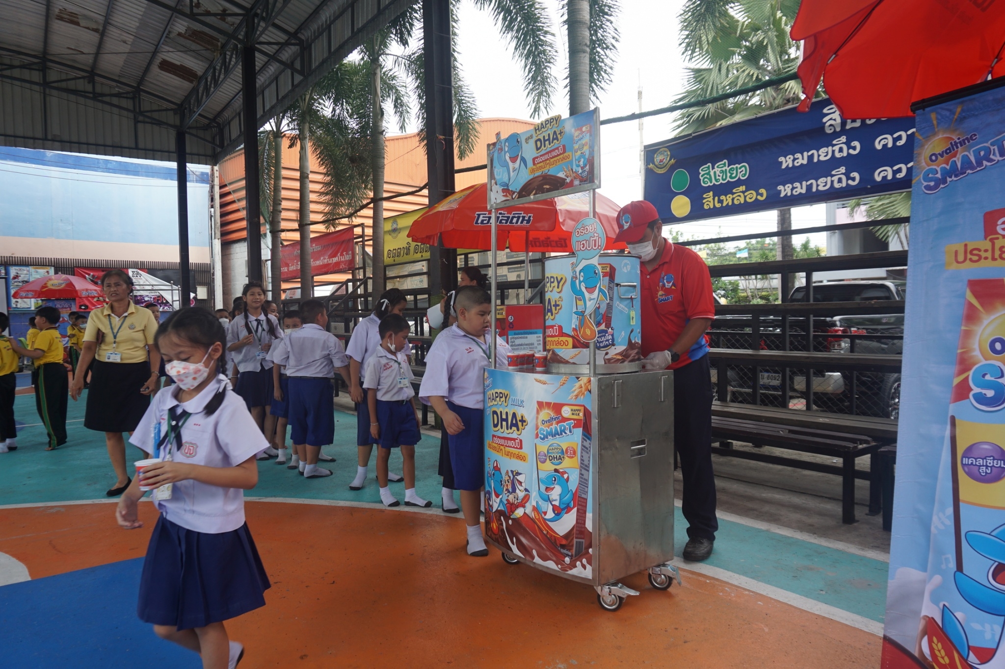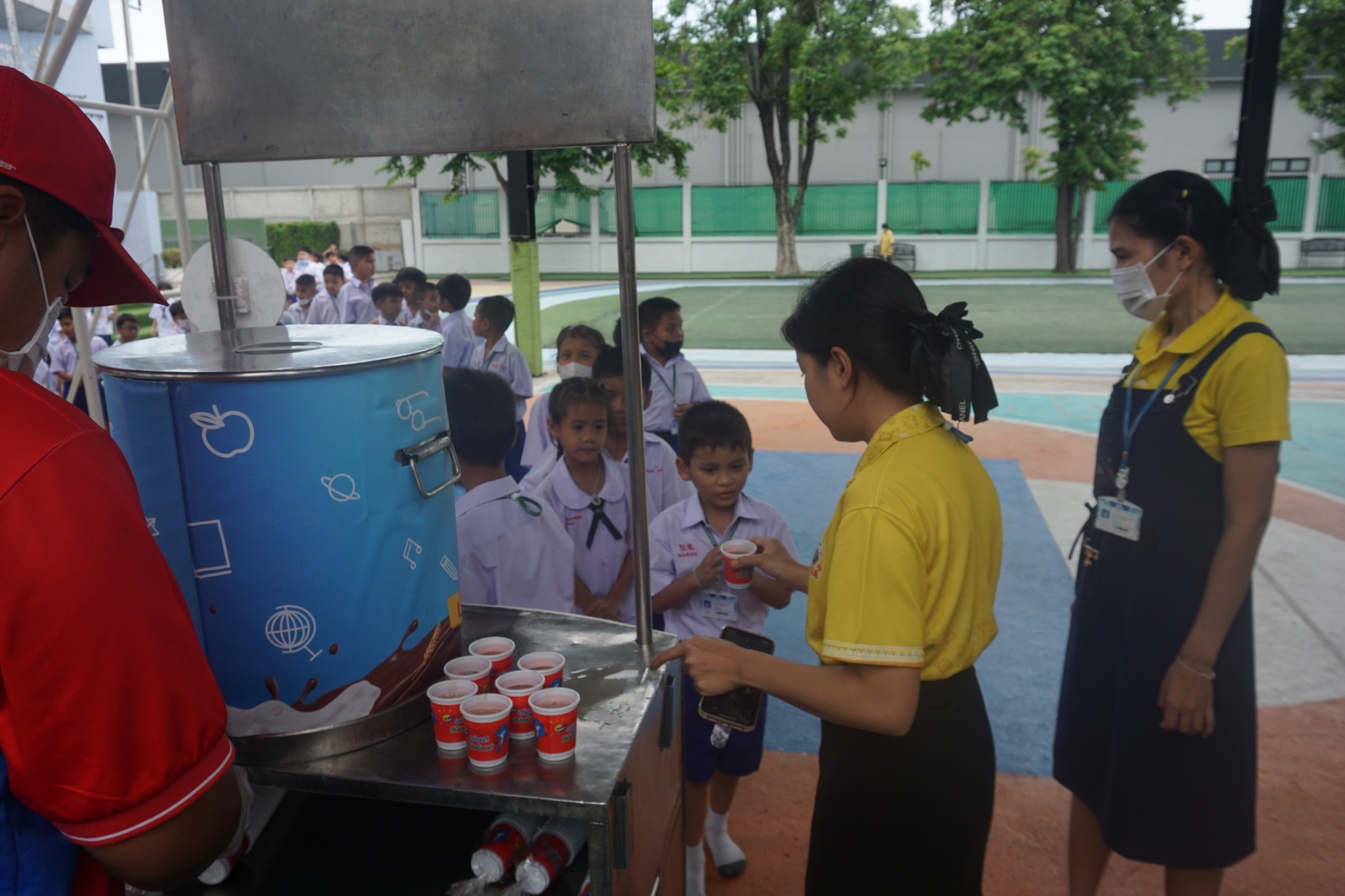 กิจกรรมแจกเครื่องดื่มโอวัลตินให้กับนักเรียน ระดับชั้นอ.1-ป.3