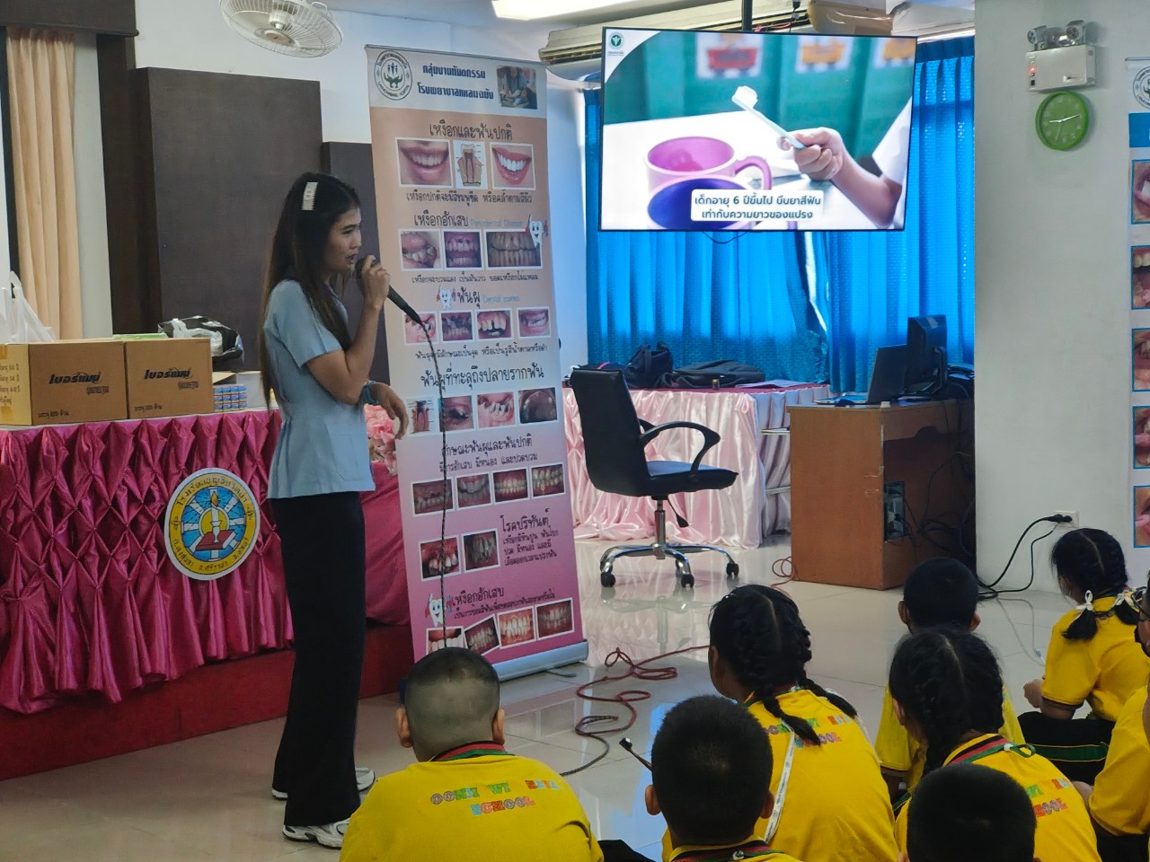 ให้ความรู้เกี่ยวกับการรักษาสุขภาพฟันและตรวจสุขภาพฟันนักเรียนป.1-6