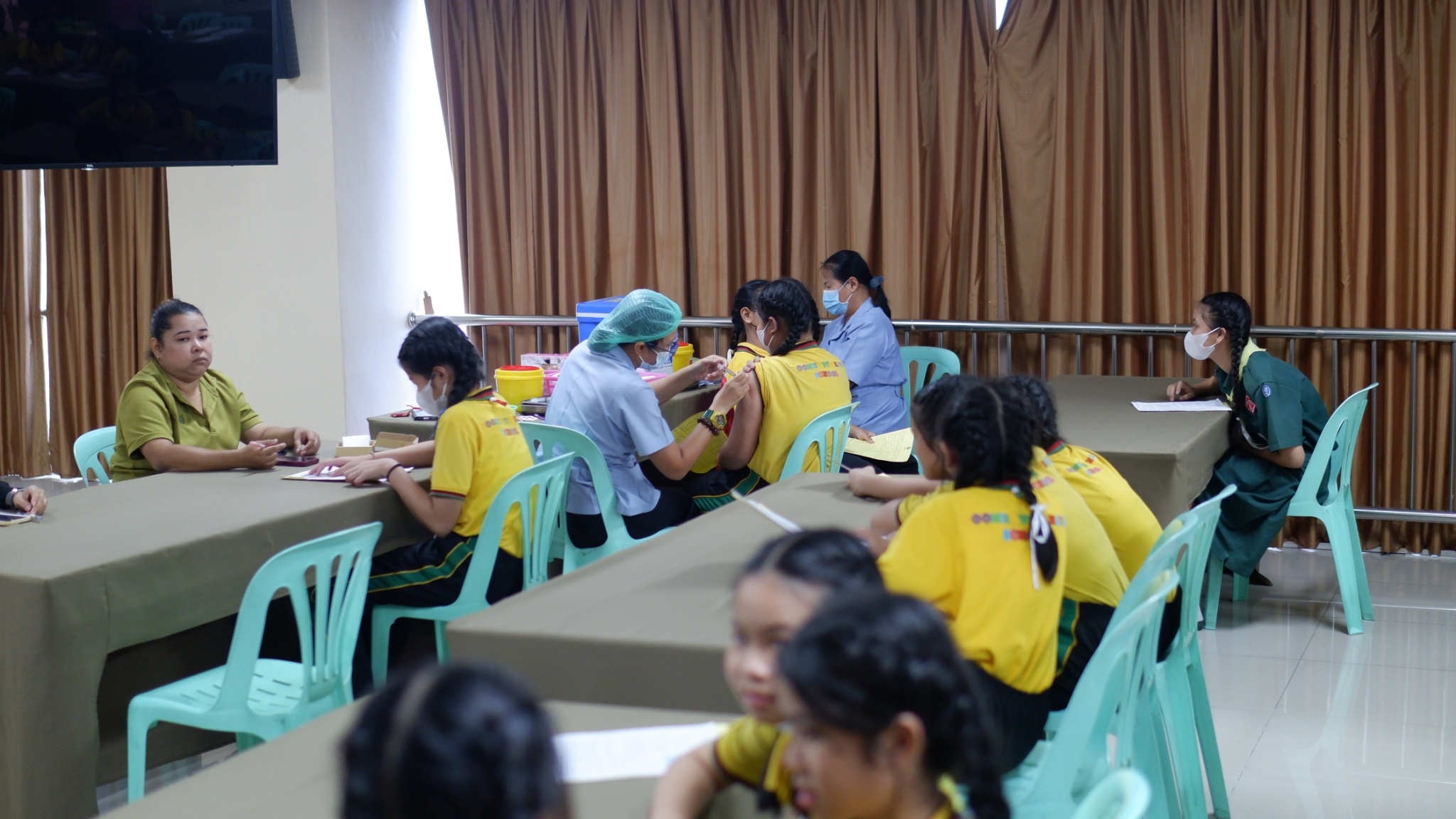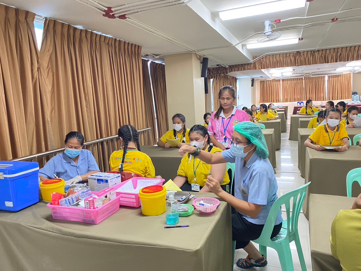 วันพุธที่ 31 กรกฎาคม 2567 ทางเจ้าหน้าที่สาธารณสุขโรงพยาบาลแหลมฉบังเข้ามาฉีดวัคซีนป้องกันมะเร็งปากมดลูก(HPVเข็ม 2) นักเรียนระดับชั้นประถมศึกษาชั้นปีที่ 6 ณ อาคาร 50 ปี ห้องประชุมชั้น 4