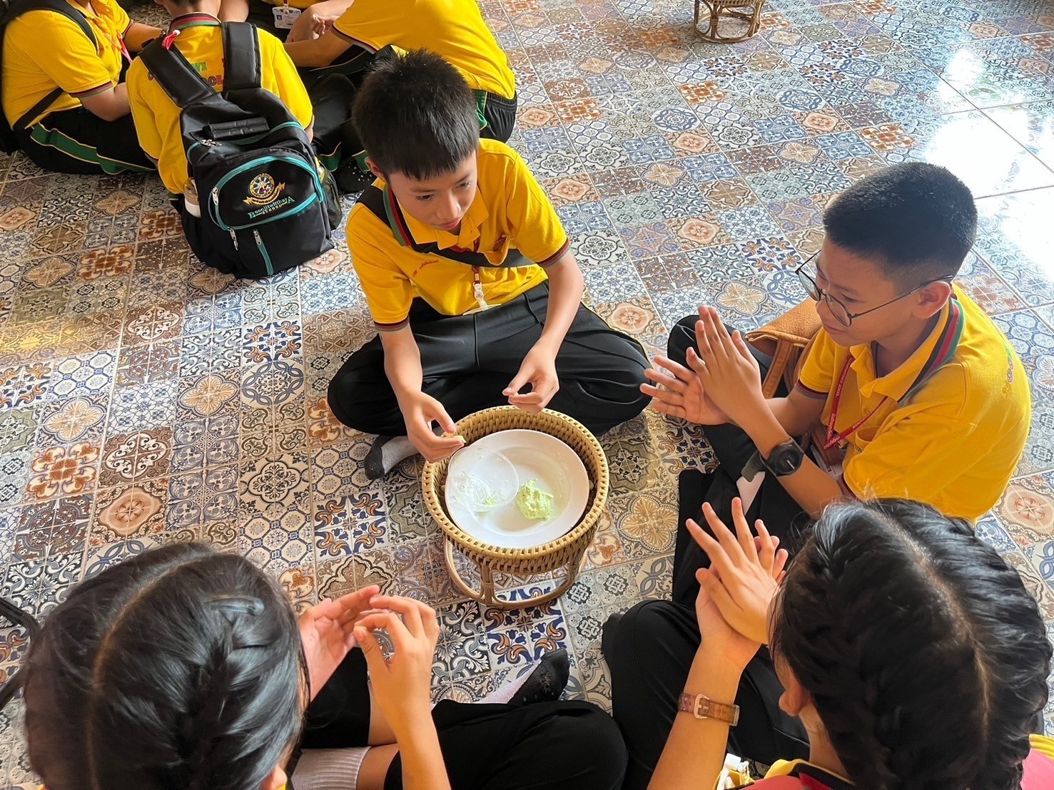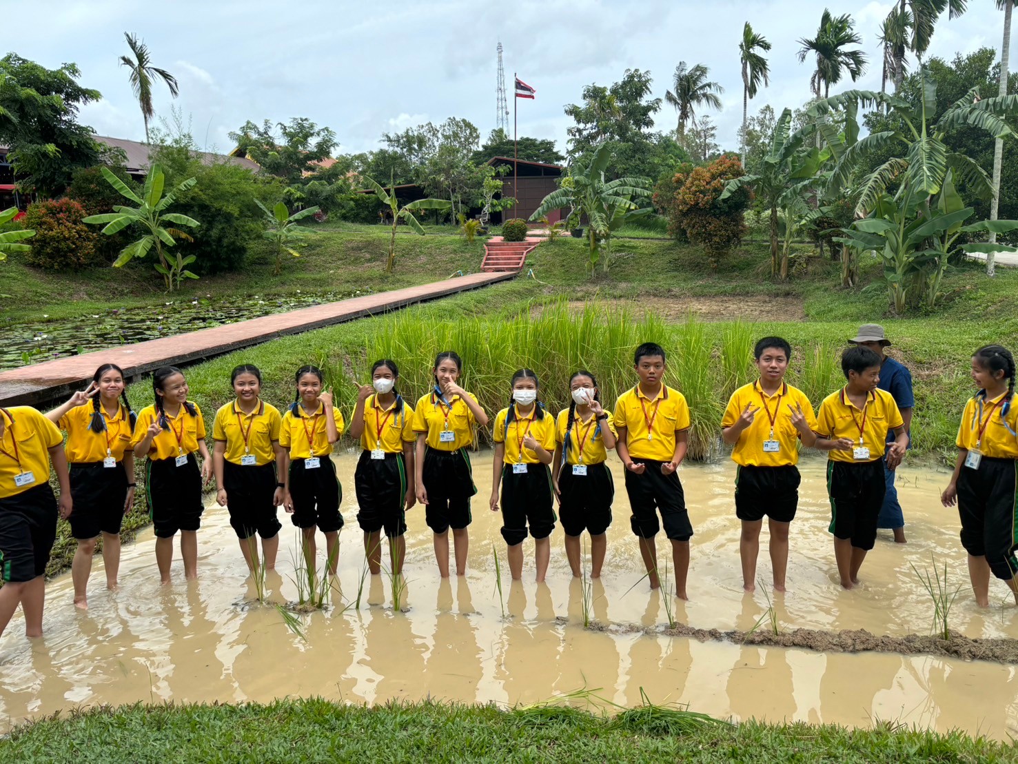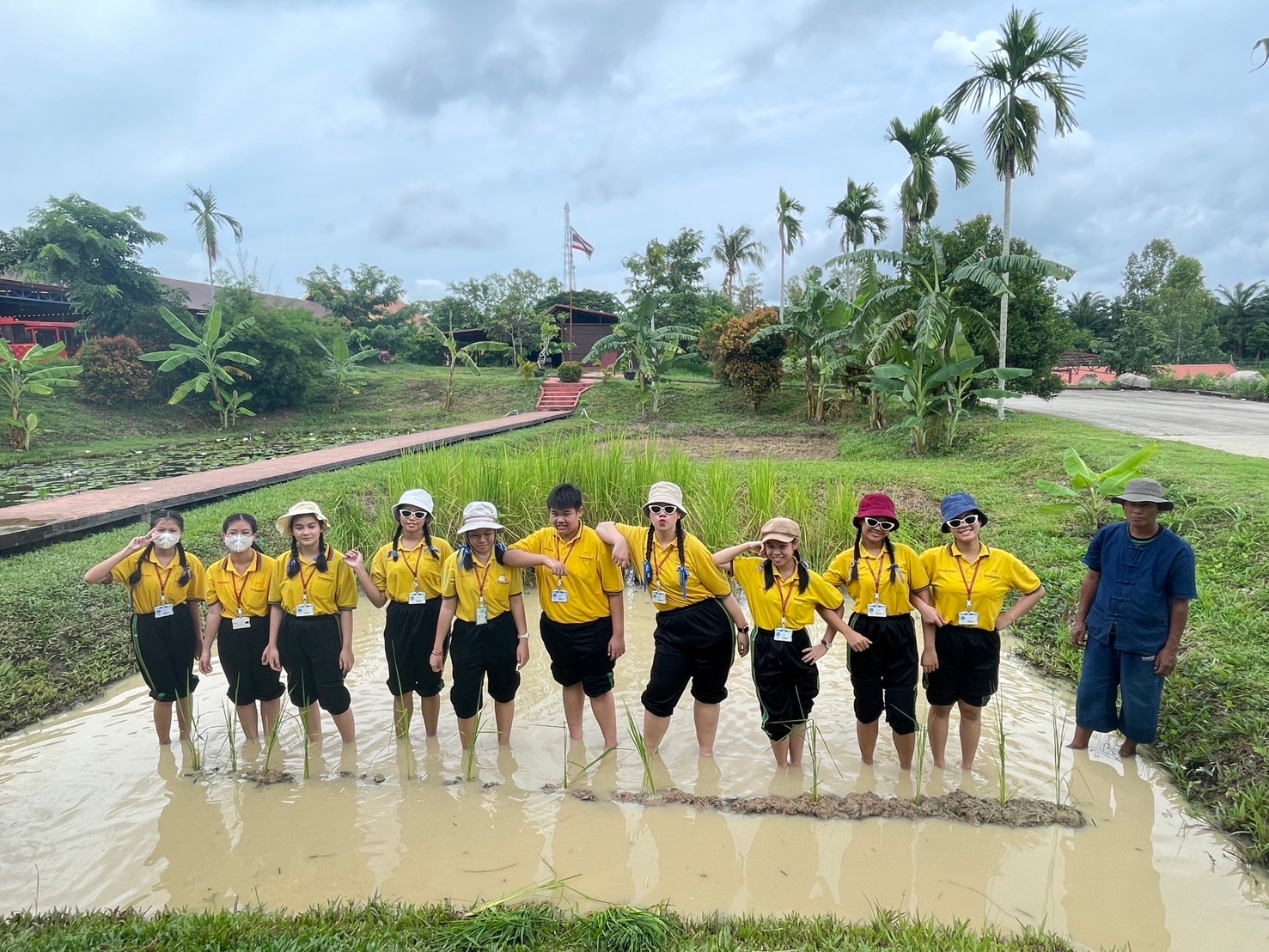ณ สวนไทย พัทยา เกี่ยวกับการสืบสานวัฒนธรรมไทย การดำนา การสานปลาตะเพียน ทำพวงมโหตร ดูหนังตะลุง และภูมิปัญญาไทย