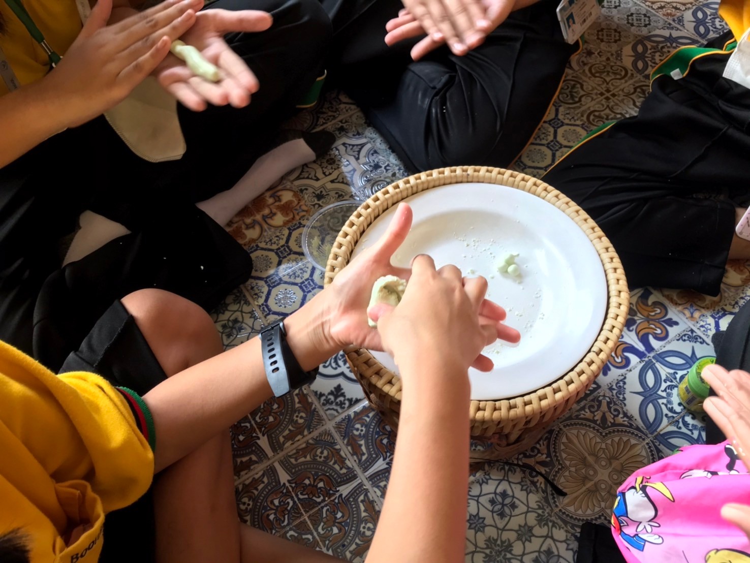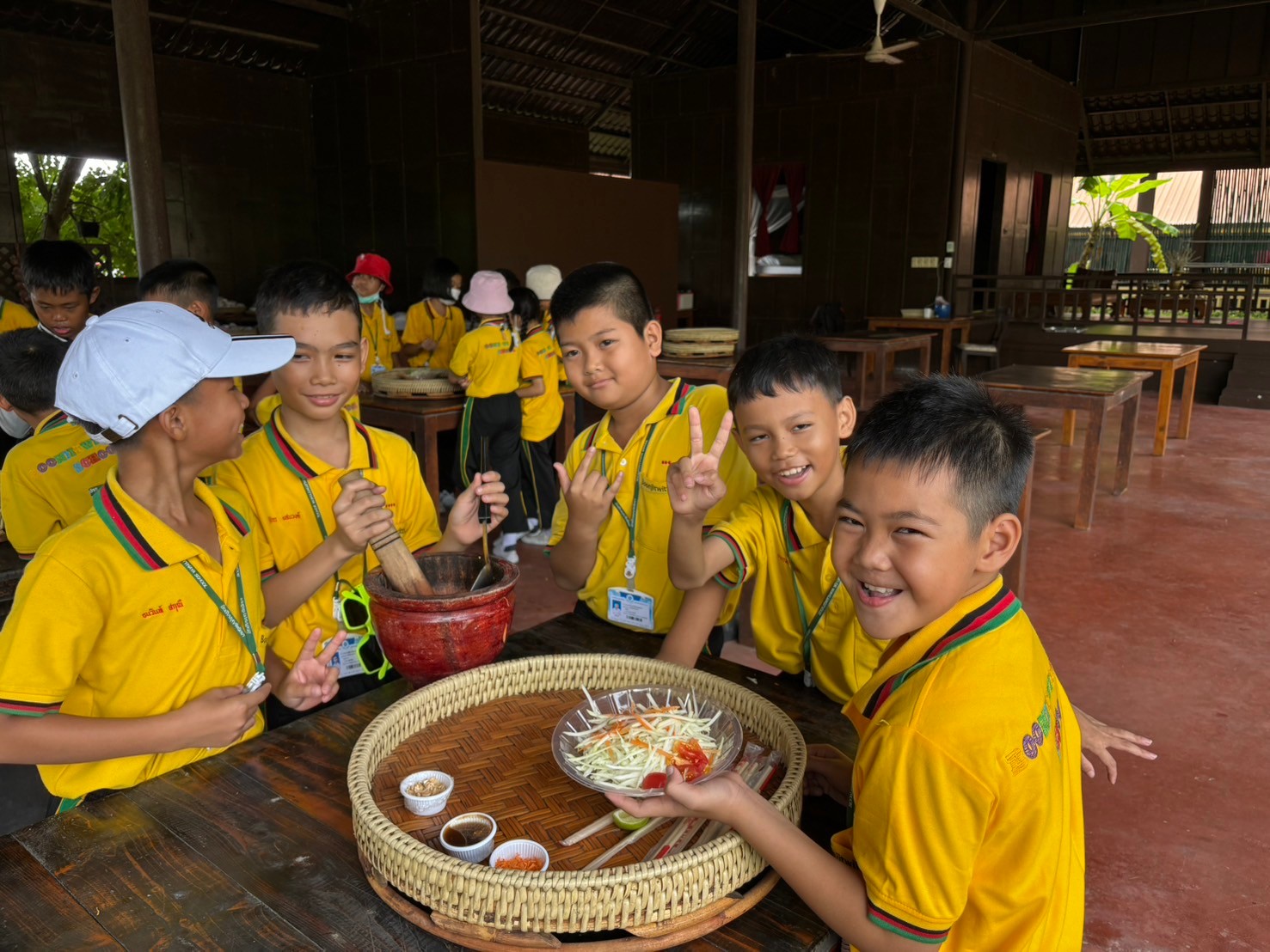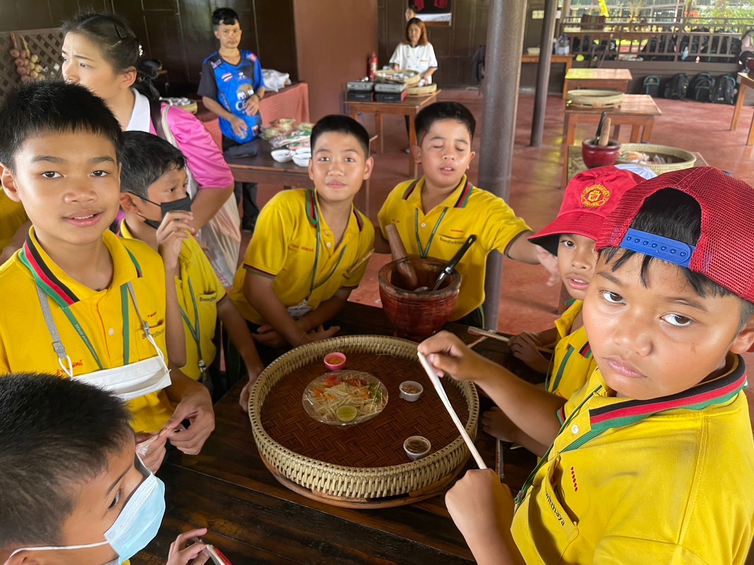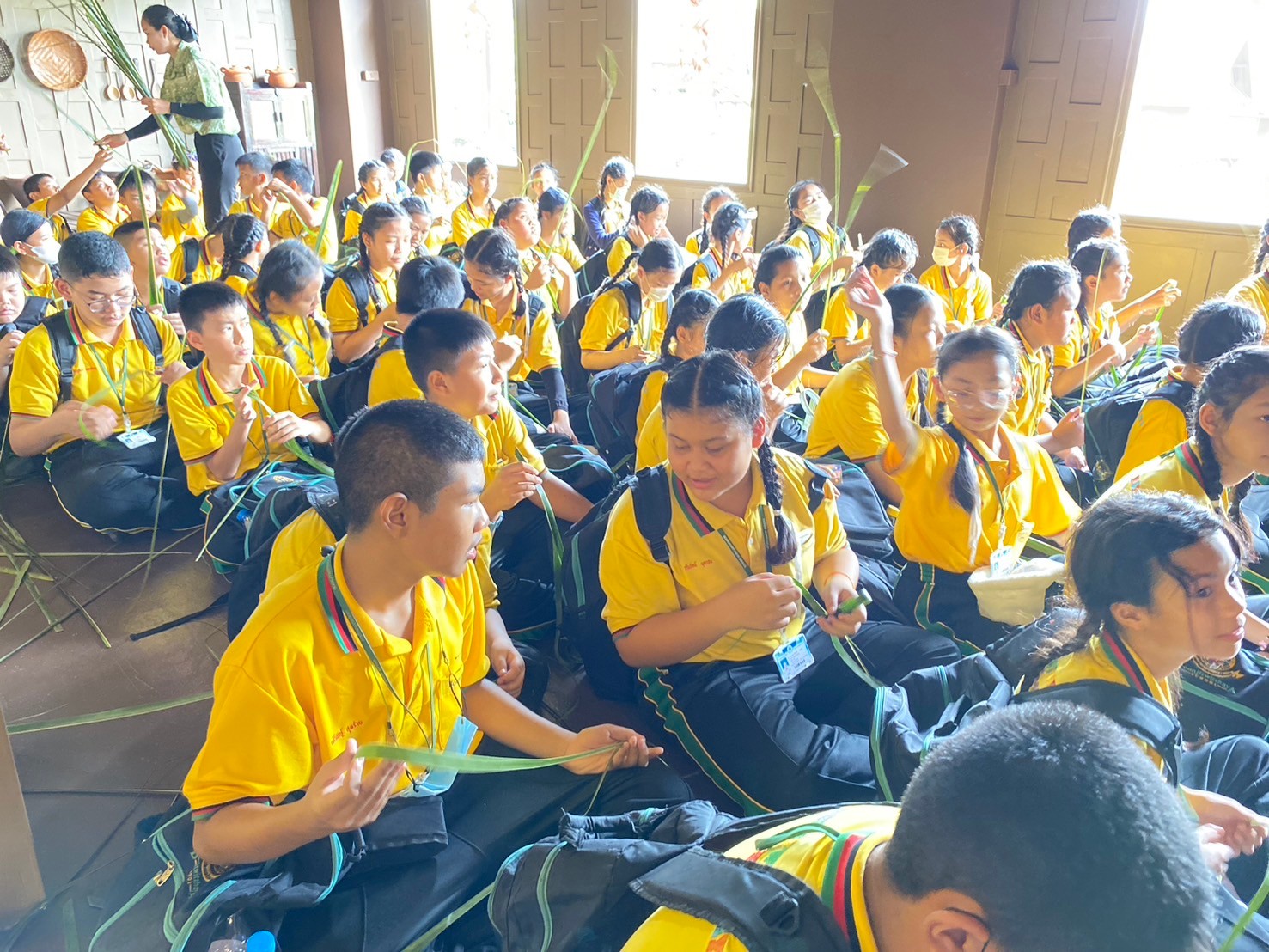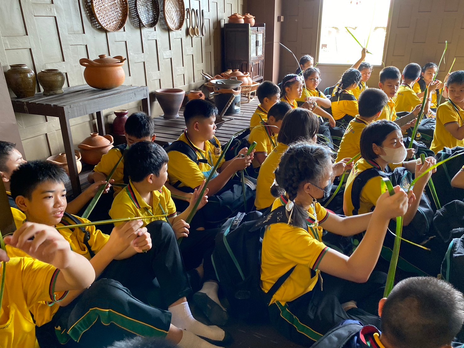 ณ สวนไทย พัทยา เกี่ยวกับการสืบสานวัฒนธรรมไทย การดำนา การสานปลาตะเพียน ทำพวงมโหตร ดูหนังตะลุง และภูมิปัญญาไทย
