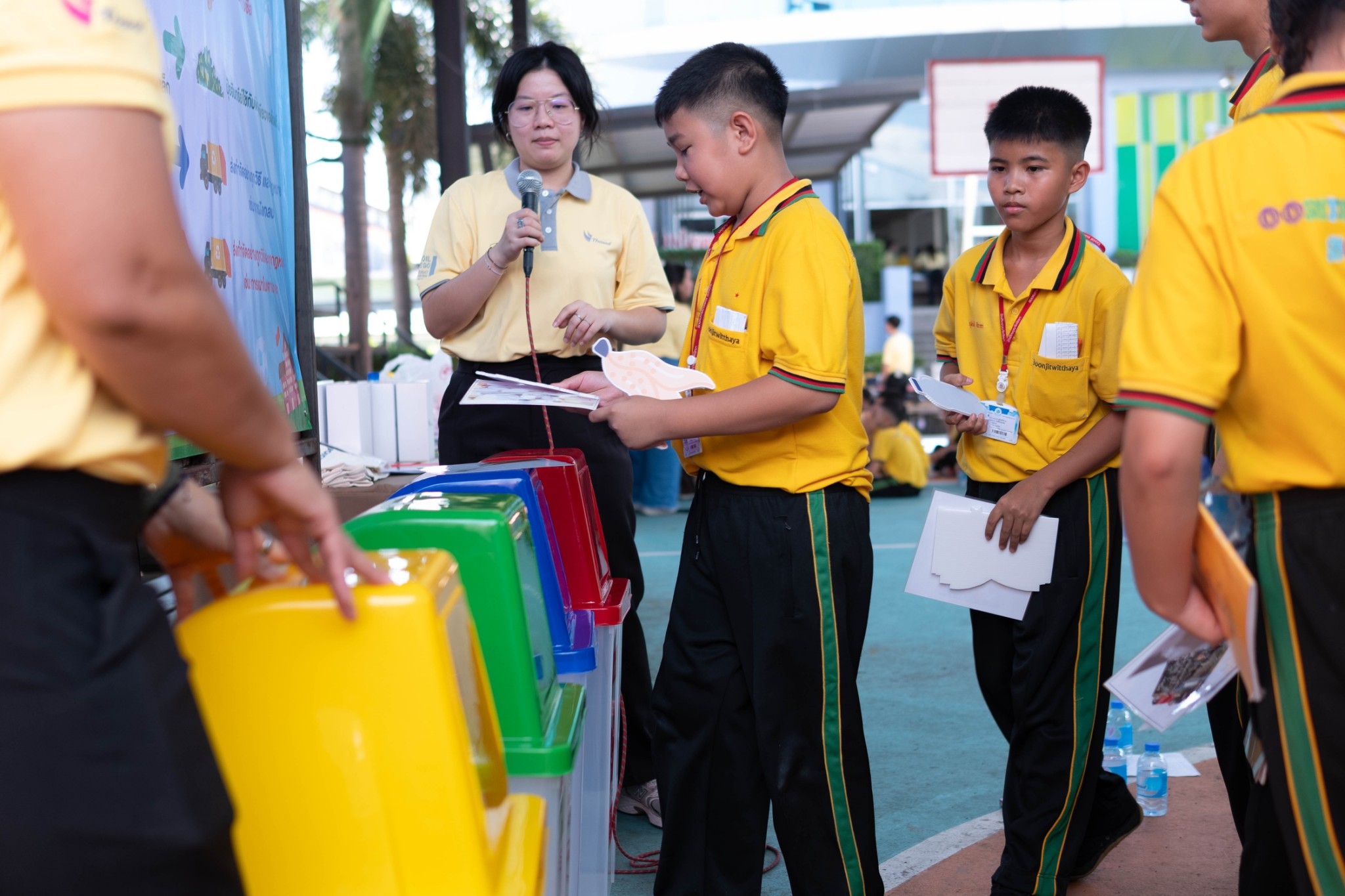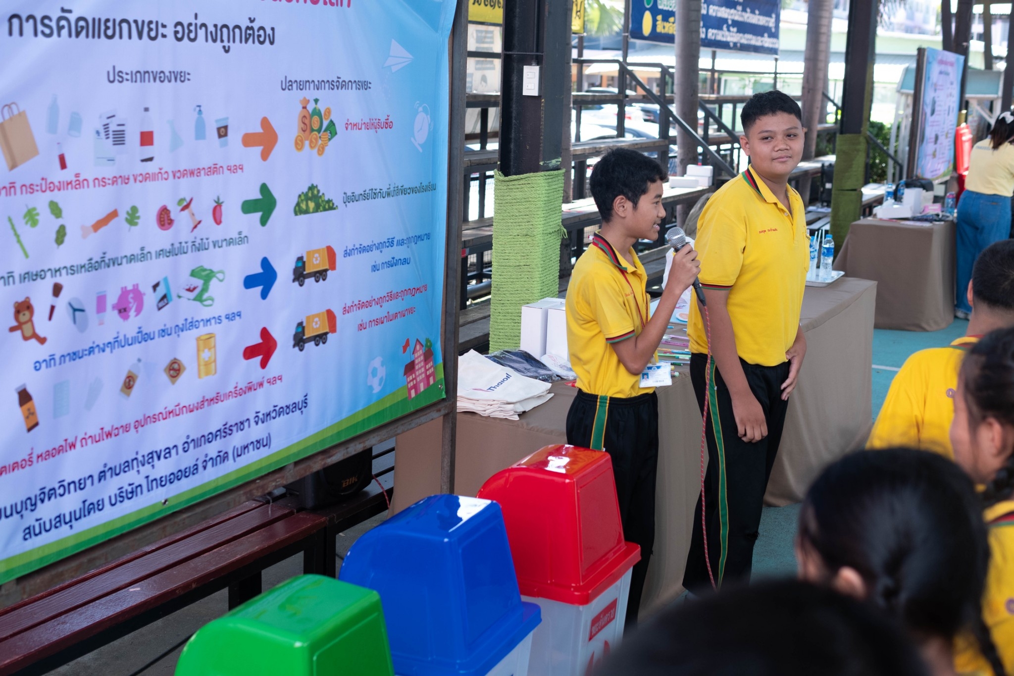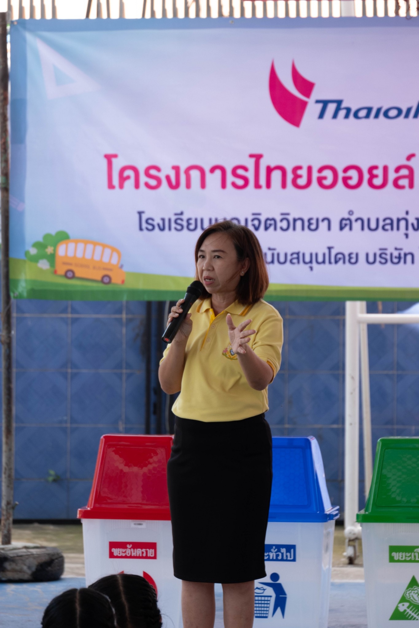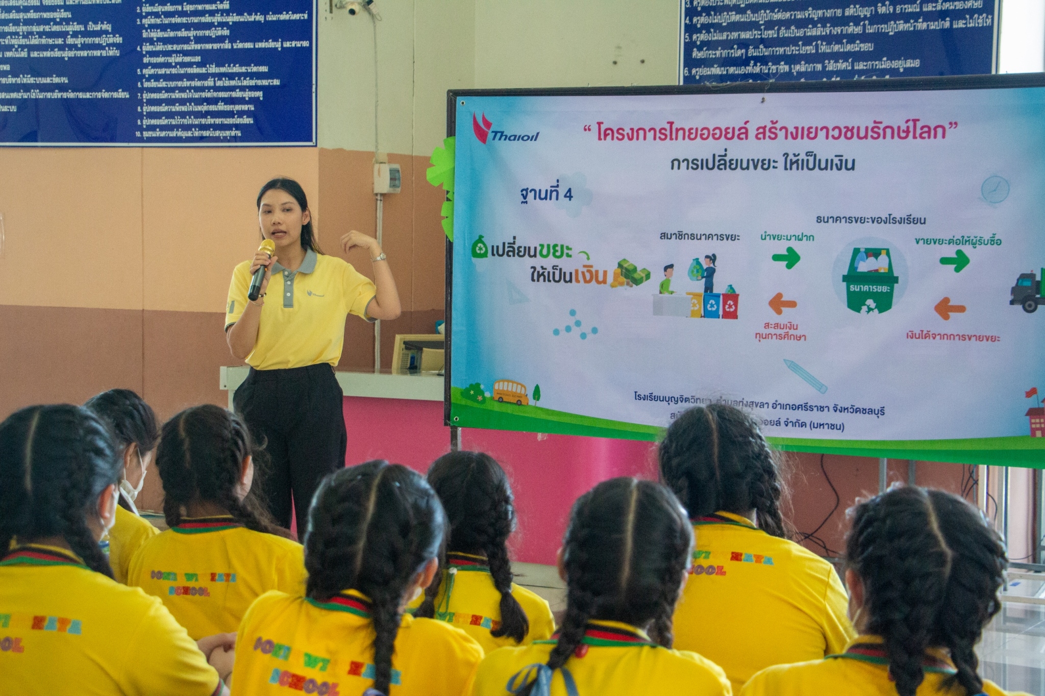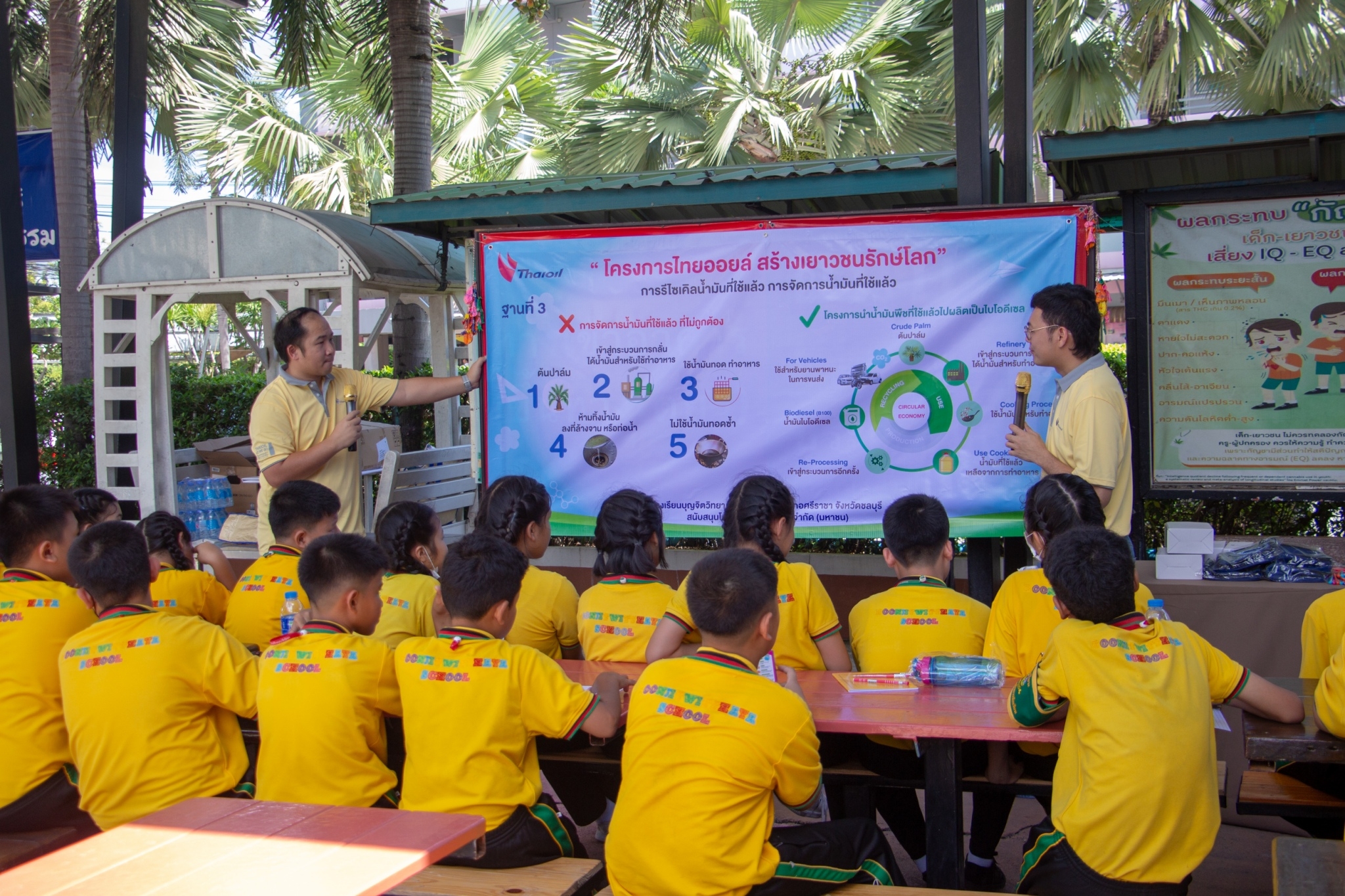 ให้ความรู้เกี่ยวกับการบริหารจัดการขยะอย่างยั่งยืนเป็นโรงเรียนต้นแบบด้านการจัดการขยะอย่างเป็นระบบรวมถึงการจัดการขยะ กระบวนการหมักปุ๋ย การรีไซเคิลน้ำมันที่ใช้แล้วและการเปลี่ยนขยะให้เป็นเงิน และมอบถังขยะ เครื่องหมักปุ๋ย ณ หน้าอาคาร 50 ปี ขอขอบคุณกลุ่มไทยออยล์ในการจัดโครงการ “ไทยออยล์ สร้างเยาวชนรักษ์โลก” ในครั้งนี้