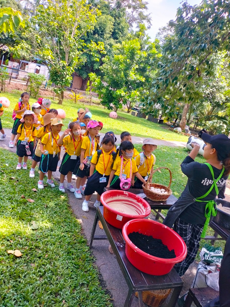 วันอังคารที่ 6 สิงหาคม 2567 คณะครูแผนกปฐมวัย นำนักเรียนอนุบาลปีที่ 1-3 ไปทัศนศึกษา ในแหล่งเรียนรู้ชุมชน ณ ทำฟาร์มดี อำเภอเมือง จังหวัดชลบุรี เด็กๆได้เรียนรู้และทำกิจกรรมที่หลากหลาย เช่น การเก็บไข่เป็ด ทำไข่เค็ม การเลี้ยงไส้เดือน ระบายสีปูนปั้น และเล่นสนามเด็กเล่น การเรียนรู้นอกห้องเรียนทำให้เด็กได้รับความรู้จากประสบการณ์ตรง และทำให้มีความสุข สนุกสนานเพลิดเพลิน