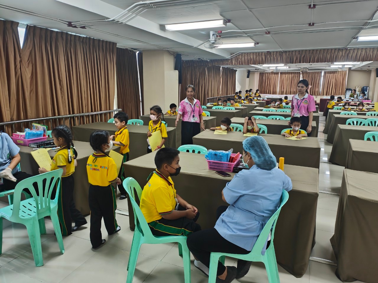 วันพุธที่ 14 สิงหาคม 2567 นักเรียนระดับชั้นประถมศึกษาชั้นปีที่ 1-4 เข้ารับการตรวจสุขภาพโดยทางเจ้าหน้าที่สาธารณสุขโรงพยาบาลแหลมฉบัง ห้องประชุมชั้น 4 ณ อาคาร 50 ปี