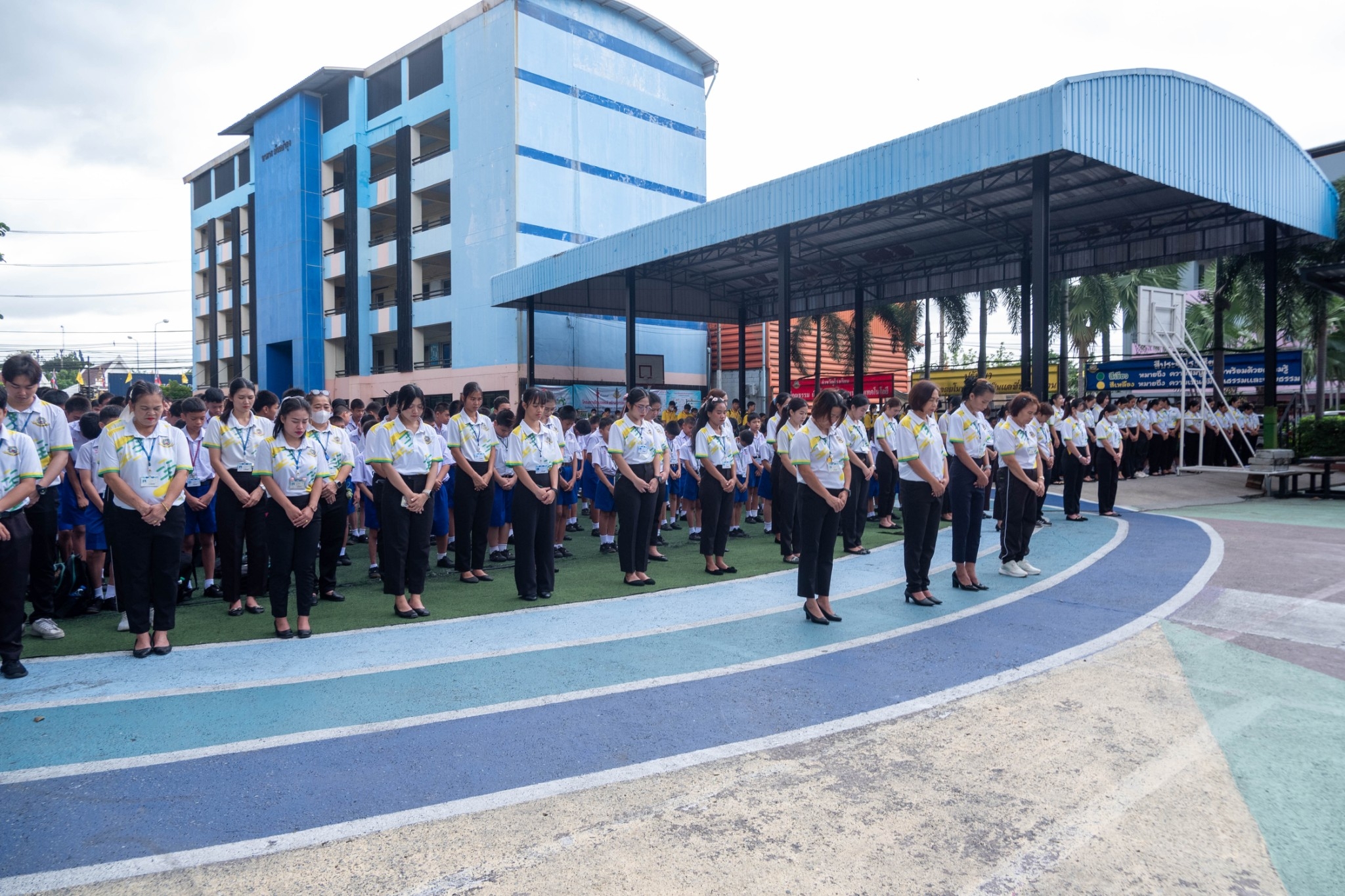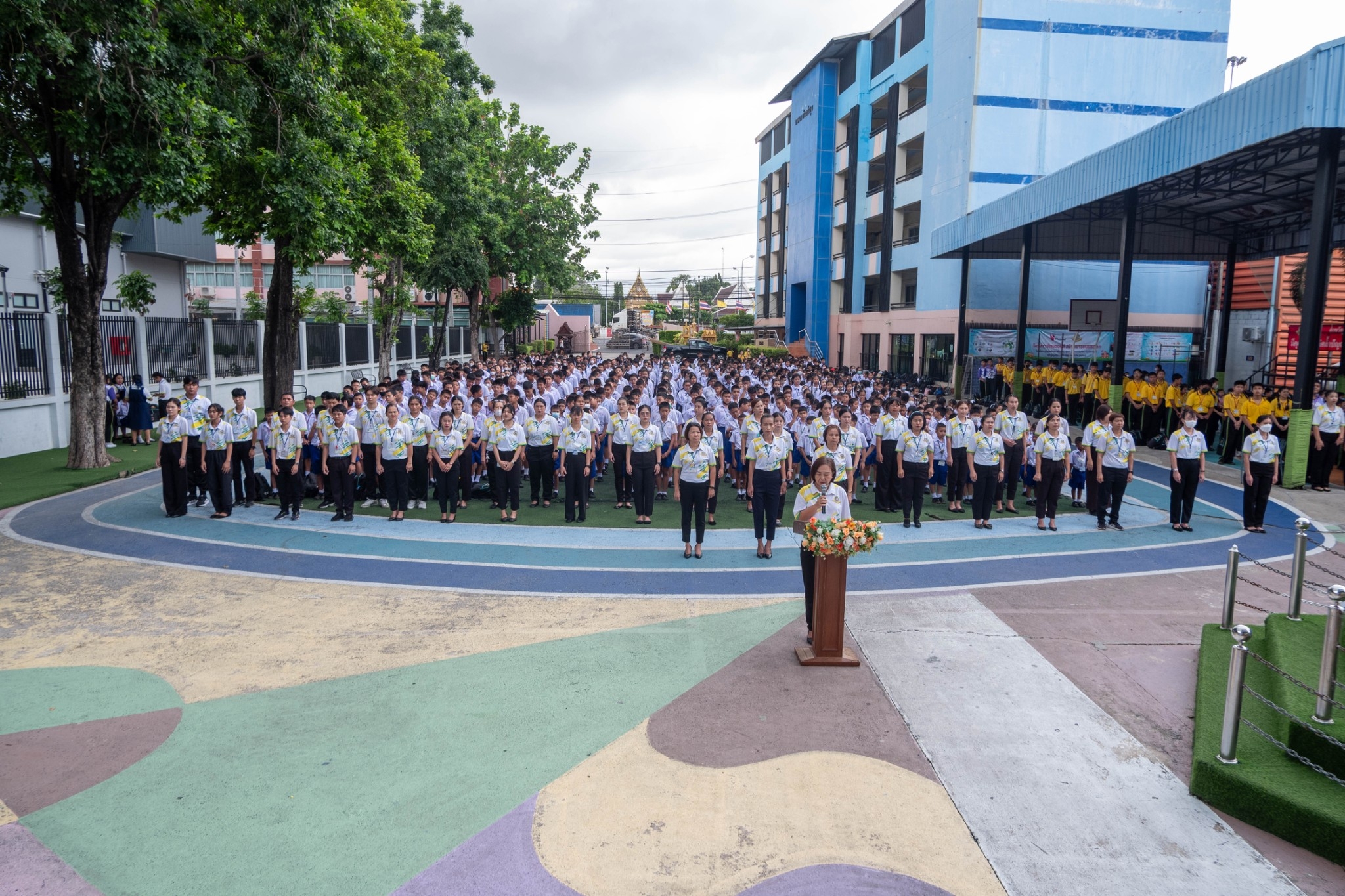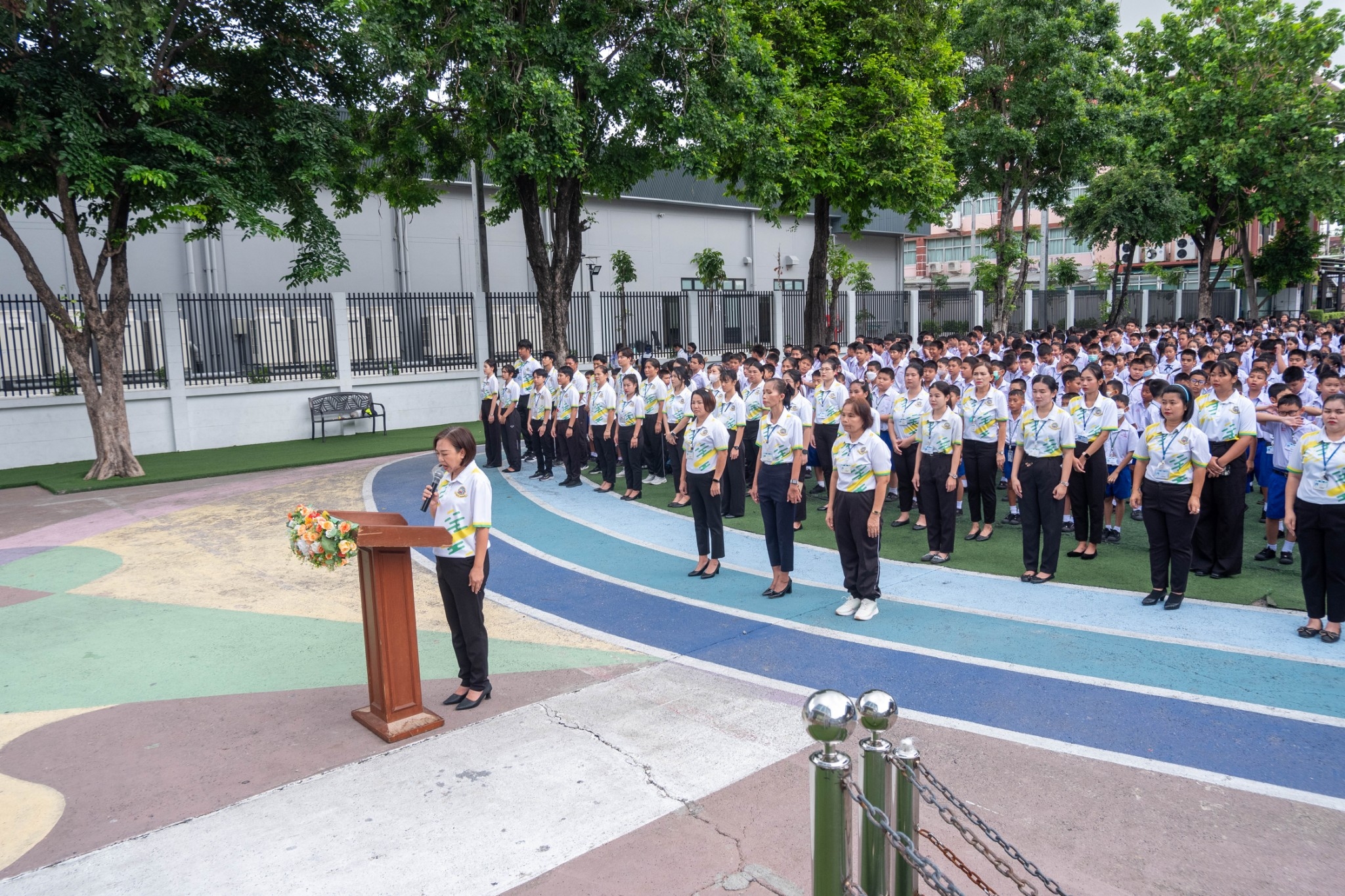 นักเรียนระดับชั้นประถมศึกษาปีที่ 1 - ระดับมัธยมศึกษาปีที่ 3 ได้เข้าร่วมกิจกรรมวันสันติภาพสากลและร่วมกันยืนสงบนิ่ง ณ หน้าอาคาร 50 ปี