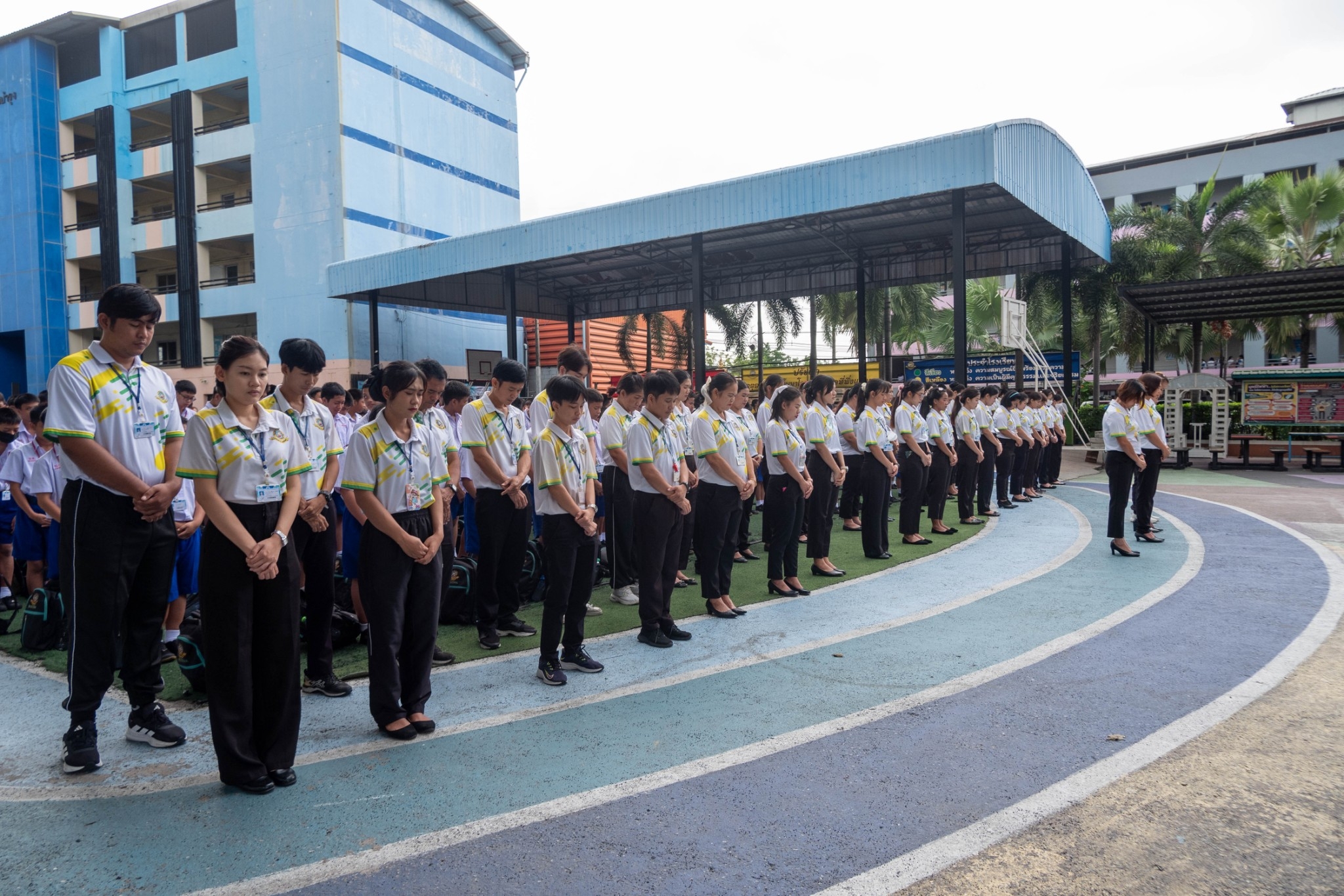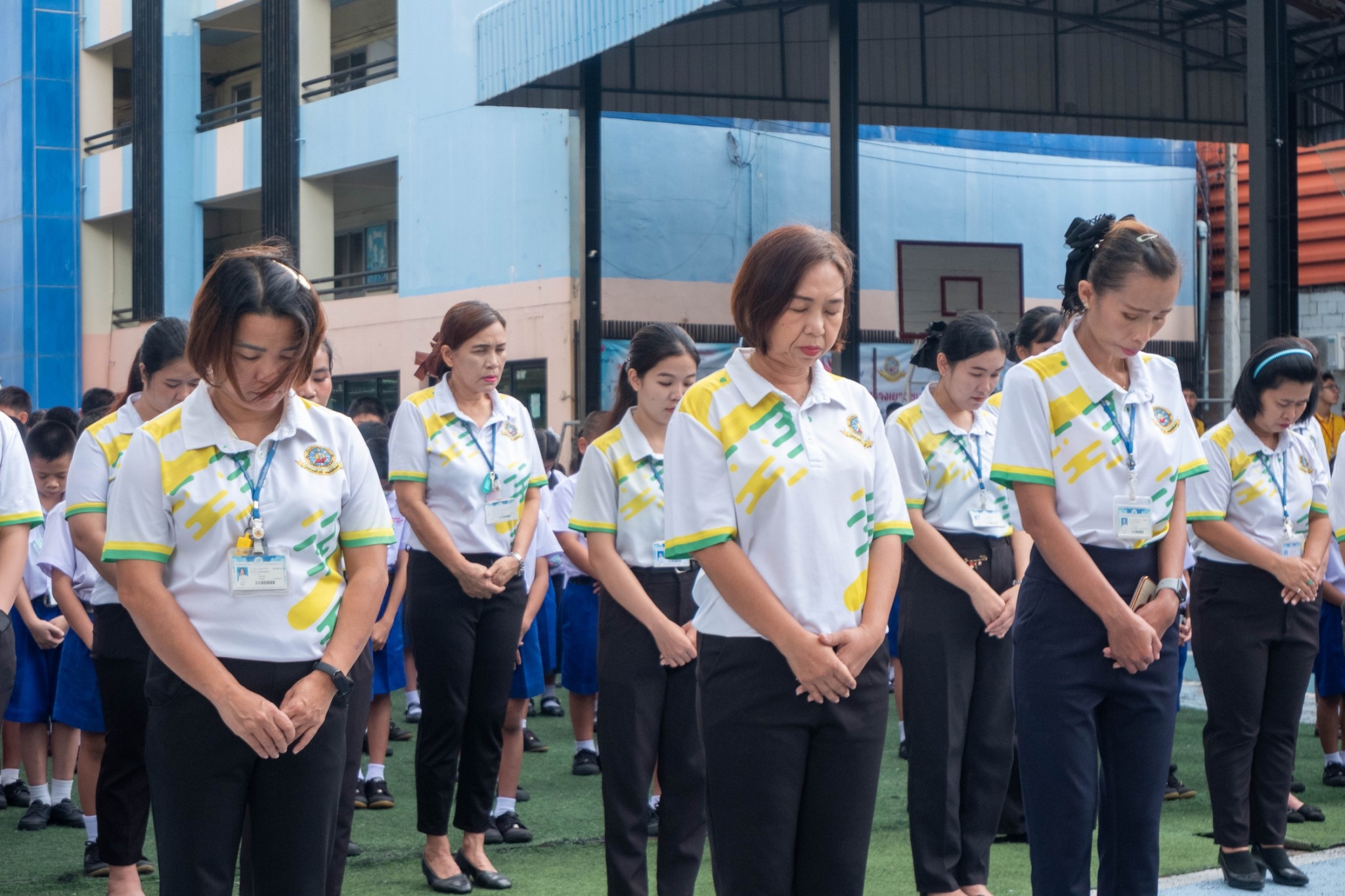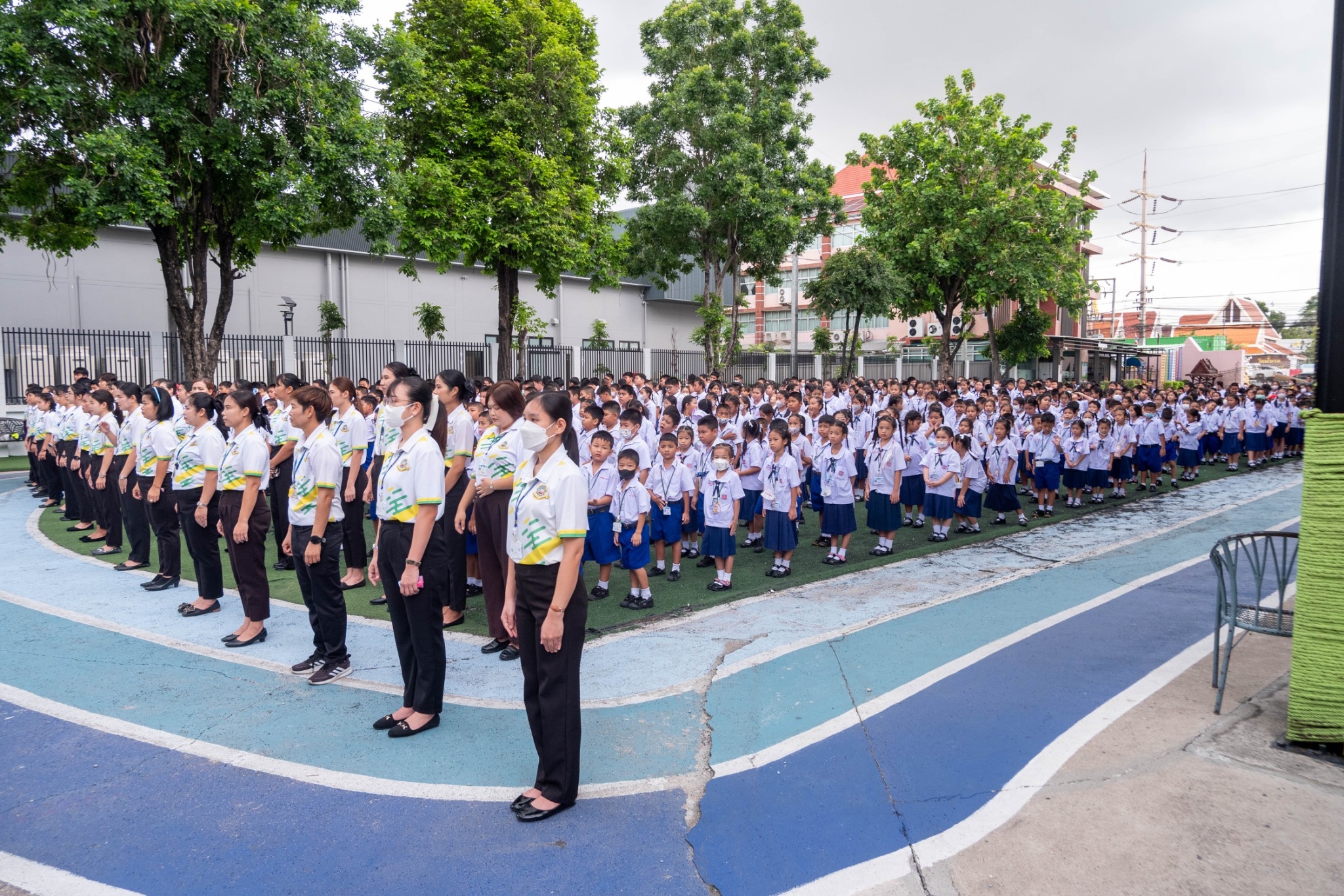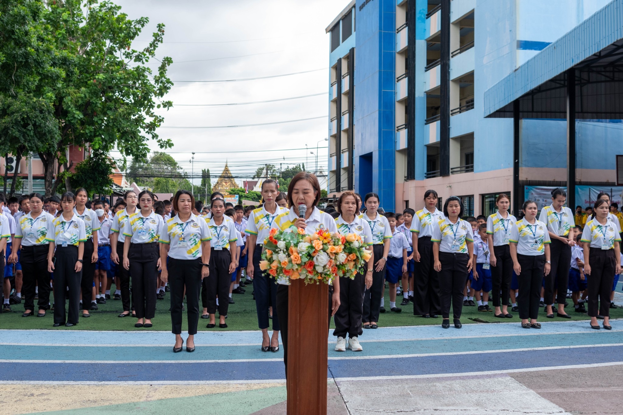 นักเรียนระดับชั้นประถมศึกษาปีที่ 1 - ระดับมัธยมศึกษาปีที่ 3 ได้เข้าร่วมกิจกรรมวันสันติภาพสากลและร่วมกันยืนสงบนิ่ง ณ หน้าอาคาร 50 ปี