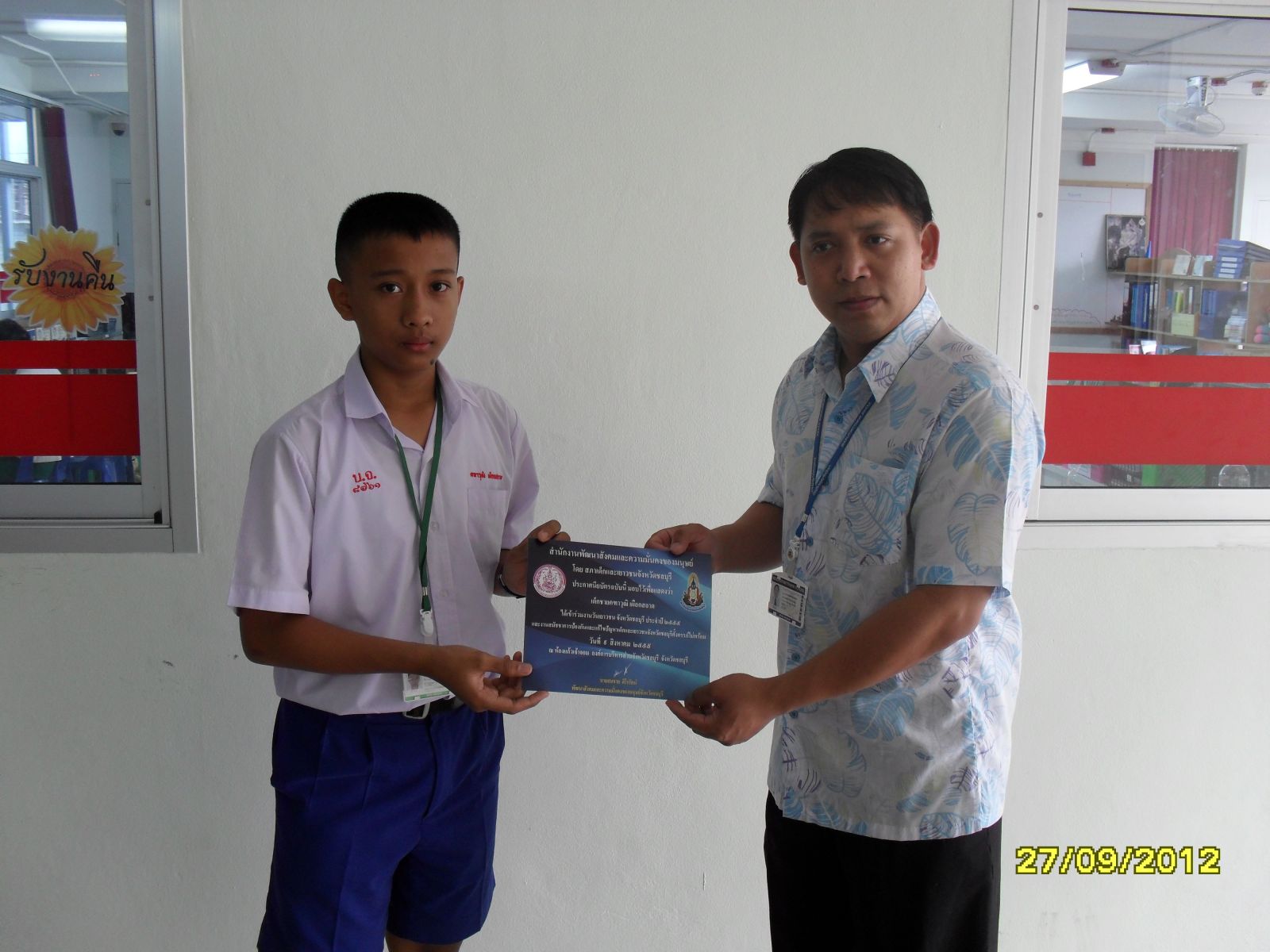 ดร.จักรกฤช กันทอง ผู้อำนวยการ มอบเกียรติบัตรให้กับนักเรียนที่เข้าร่วมกิจกรรมสมัชชาเด็กและเยาวชน ของจังหวัดชลบุรี ในวันเยาวชนจังหวัดชลบุรี...ภาพ/ข่าวโดยสนธยา