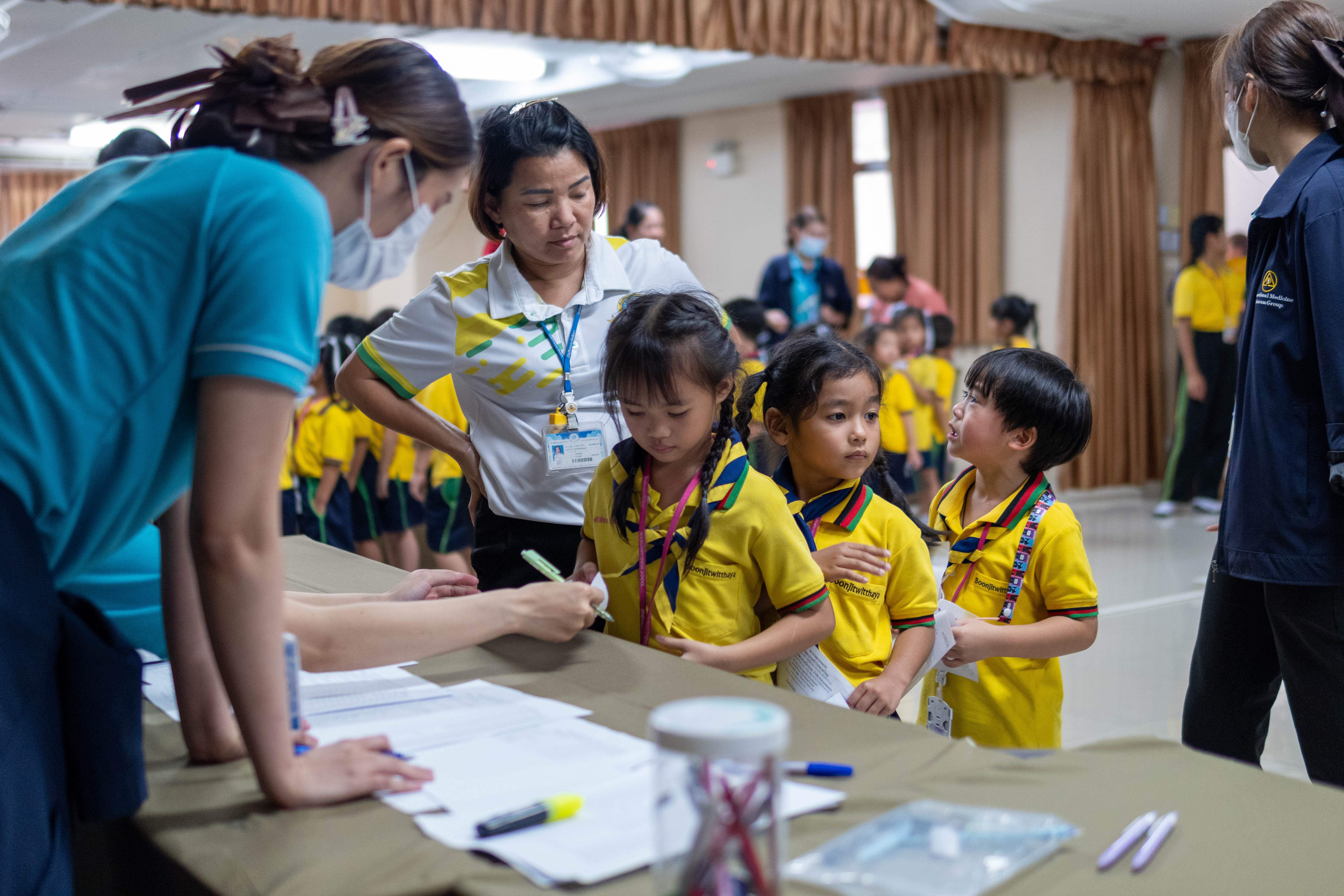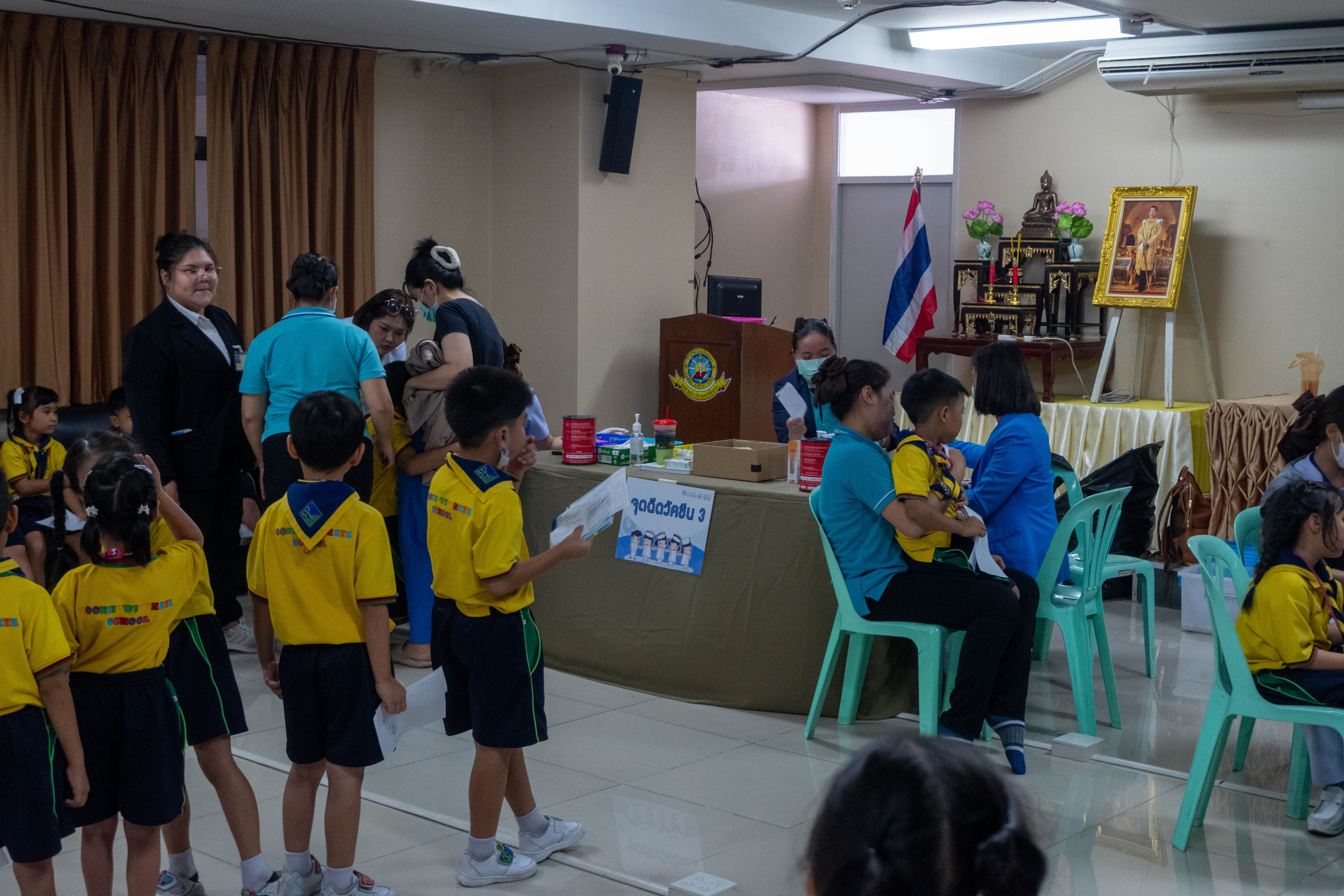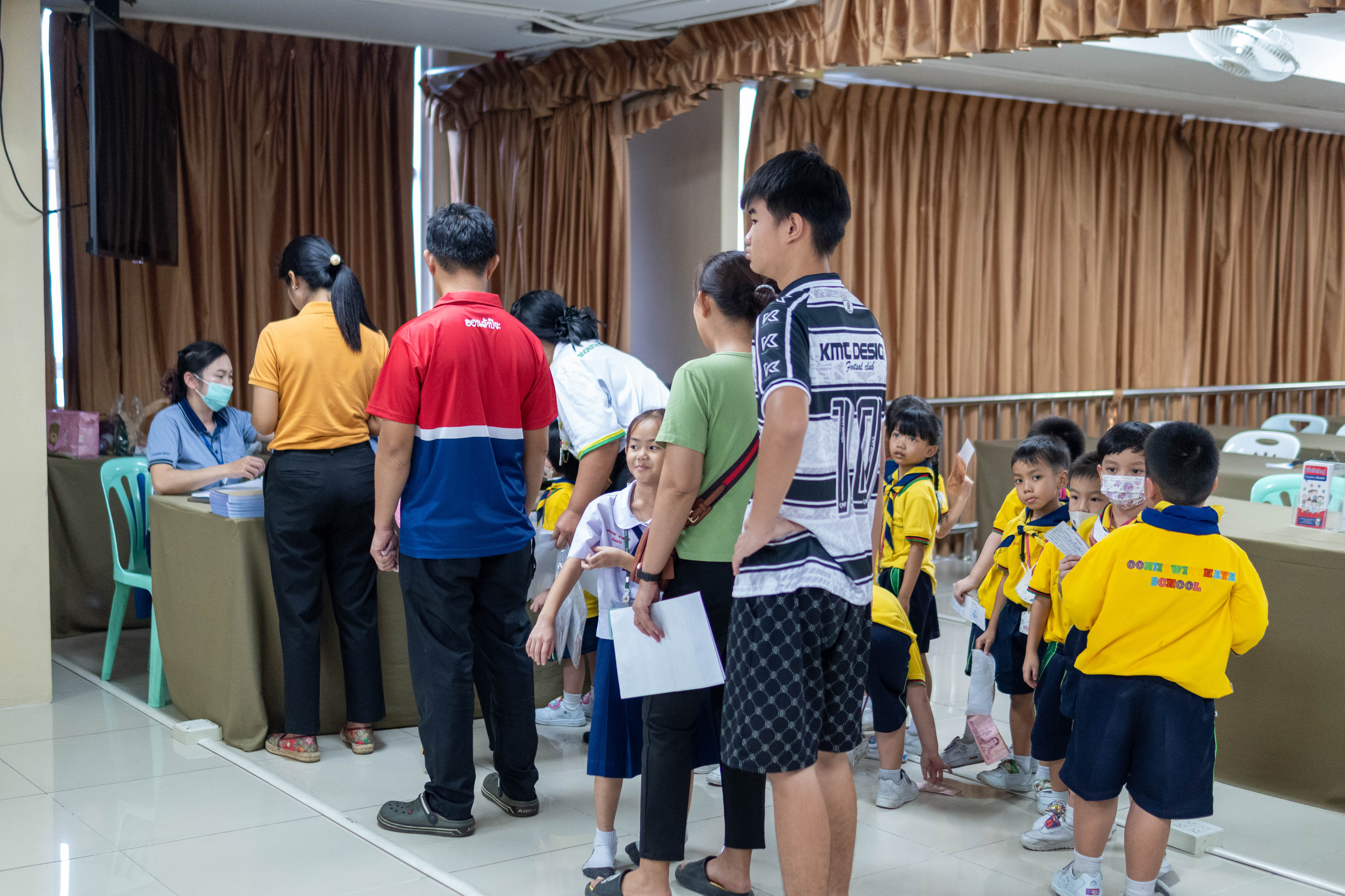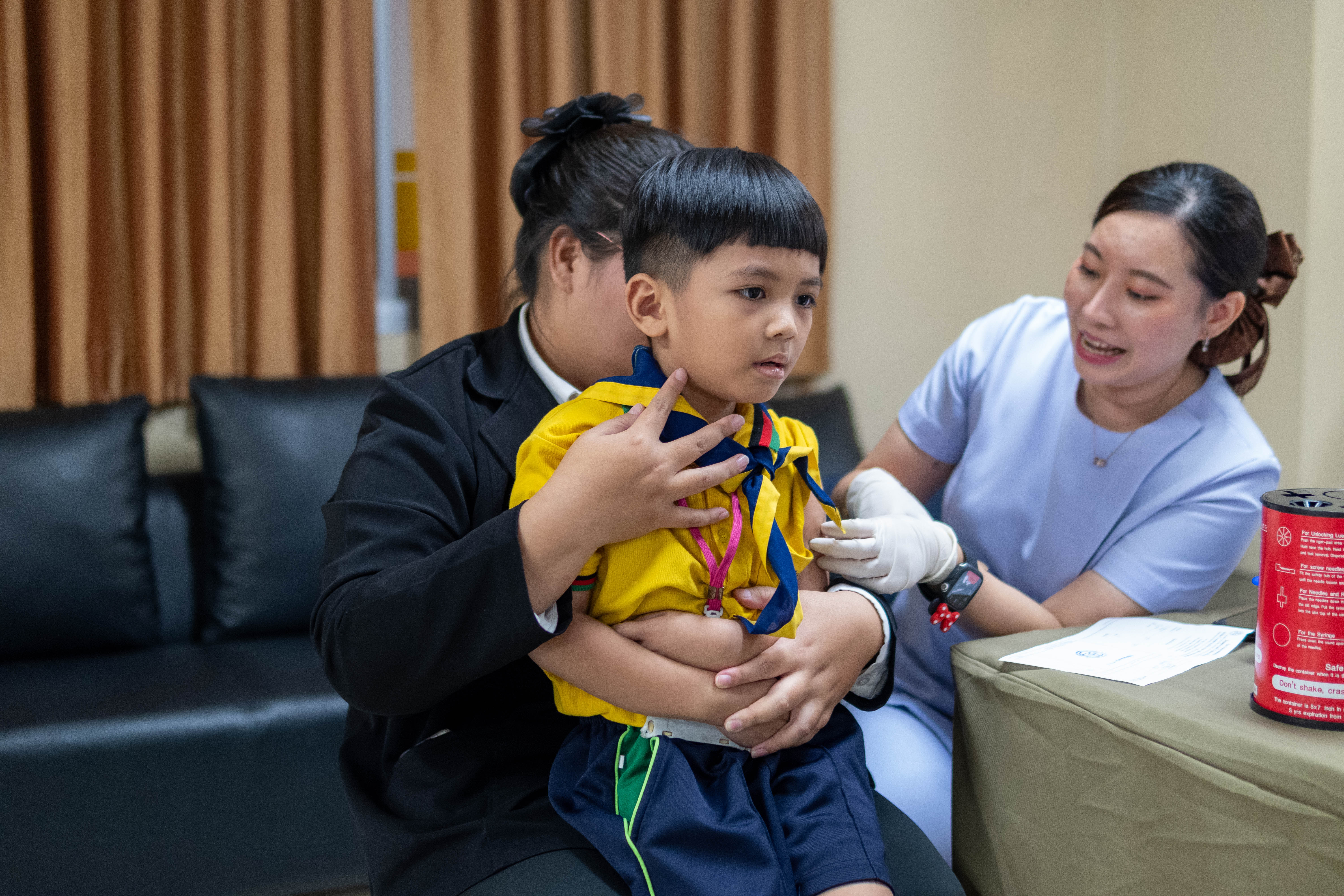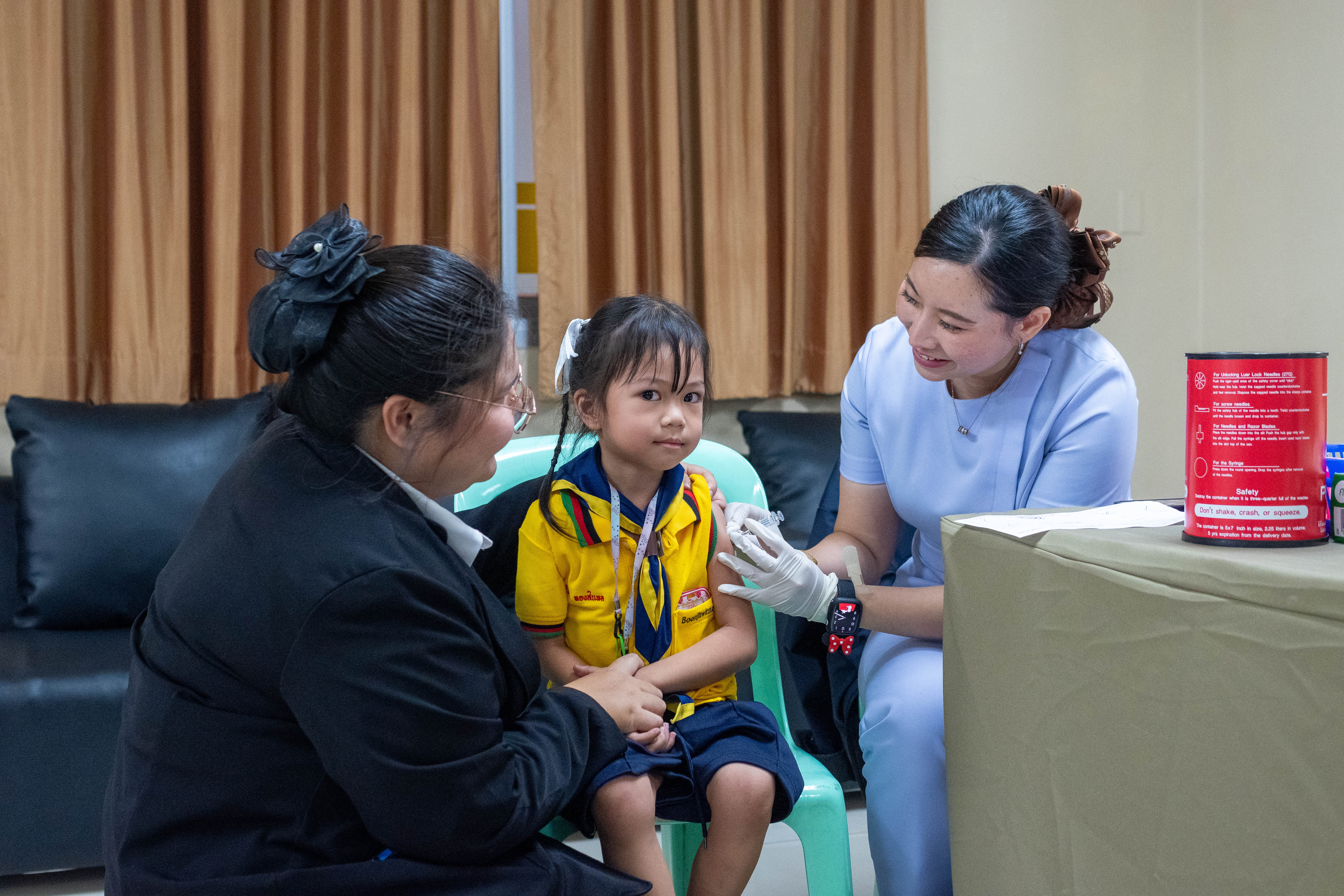 วันศุกร์ที่ 20 กันยายน 2567 เจ้าหน้าที่โรงพยาบาลวิภาราม เข้าฉีดวัคซีนป้องกันไข้หวัดใหญ่ ให้เเก่ผูัปกครองนักเรียนระดับชั้นอนุบาลปีที่ 1 - ระดับมัธยมศึกษาปีที่ 3 และบุคคลภายนอก ณ ห้องประชุมชั้น 4 อาคาร 50 ปี