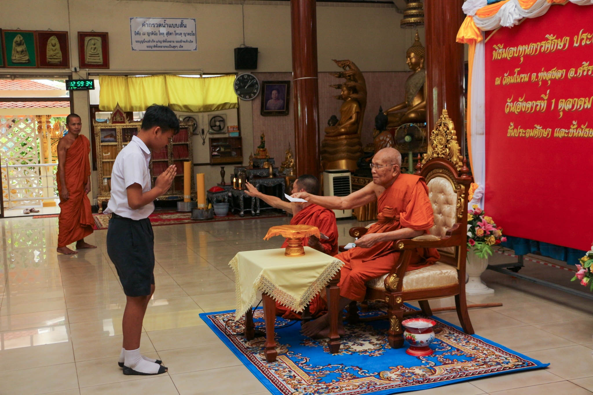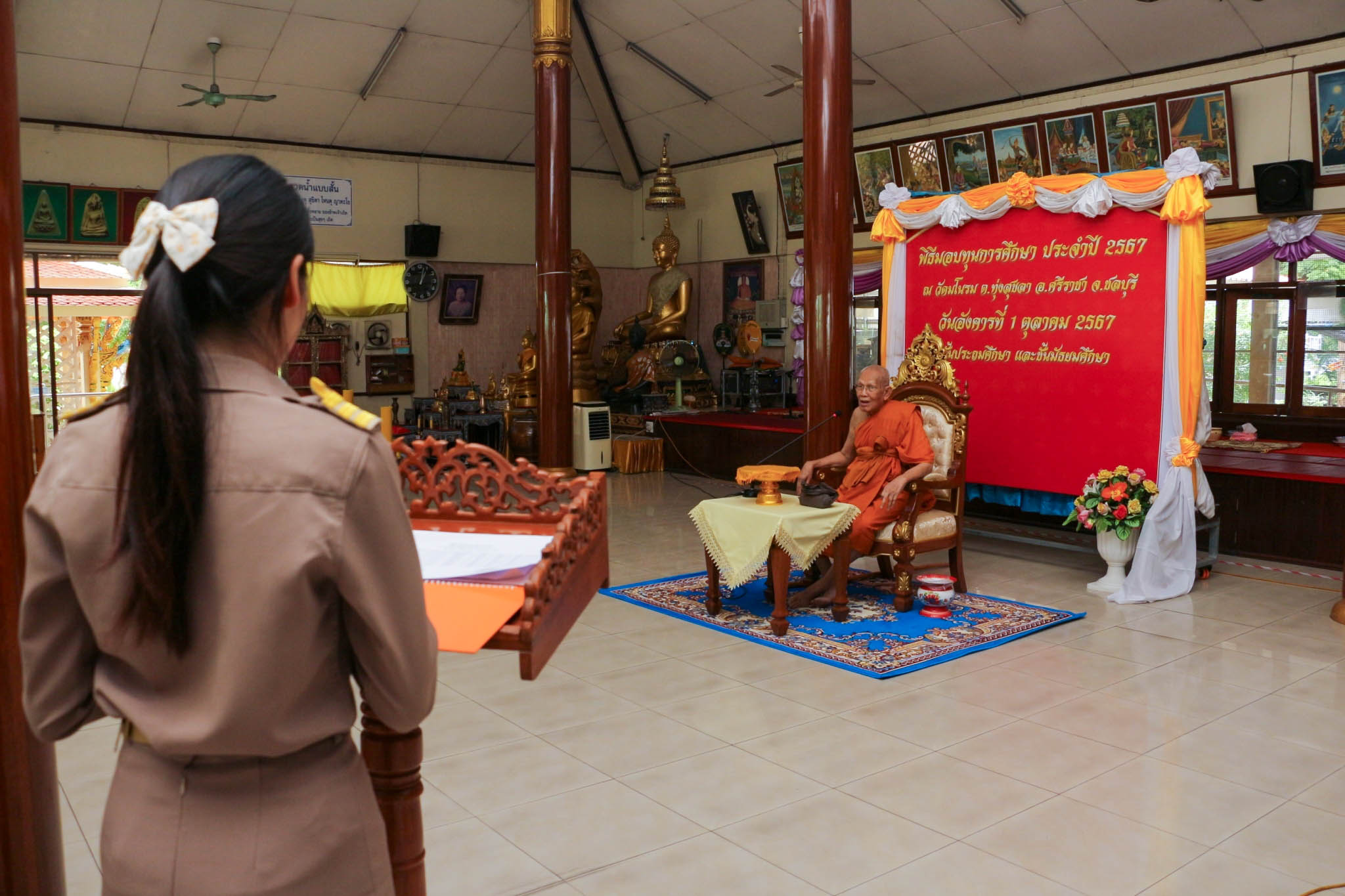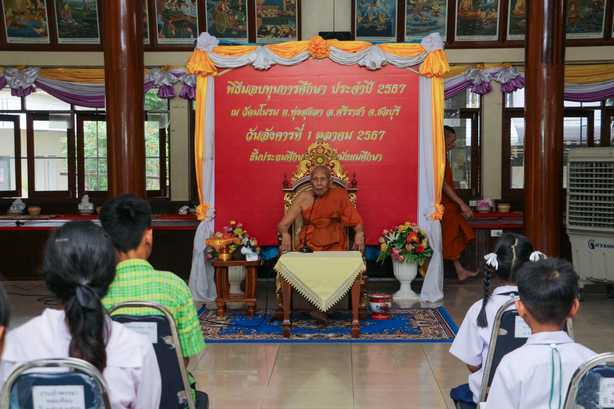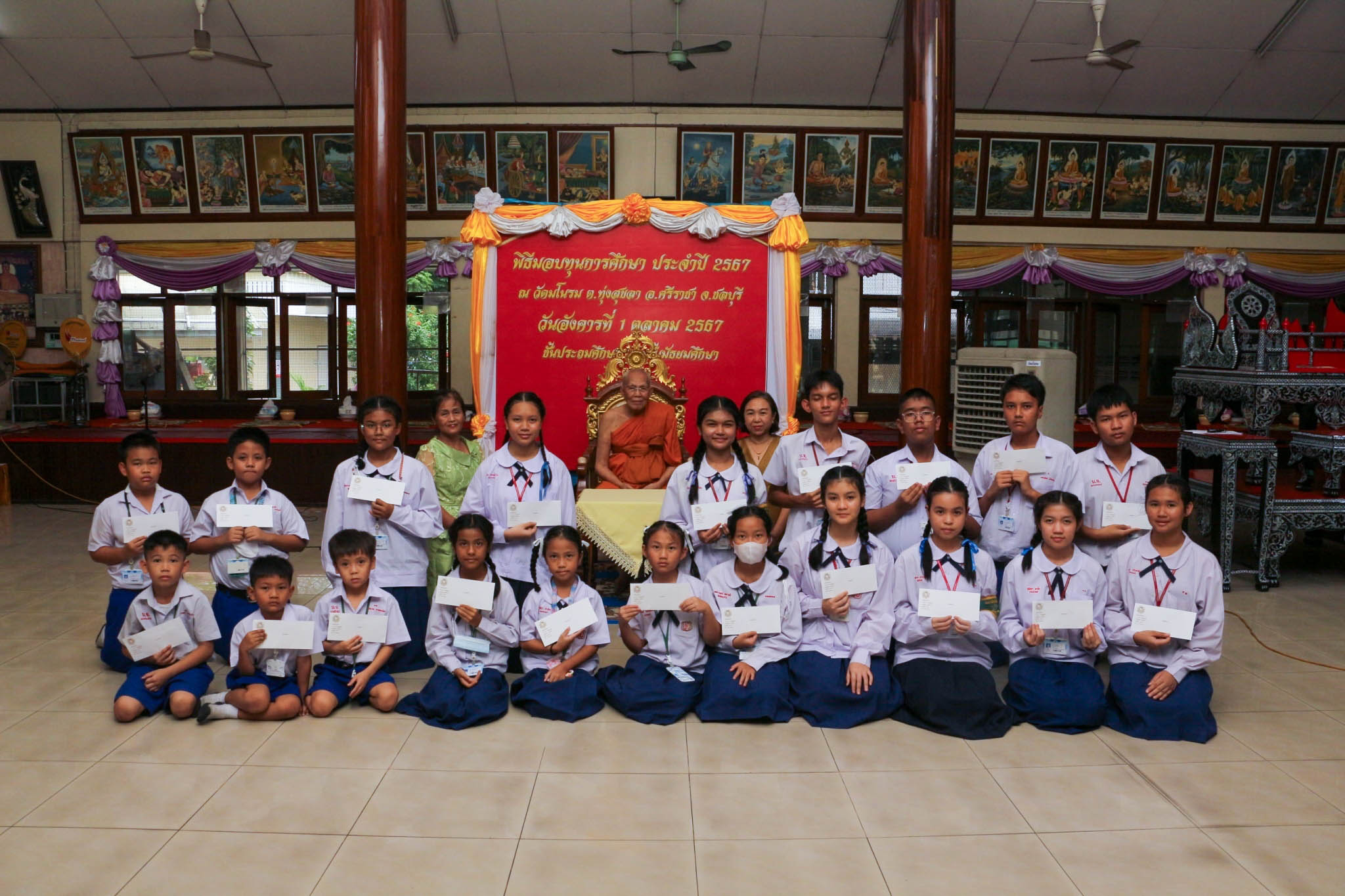 เข้ารับทุนการศึกษาเรียนดี จากพระครูอาทรพัฒนาภิรม เจ้าอาวาสวัดมโนรม ณ วัดมโนรม อ.ศรีราชา จ.ชลบุรี