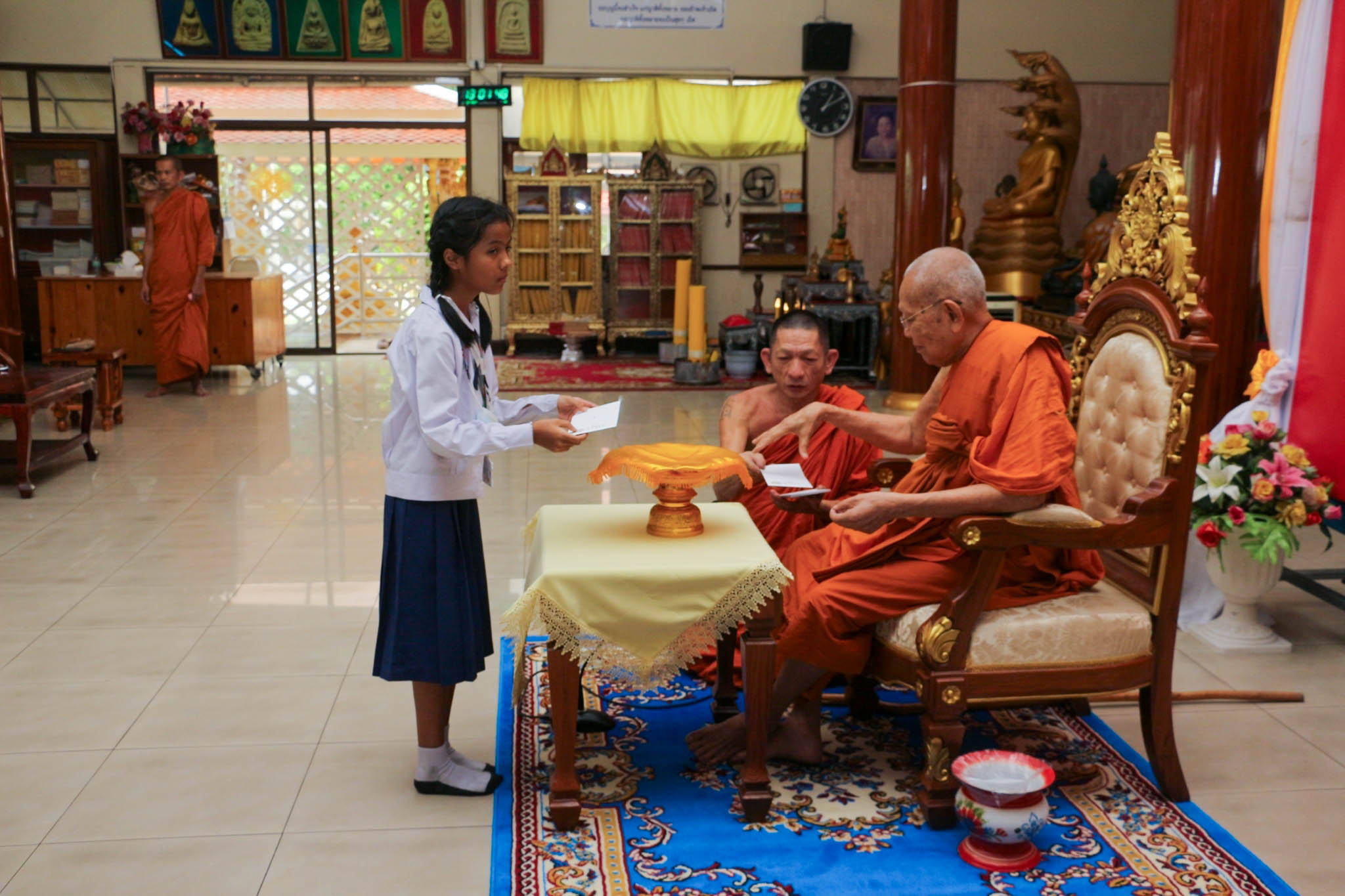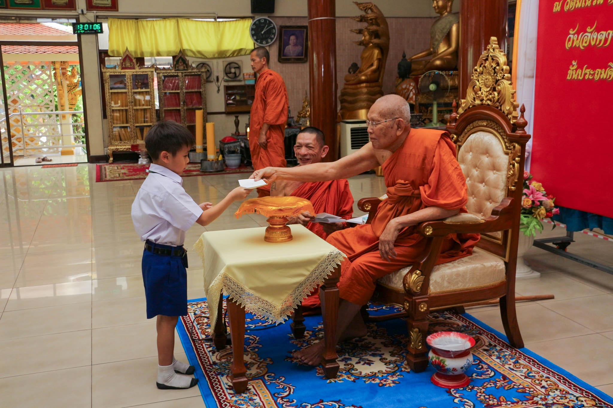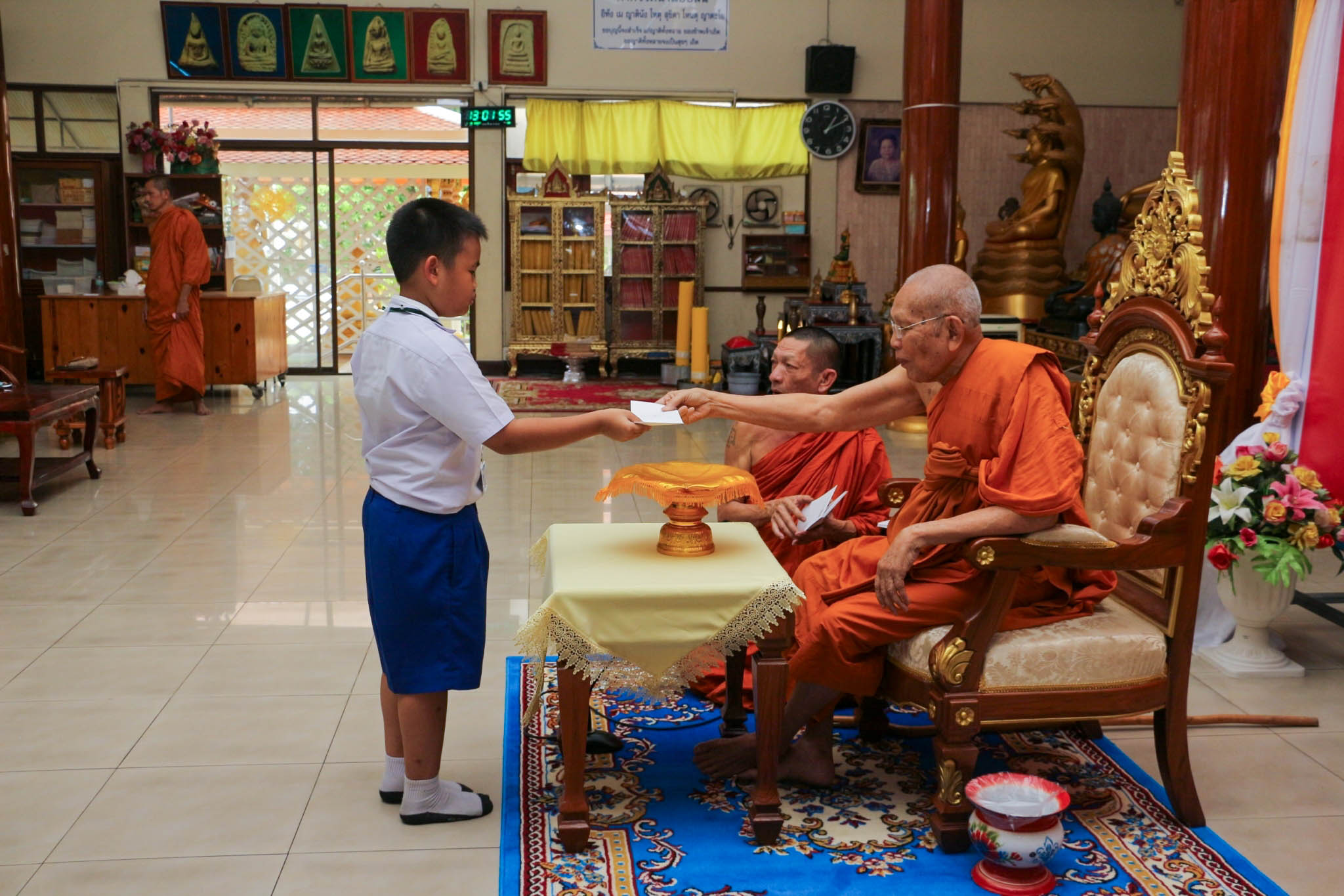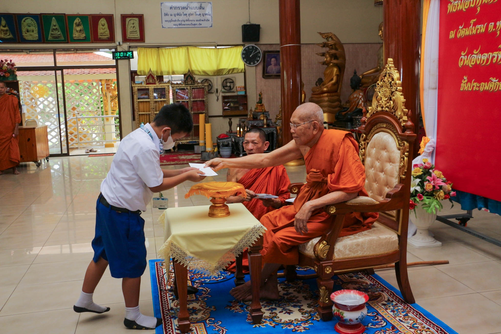 เข้ารับทุนการศึกษาเรียนดี จากพระครูอาทรพัฒนาภิรม เจ้าอาวาสวัดมโนรม ณ วัดมโนรม อ.ศรีราชา จ.ชลบุรี