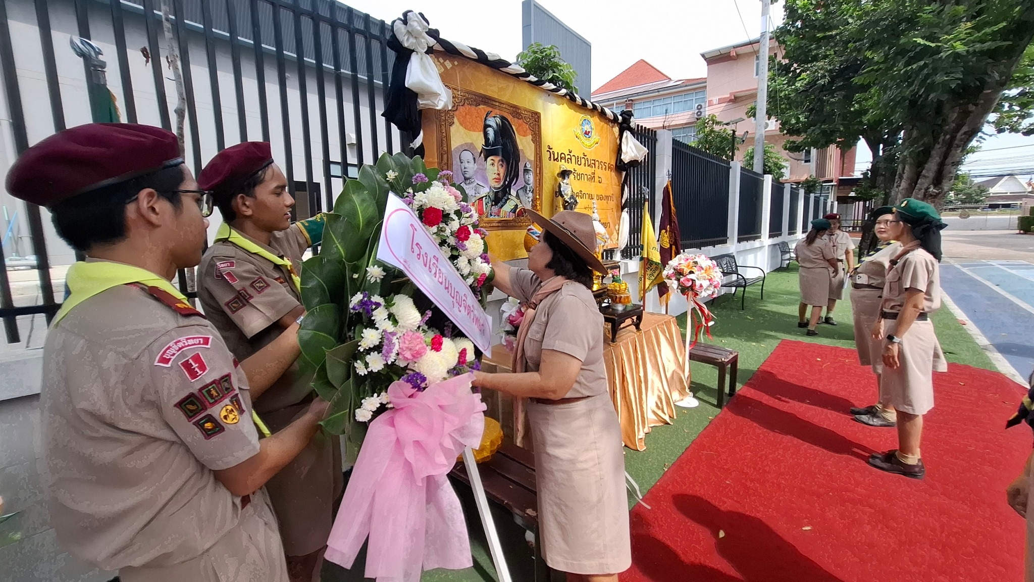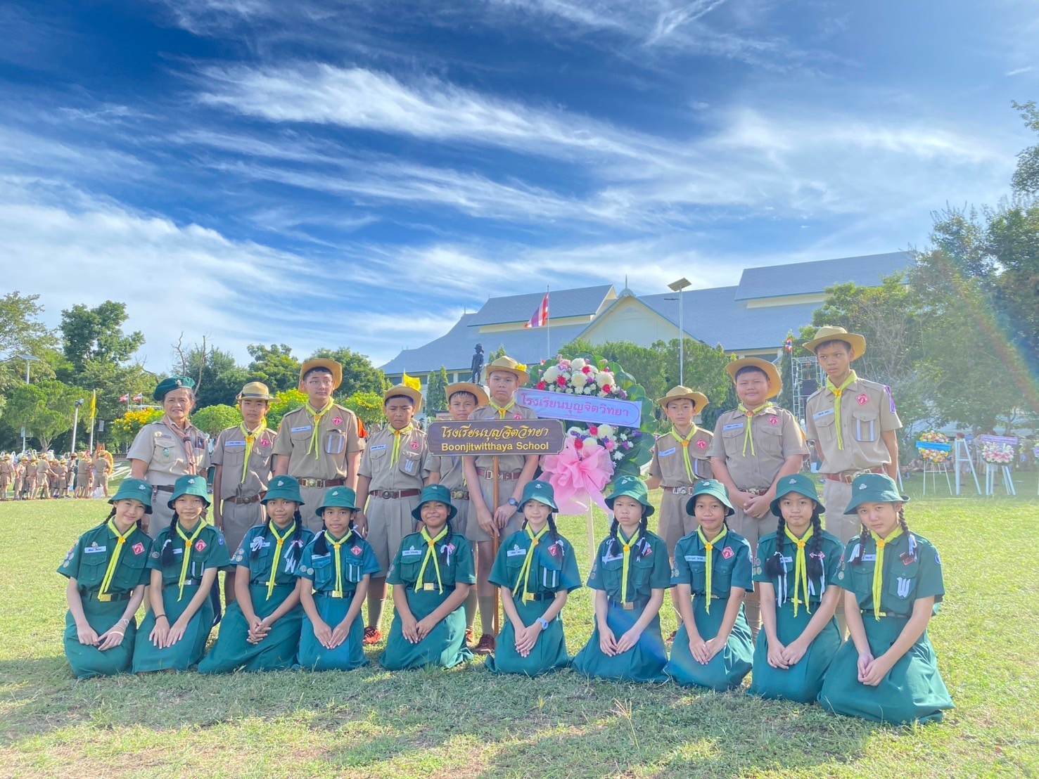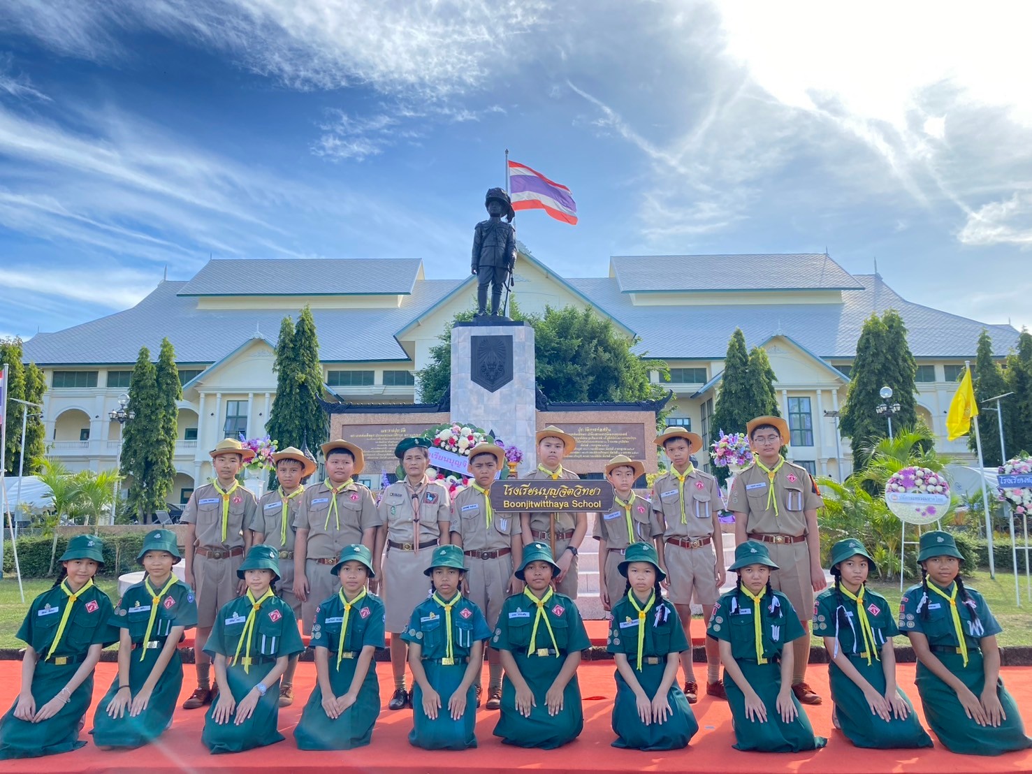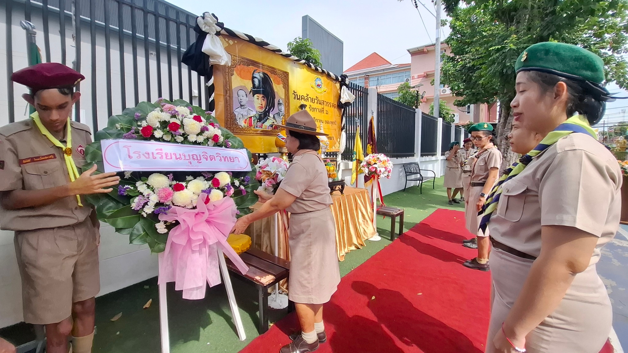 ผู้ทรงพระราชทานกำเนิดลูกเสือไทย นำโดยนางลัดดาวัลย์ สืบจากเทียม รองผู้อำนวยการโรงเรียนบุญจิตวิทยา ประกอบพิธีถวายพวงมาลา ถวายราชสดุดี นำอ่านสารและยืนสงบนิ่ง ณ หน้าคาร 50 ปี และ ตัวแทนคณะครูนักเรียนโรงเรียนบุญจิตวิทยา ร่วมกิจกรรมทำความดีบำเพ็ญประโยชน์ ณ ค่ายลูกเสือวชิราวุธ สวนสุขภาพเกาะลอย และ บริเวณรอบนอกโรงเรียนบุญจิตวิทยา